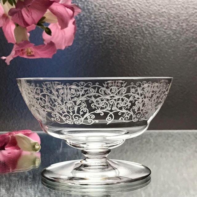 ルリはオールドバカラの中でも 最も人気の高いシリーズのひとつで、 1932年に誕生し1961年まで製造されました。 バロック期の作曲家・ヴァイオリニスト ジョヴァンニ・バティスタ・ルッリへのオマージュとして制作され、 グラス全体に広がるのびやかで美しいモチーフは バロック音楽の優雅さを表現しています。 アシッドエッチングで描かれた装飾は、 手に取るたびに光を受けて繊細に輝き、 日常使いはもちろん、観賞用や特別な席にも最適です。 手に収まりやすいサイズ感で、ジュースやデザート、 先付け、向付けなどにもお使いいただけます。 ⸻ ■ コンディション アンティーク品で割れ・欠けはございません。 製造時についた細かい気泡やガラスのよれ、 模様の薄れや微かなザラつきが見られる場合がございます。 艶もあり、美しい状態です。 手作り品のため個体差がございます。 底部には Baccarat のマークがあります。 古いカタログにも掲載されている希少モデルです。 ⸻ ■ サイズ(約) 高さ 8cm 口径 6.8cm 満水容量 150ml 在庫複数ございます。 同シリーズの別サイズもございますので、 ご希望の方はご連絡ください。