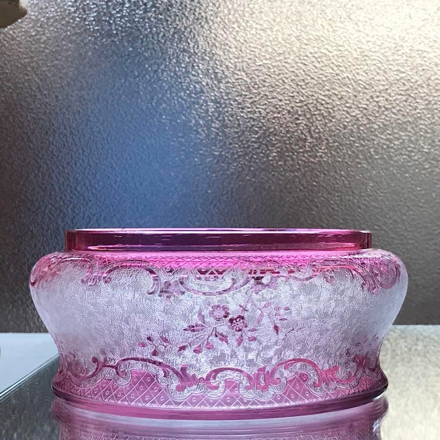 ご覧いただきましてありがとうございます。 オールドバカラBACCARATエグランティエEglantie パウダーケースの出品でございます。 ピンク色のエグランティエ(野ばら)が美しく、どの角度からも楽しめるようデザインされています。 柔らかな日差しを浴びて繊細で今にもこわれそうな フランスアンティークレースを思わせる 色被せクリスタルにエッチングでピンクの野ばらの模様を浮き彫りにし、残りの透明のクリスタルの部分に ミモザの葉の様な独特の模様を刻んでいるエグランティエ 熟練のグラス職人により大変な手間と時間をかけて作られたためとても希少であり、また貴重です。 大きなサイズのエグランティエの素敵な世界を 心ゆくまでお楽しみいただけます♡ 是非この機会にお手にとってじっくりご覧くださいませ☆ アンティーク品は一つ一つが手作りのため 個体差があります。 それぞれの個性豊かさから プロ職人の息遣いを感じることが できます。 ♪作品の詳細♪ こちらはアンティーク品であり、 割れ、かけはございませんが、 製造時についた気泡、よれ、拭き傷などある場合がございます。 縁に浅いチップがございます。(P.10上矢印) 経年によるスレ傷が底にございます。(P.10下) 写真でお確かめください。 艶のある美品です。 アンティーク品にご理解のある方のご入札をお待ちしております。 サイズ はおよそ高さ7cm幅16cm 1936年以前のお品です。バカラマークはございません。 ーーお知らせーー ⚫︎破損のないよう厳重な梱包でお送りしておりますので ご安心ください。 ⚫︎出品前に充分な検品を行なっておりますが、気になる点がありましたら、ご質問くださると 嬉しいです。 一度手にとってご覧になればきっと凜とした その美しさに魅了されるでしょう。 くつろぎのひとときをバカラと共にお過ごし下さいませ。 小物入れにも♡ 1900年頃 アール・ヌーヴォー期 他にも多数バカラ作品を出品しております。 是非ご覧ください。