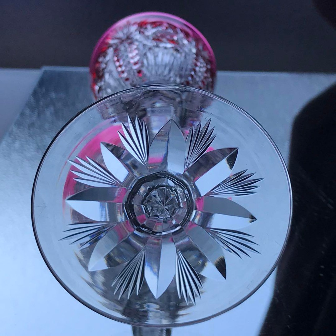 透明なクリスタルの上にピンクのクリスタルを被せ