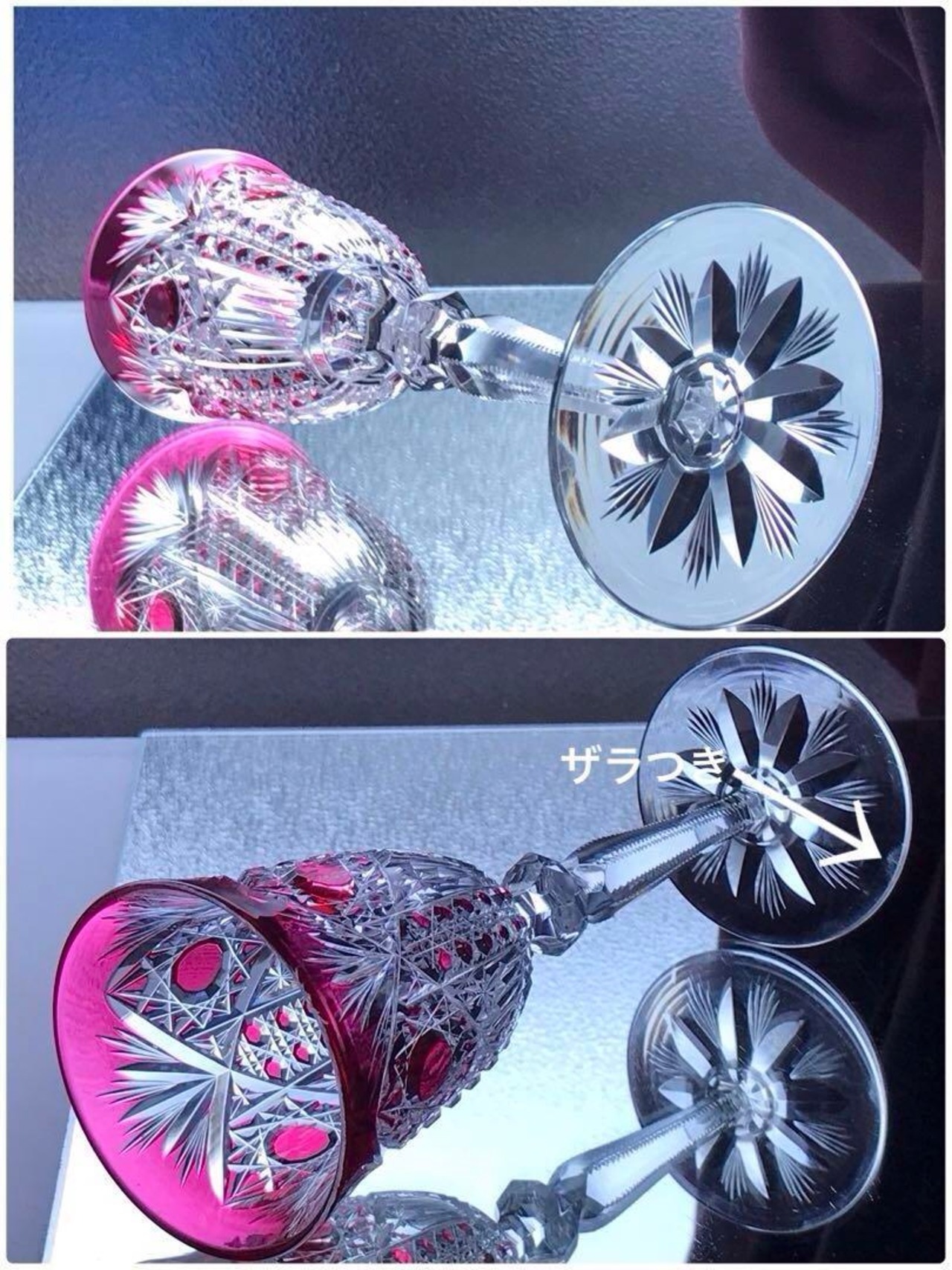 キラキラ輝いている重厚なグラスです☆
