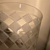 透明度の高いクリスタルガラスに、まるでダイヤモンドカットのような格子模様が均等に刻まれており、光を受けてきらきらと輝きを放ちます。