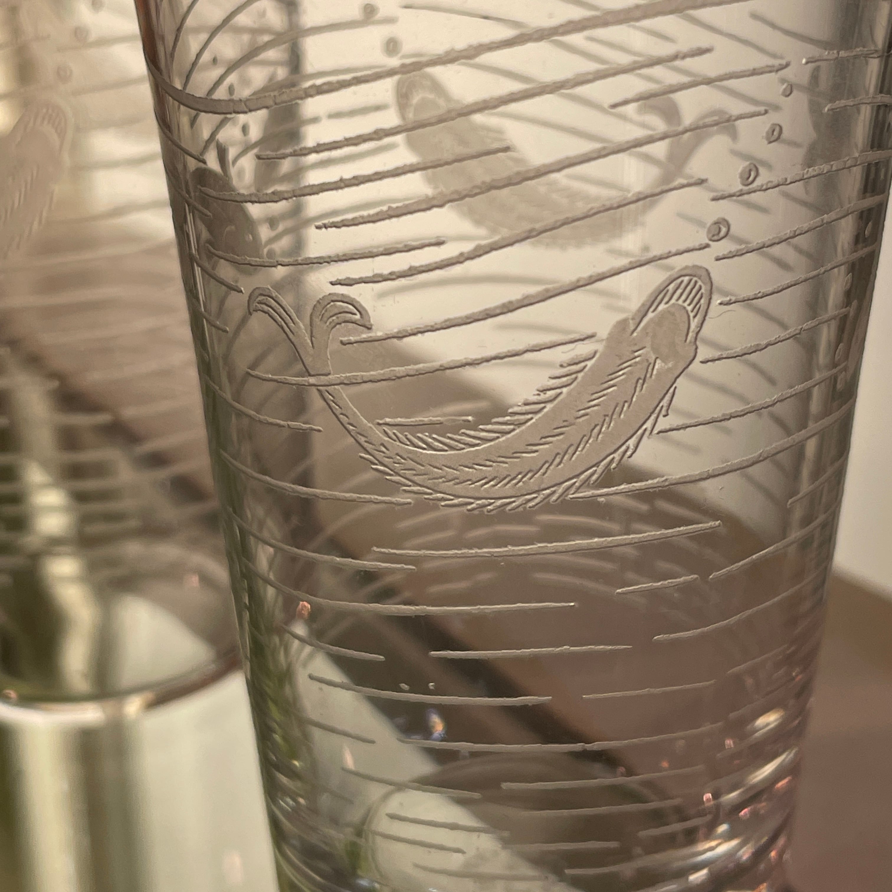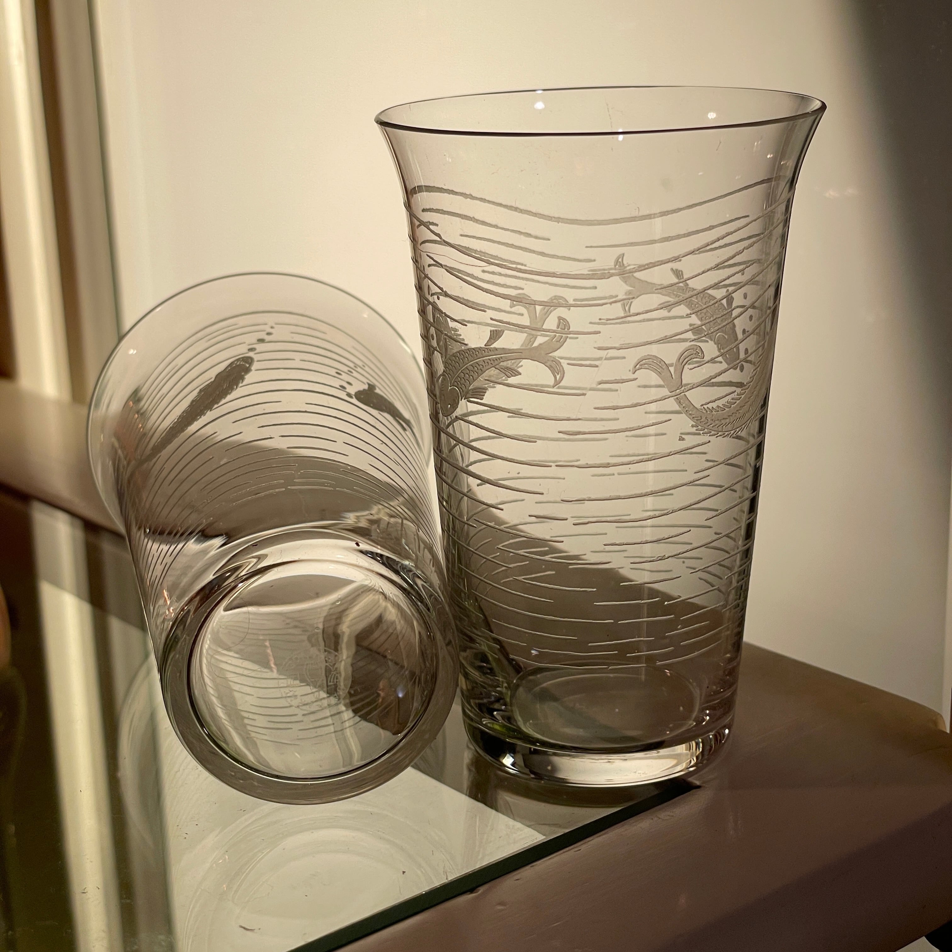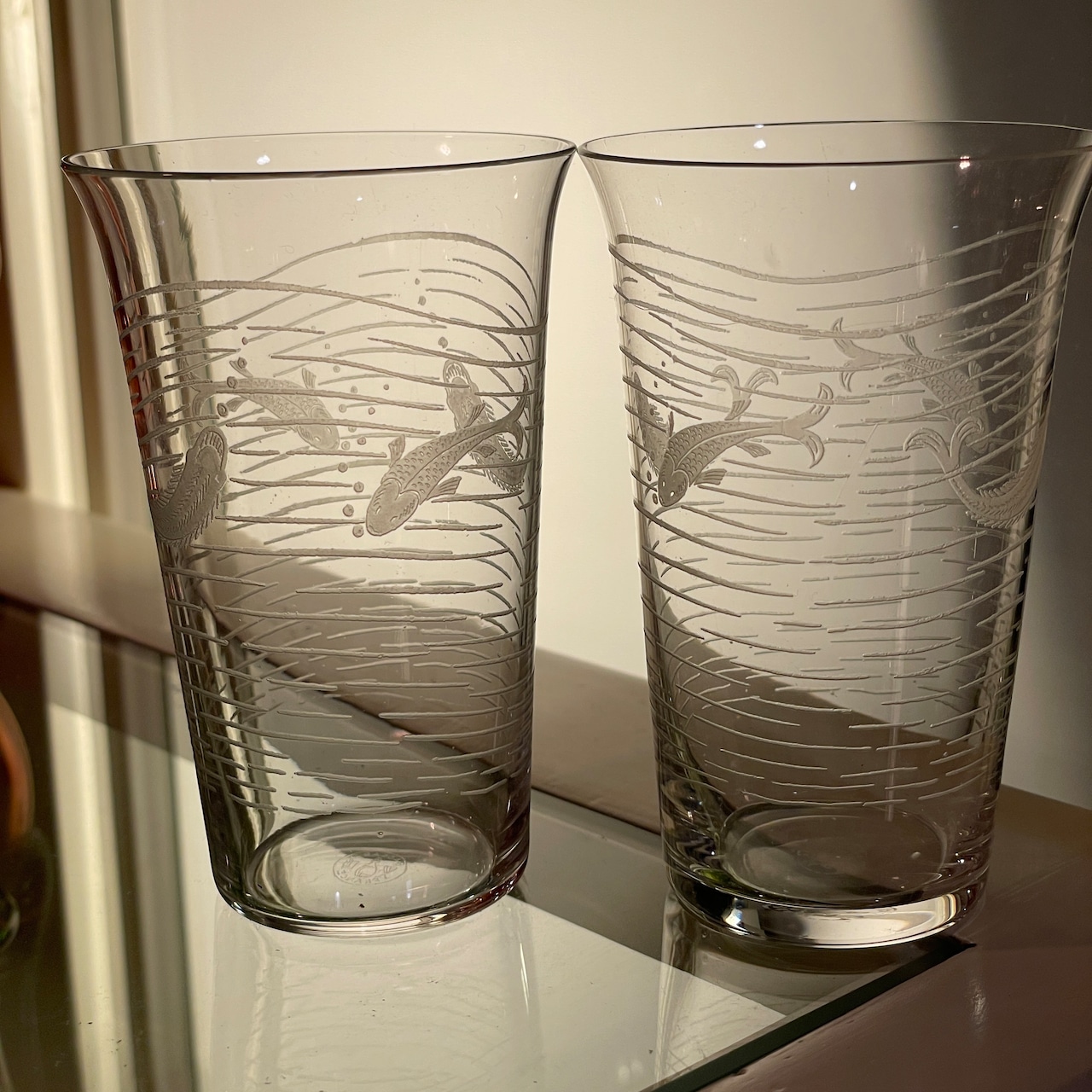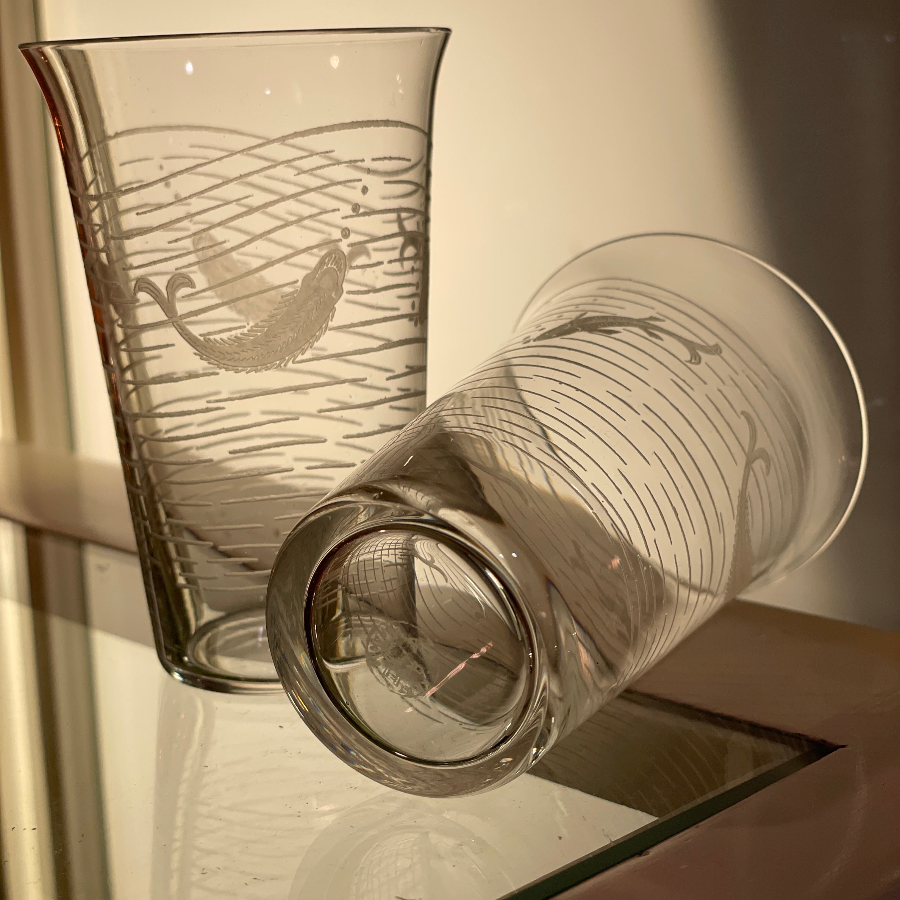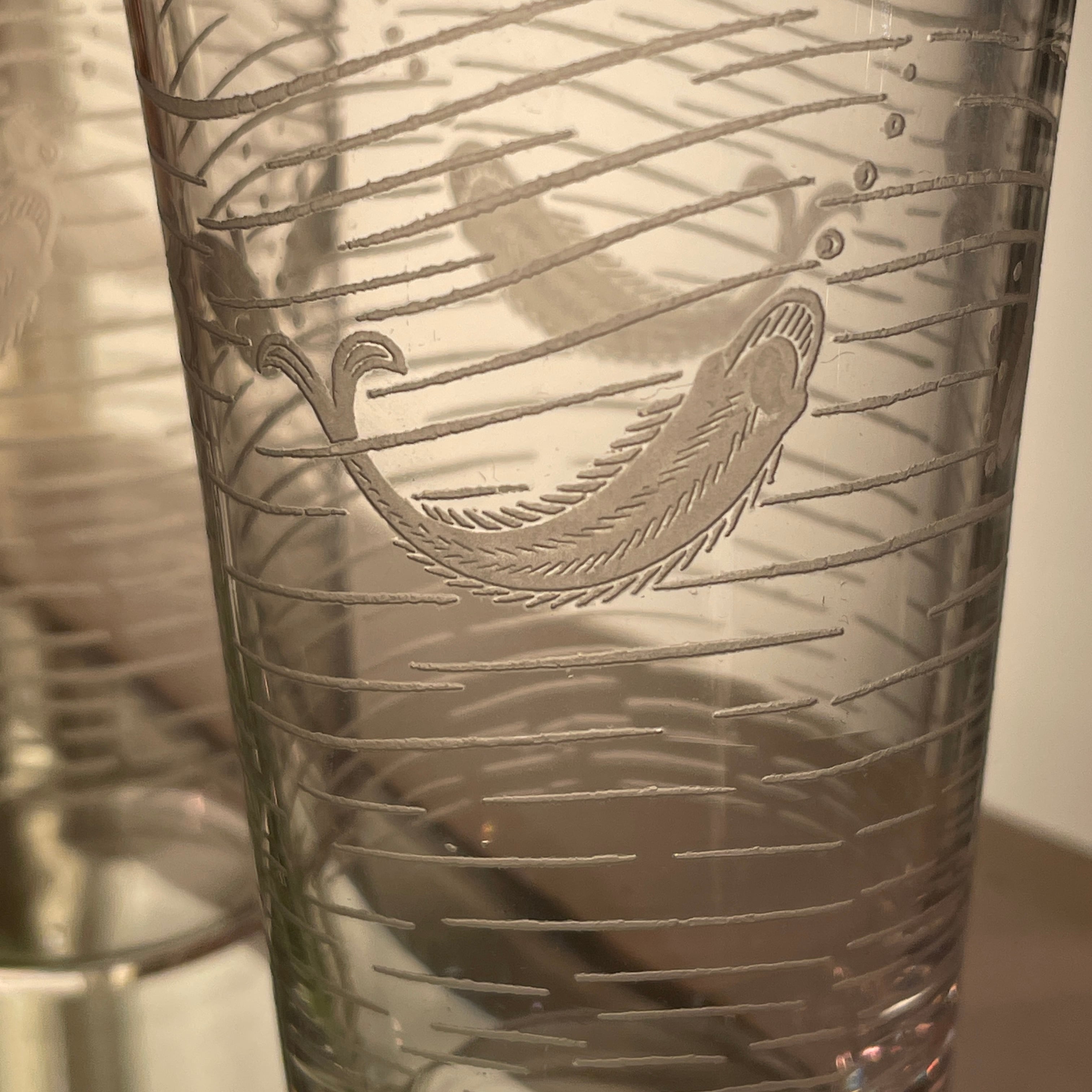 魚文様のエッチング装飾が施されたグラス2客組です。