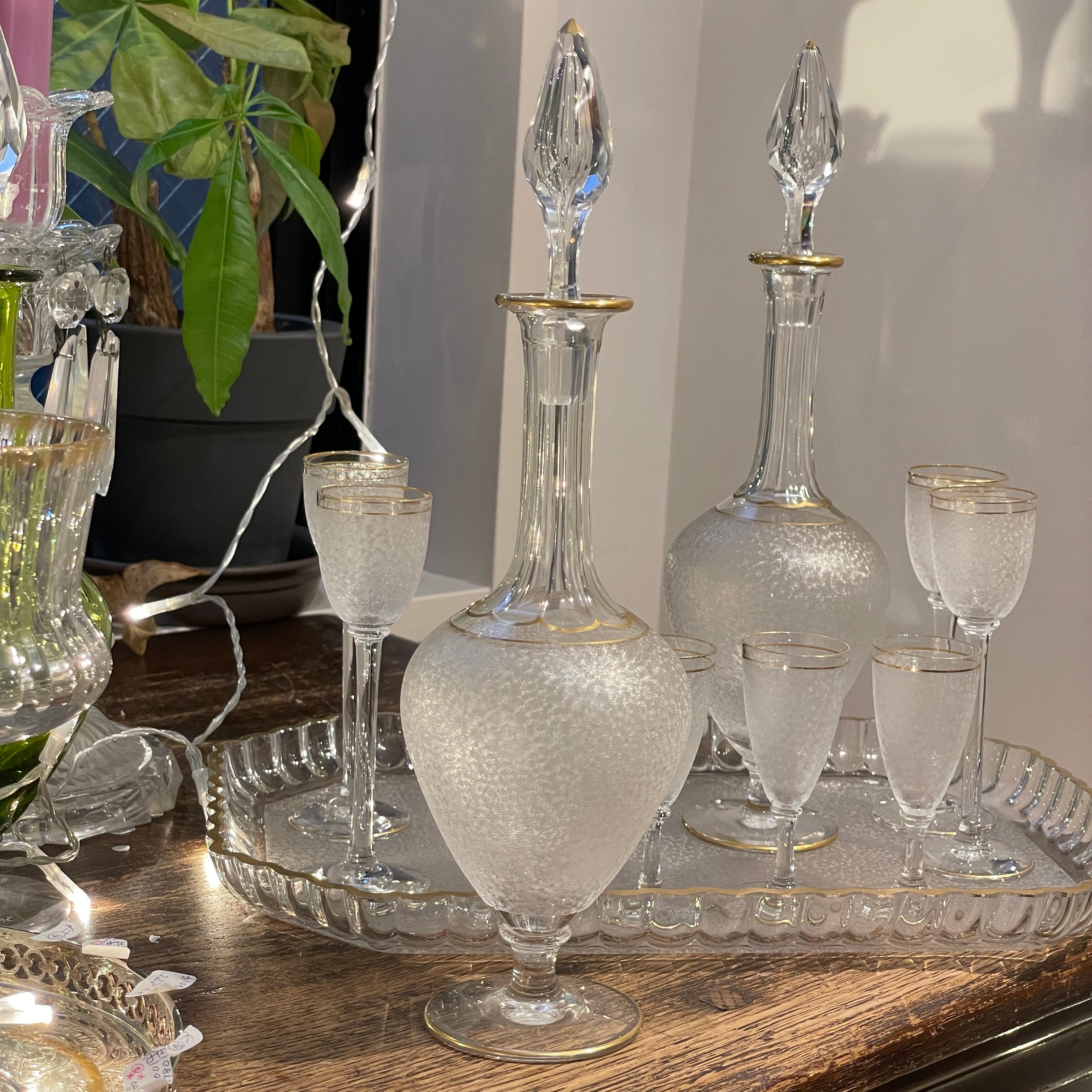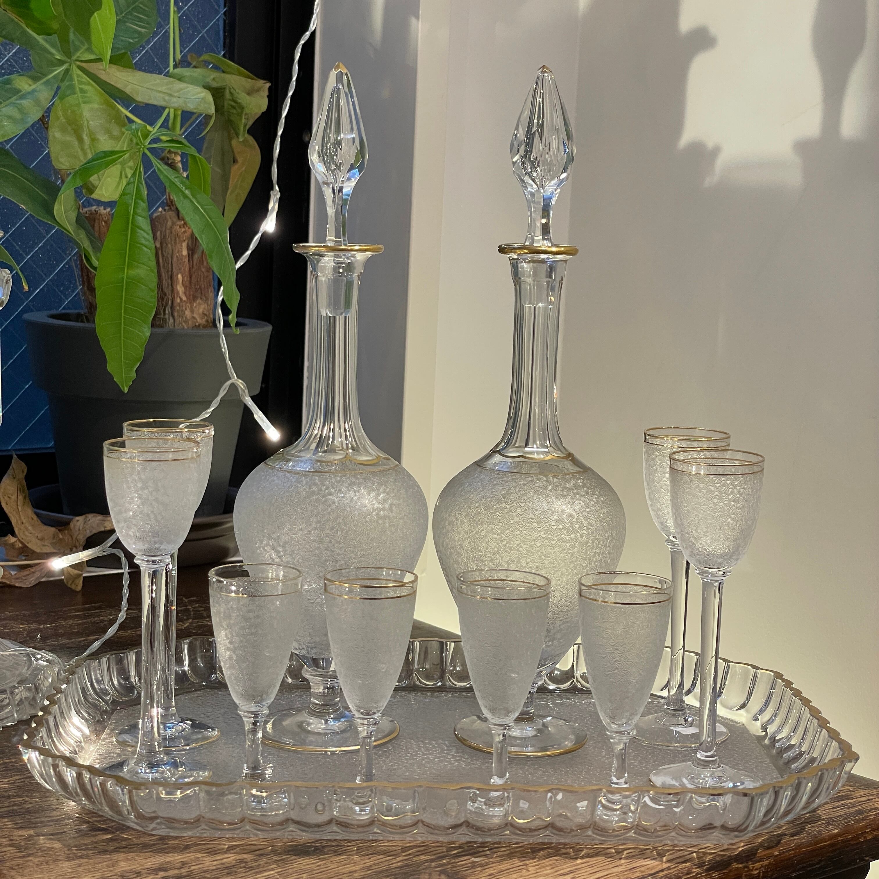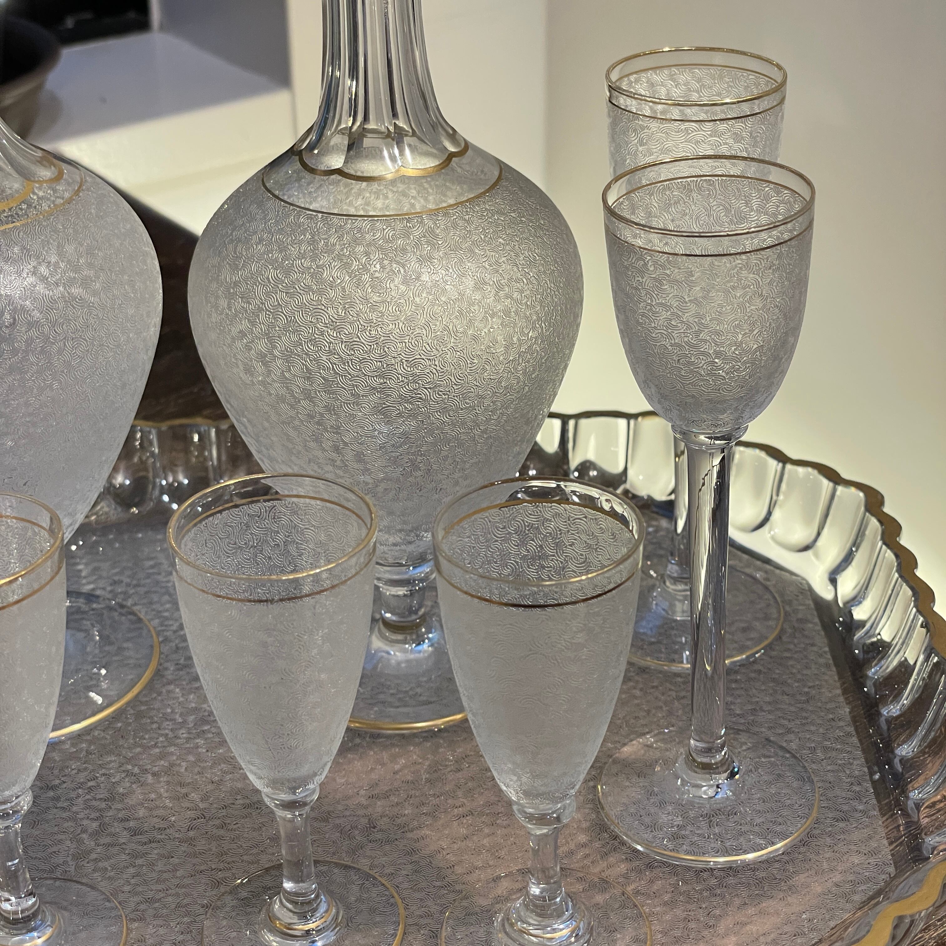 カラフェ2点、リキュールショットグラス8客、トレイ1点