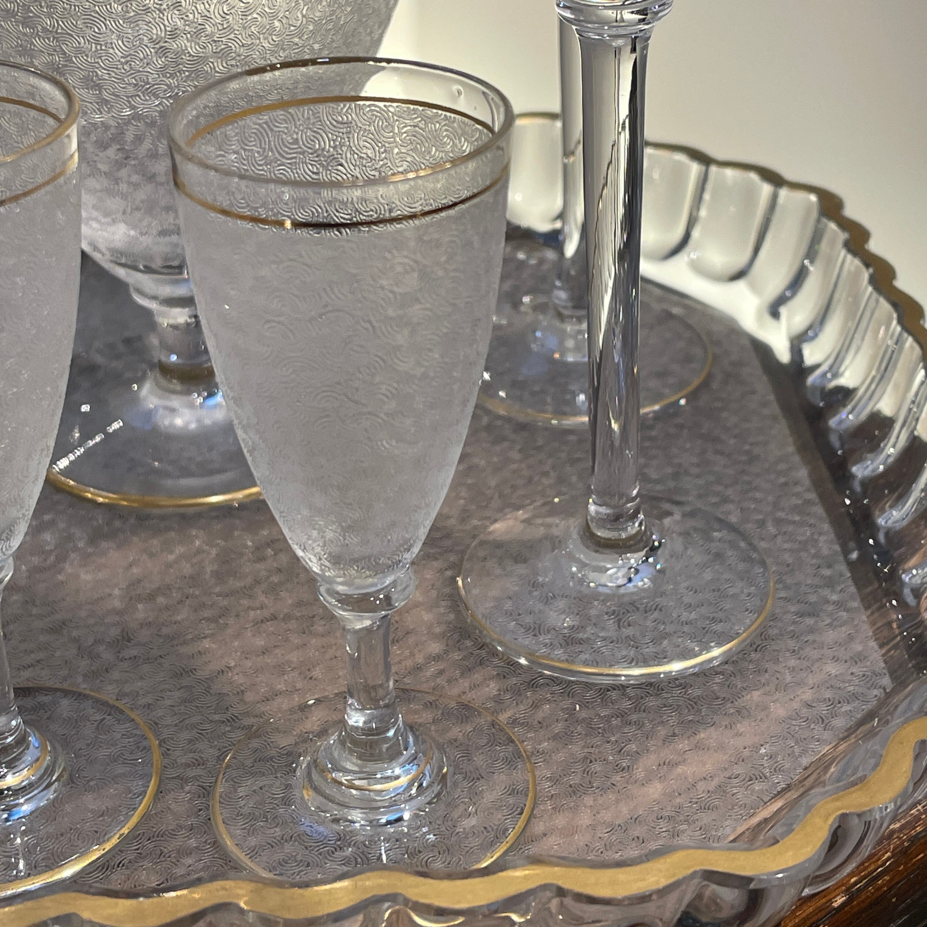 【極稀少美品】オールドサンルイ リキュールセット 11点(カラフェ2点+ショット8客+トレイ1点)青海波文様 金彩 1920年頃