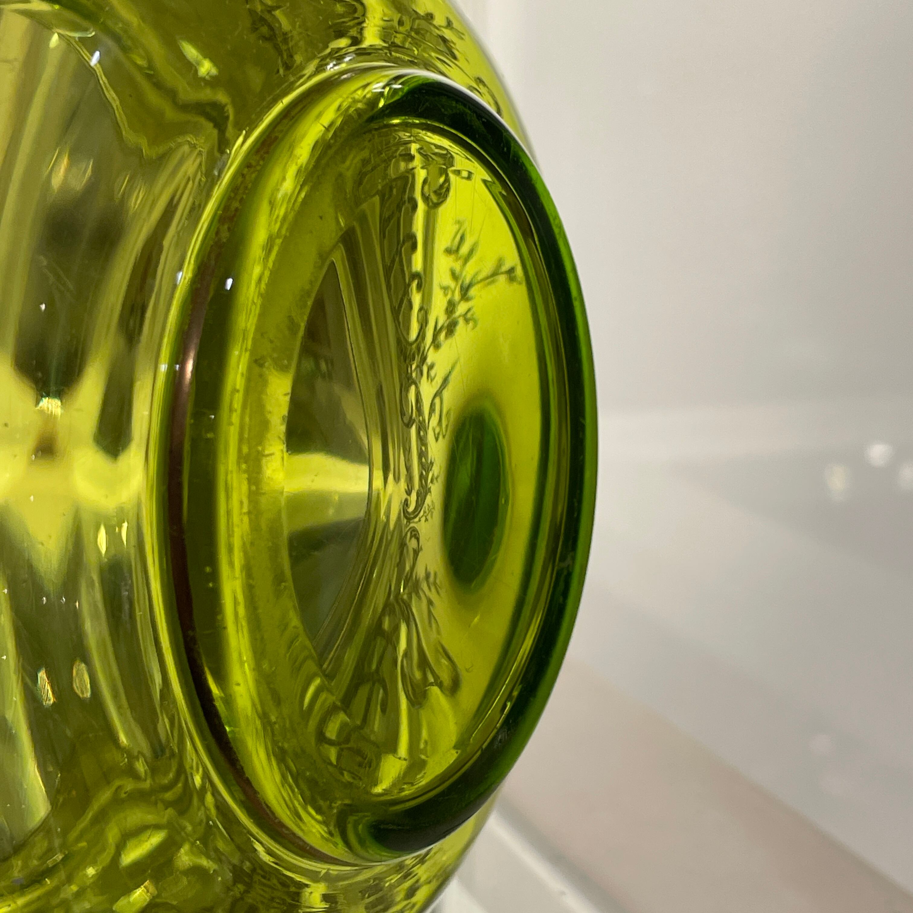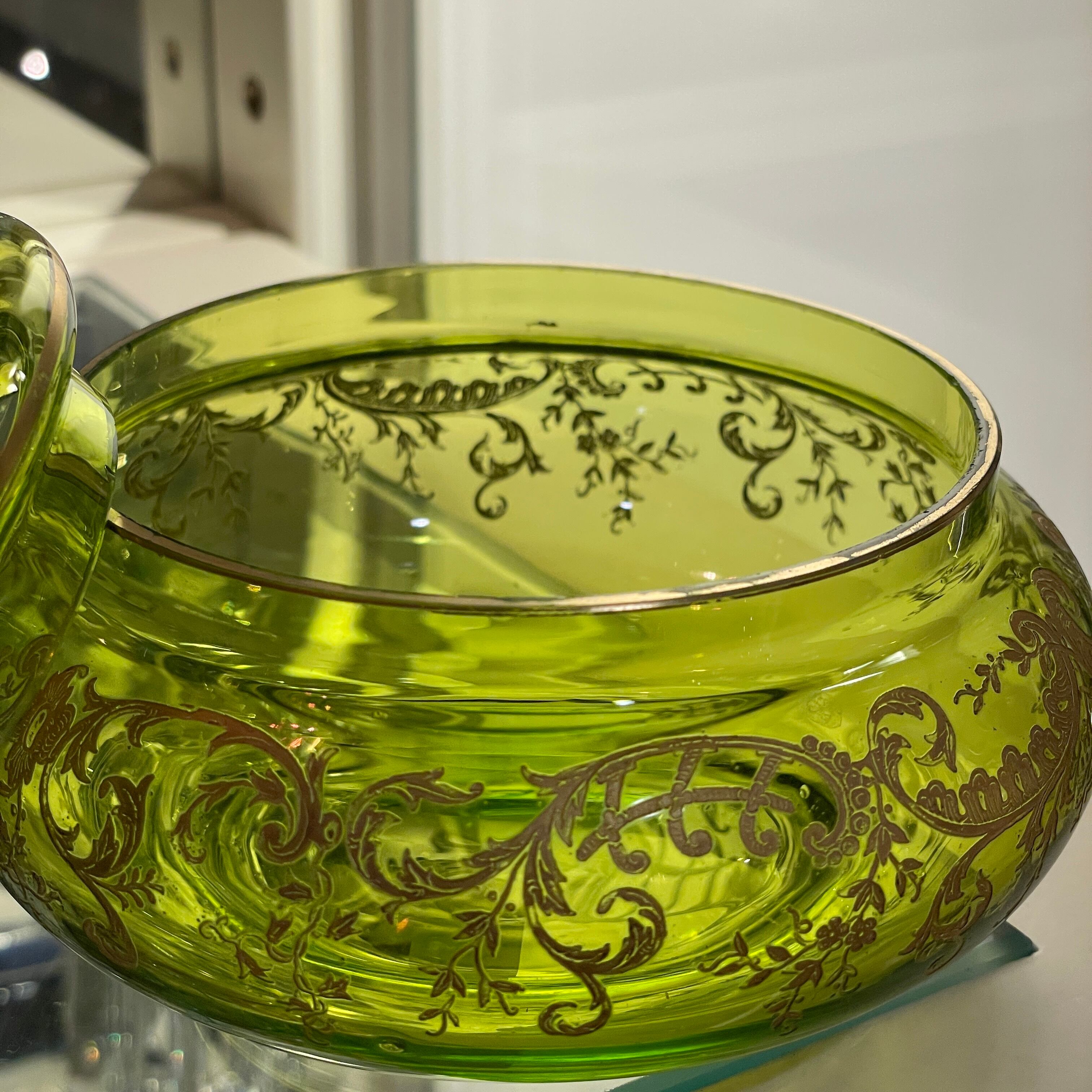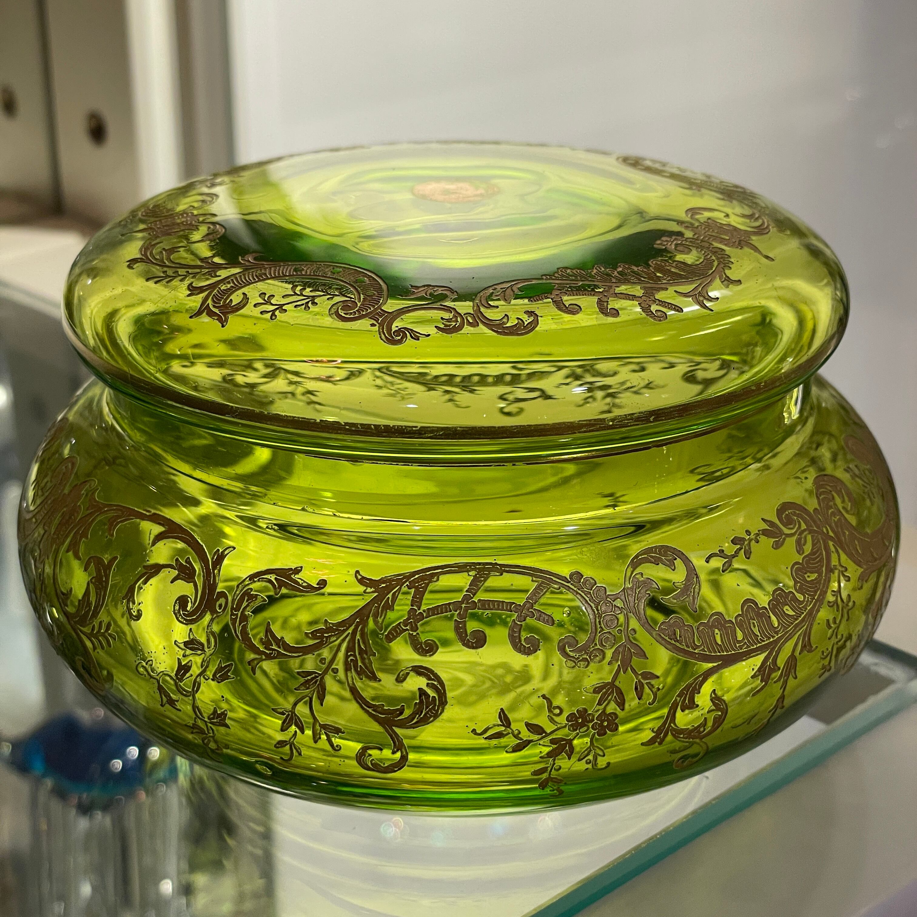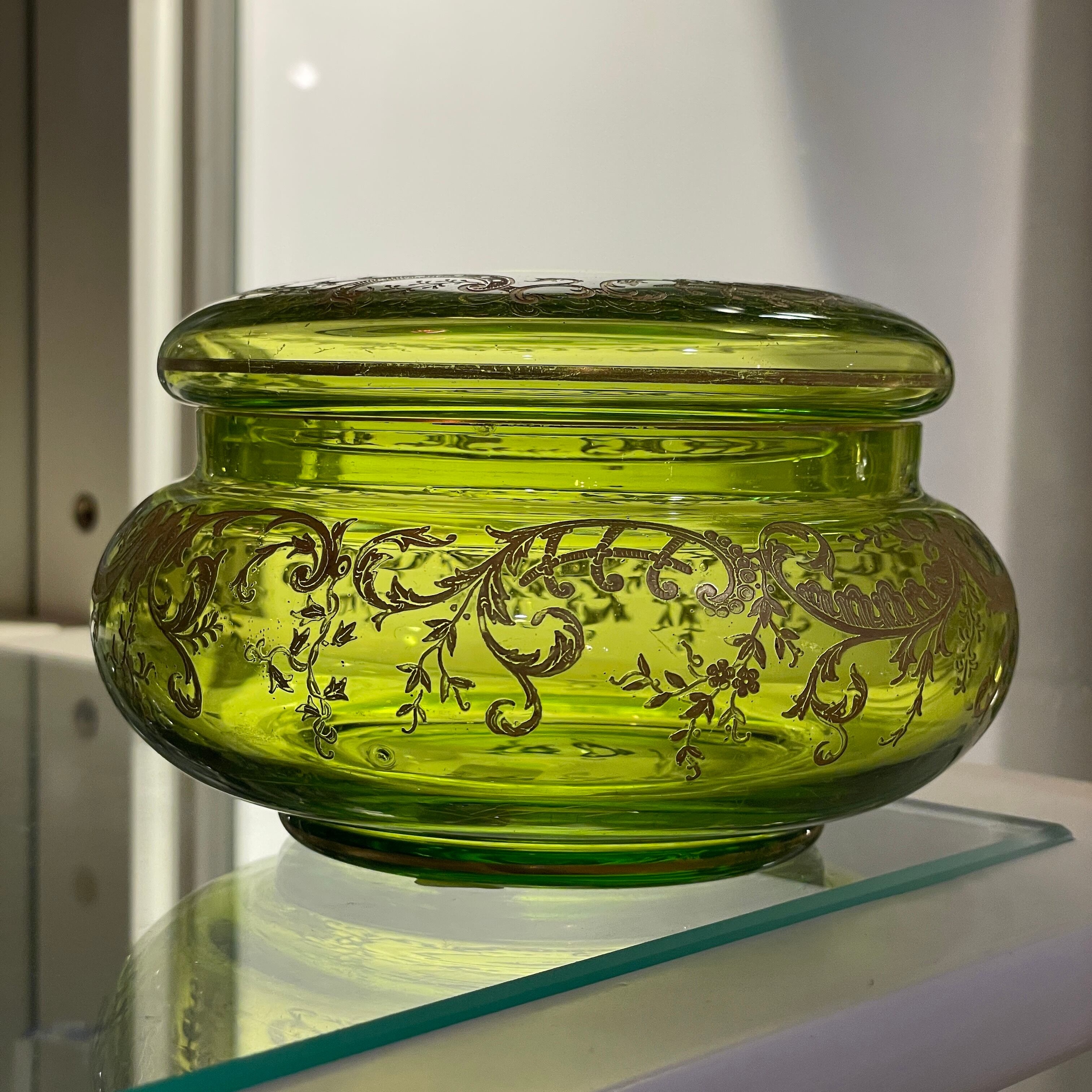 オールド Saint-Louis ボンボニエール|シャルトリューズグリーン 金彩 菓子器|19世紀末 アンティーク クリスタル