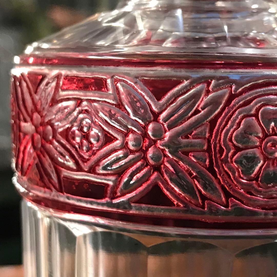 はっきりと深く彫り込まれたルビーレッドのお花はとても美しく