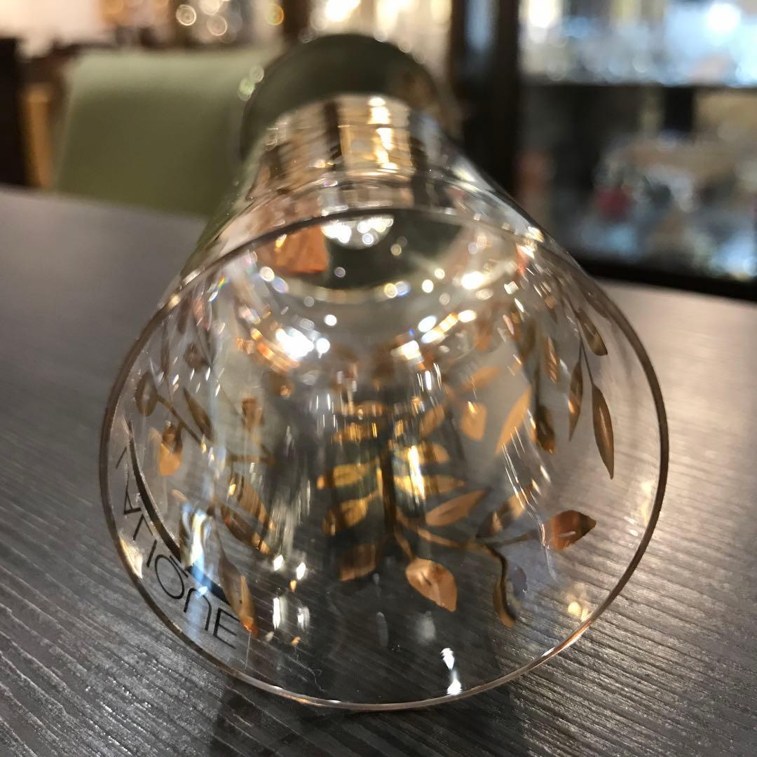 スッと伸びたグラスの表面に美しいゴールドの枝葉が自在に伸びています。