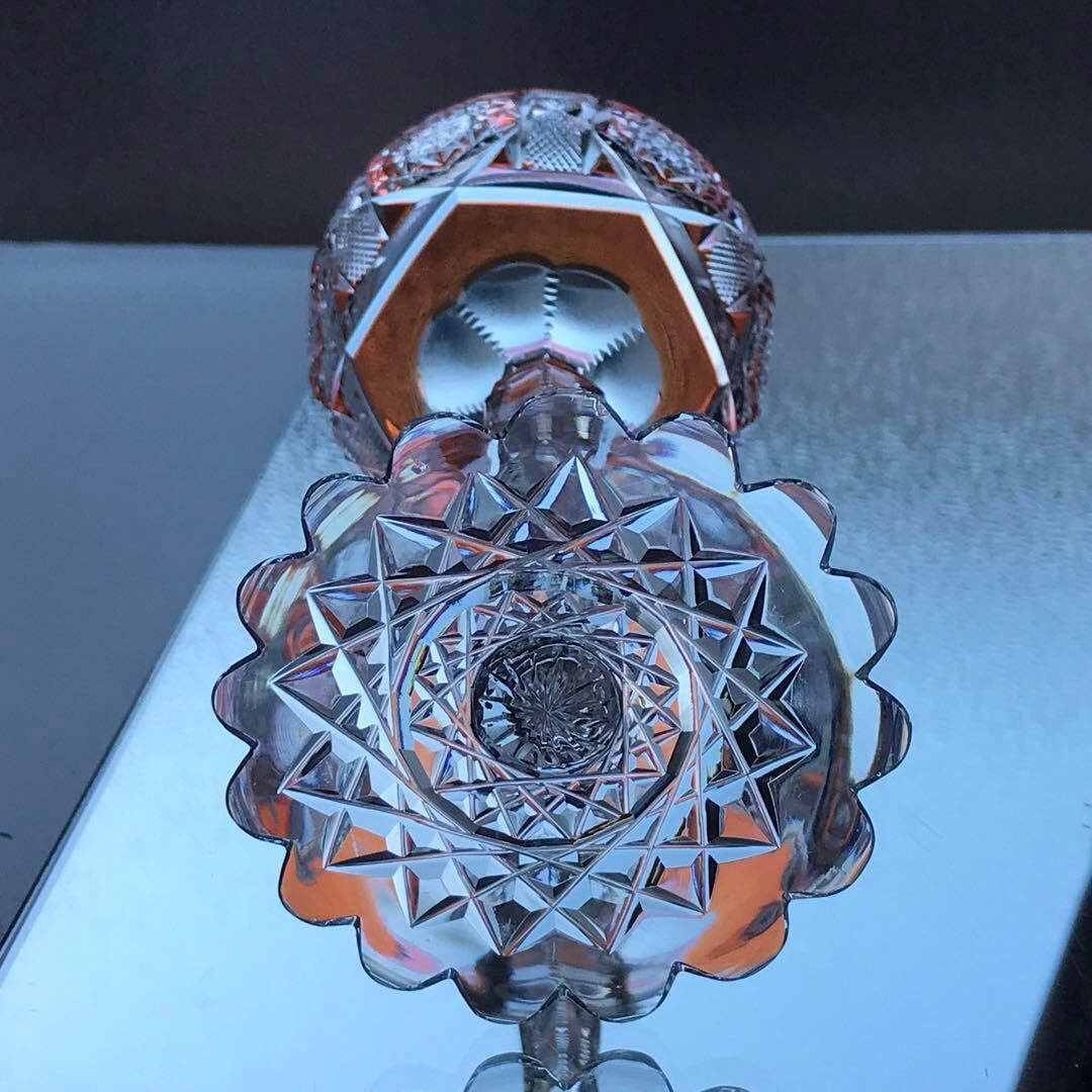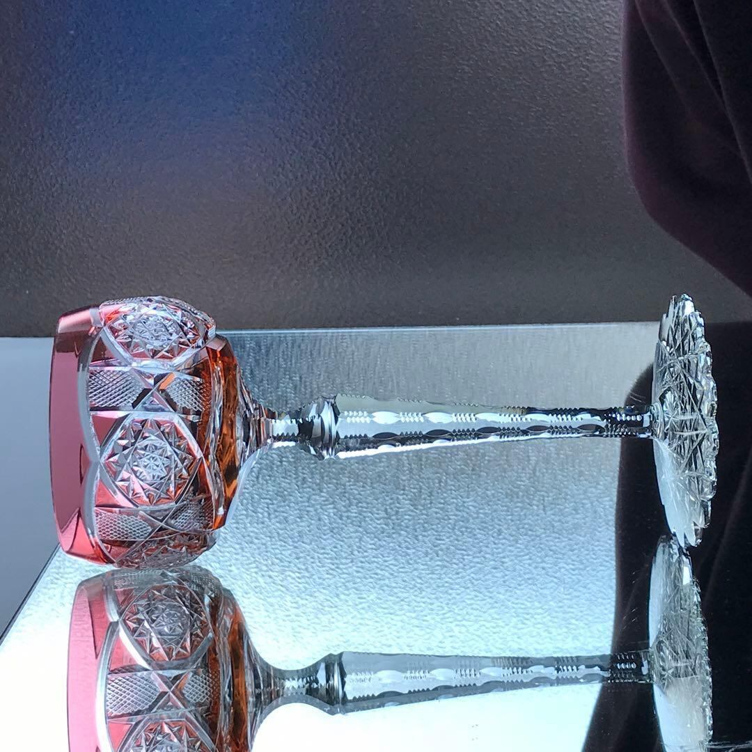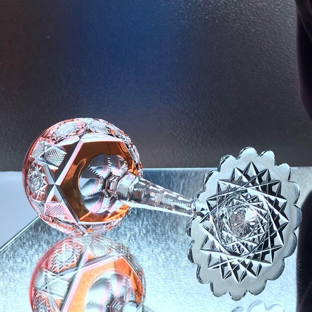 豪華なカット装飾のグラスを傾けた時に