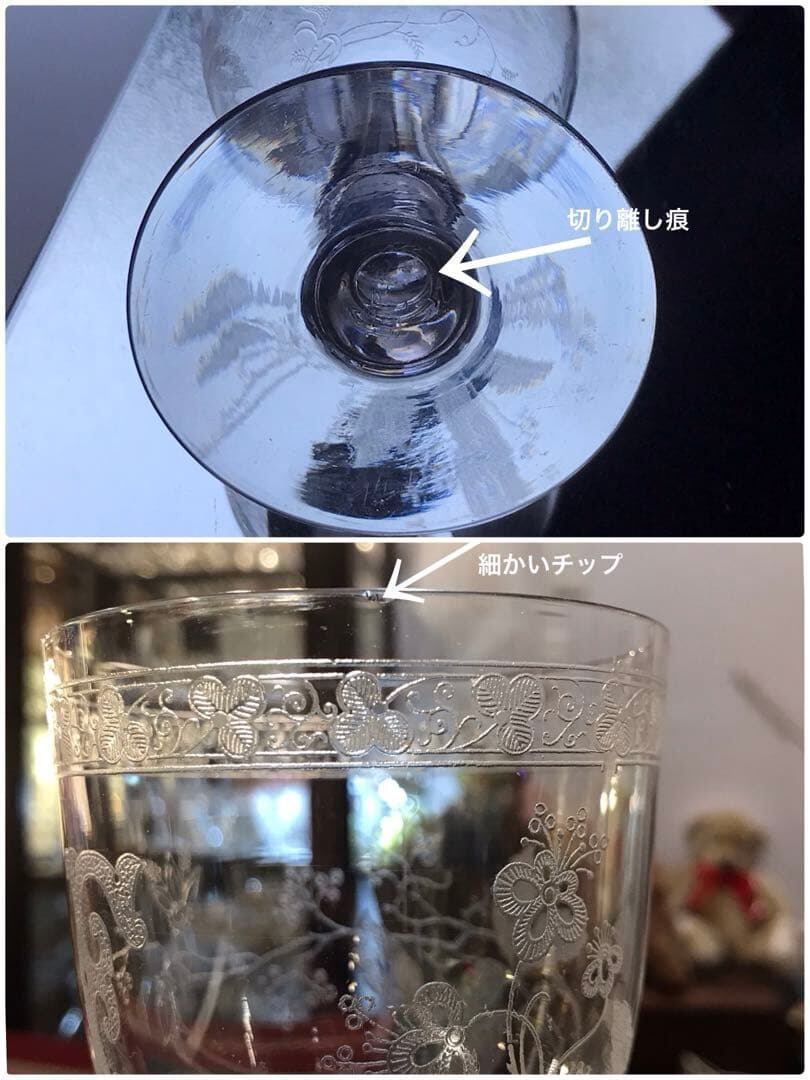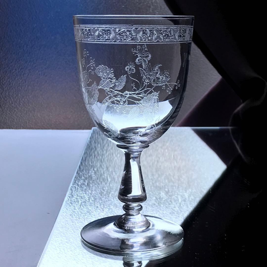 稀少☆美しいオールドバカラ Baccaratワイングラスグラヴュール4360