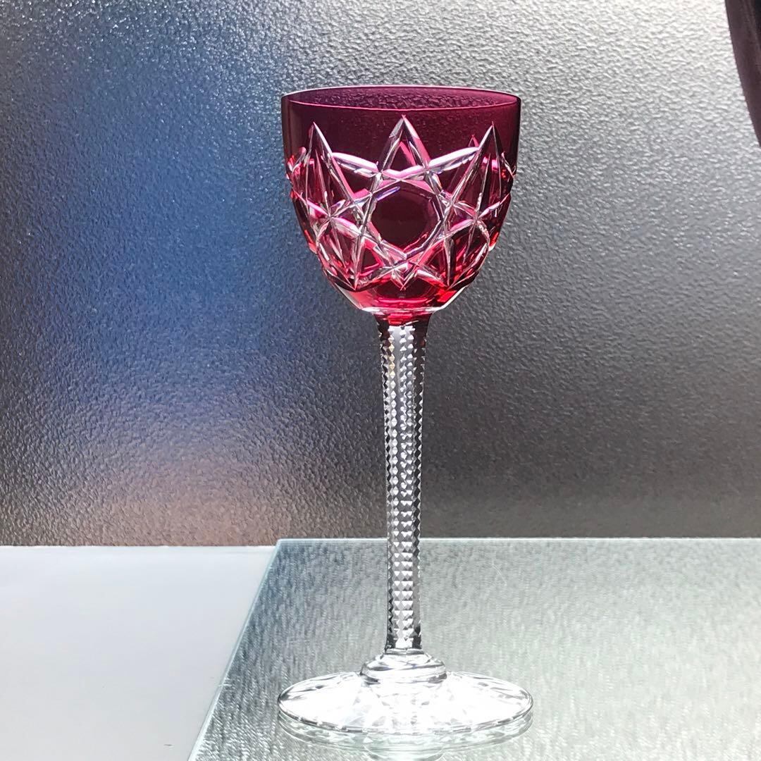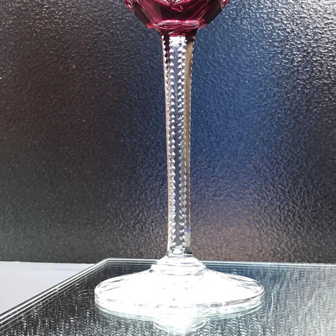 被せルビーレッド♡オールドバカラBaccaratラインワイングラスS1134稀少