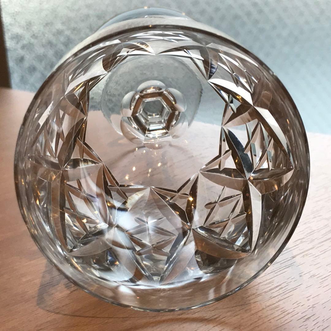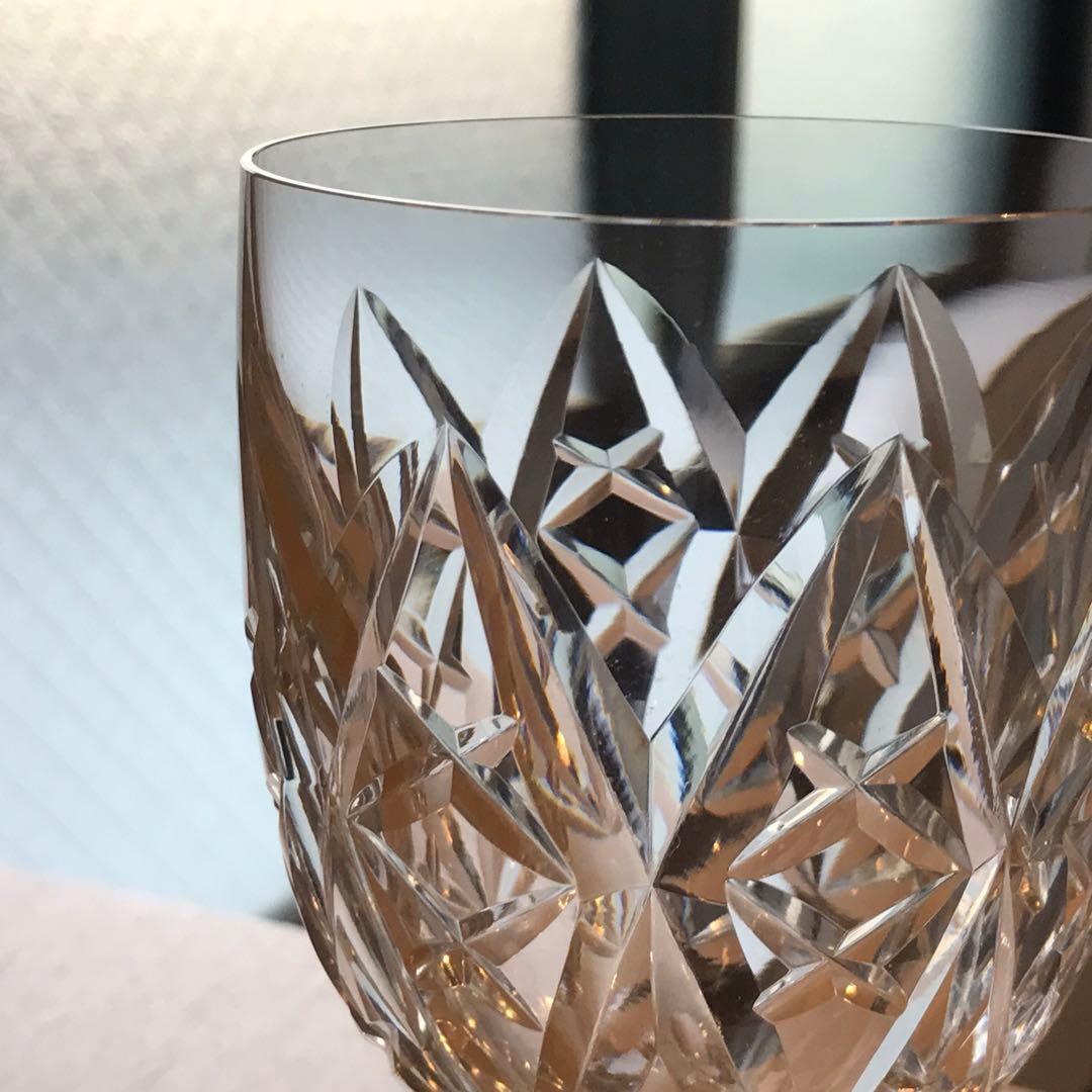 深いカットがクロスするような形で施されています。光を集めてテーブルの上を明るく
