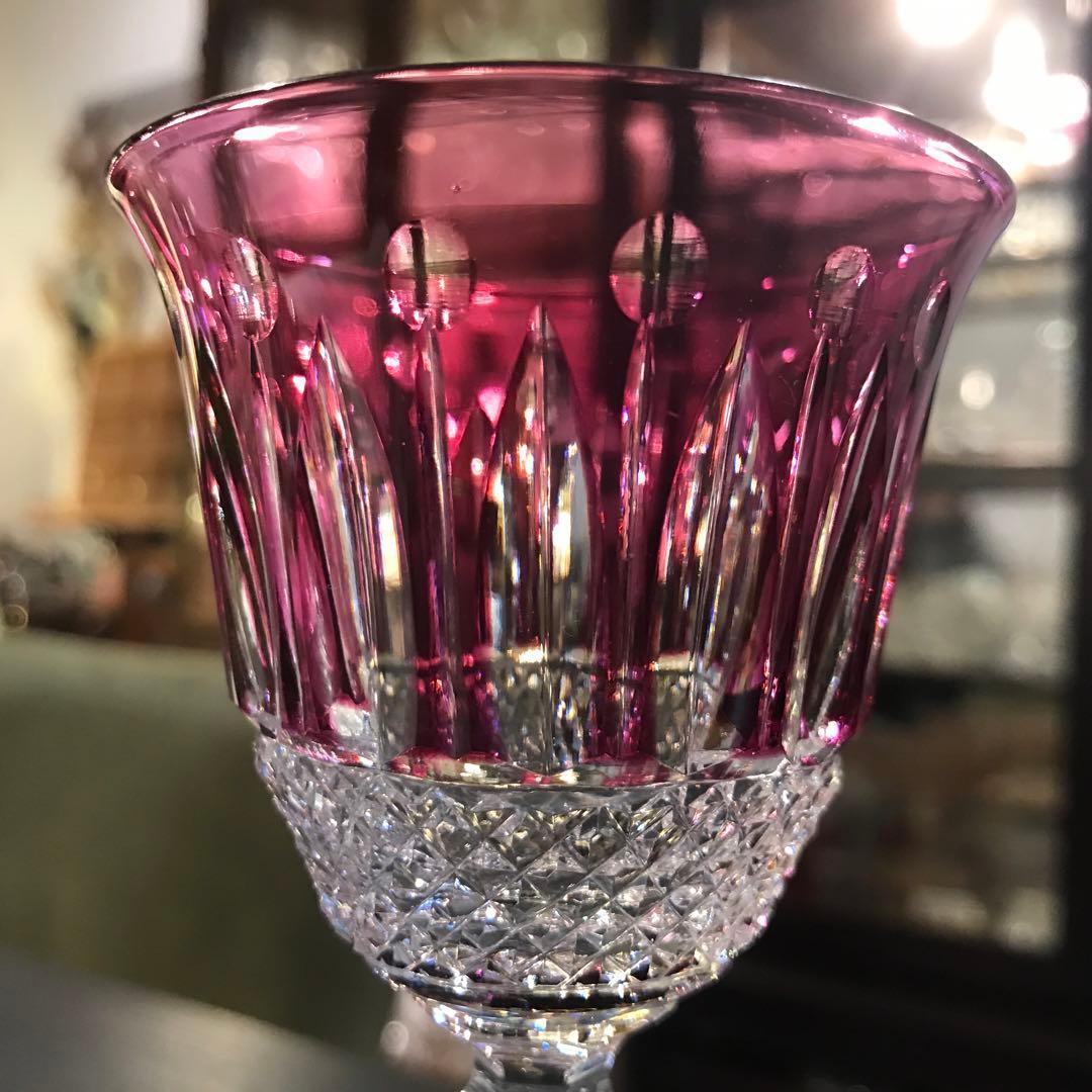 オールドサンルイSt.LouisトミーTommyクリスタルアメジスト被せワイングラスの