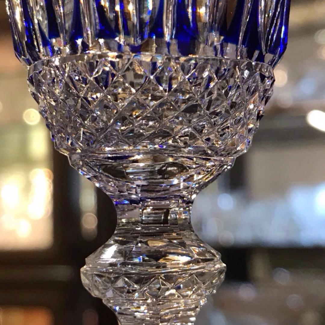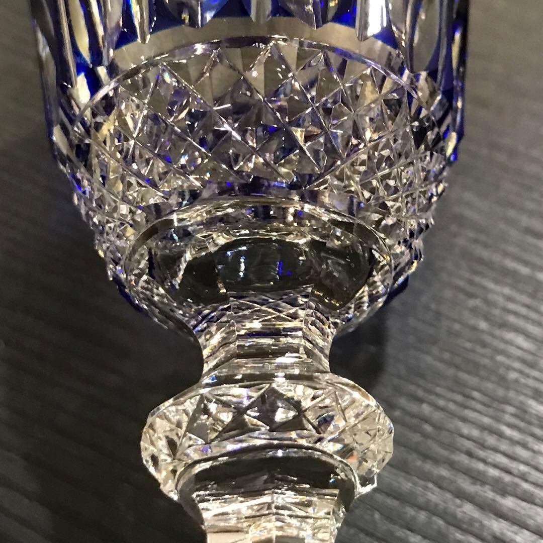 透明なクリスタルガラスの上にブルーのクリスタルガラスを被せ