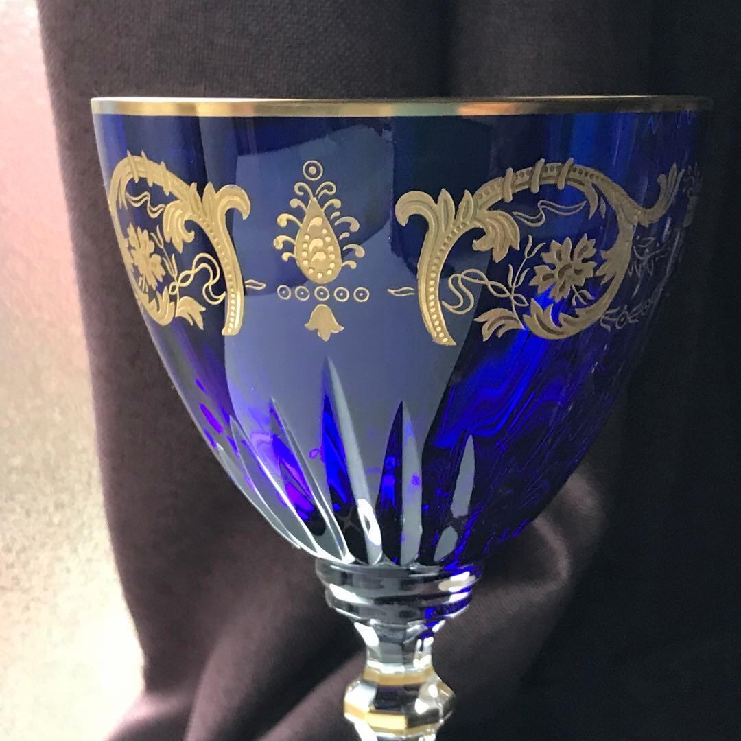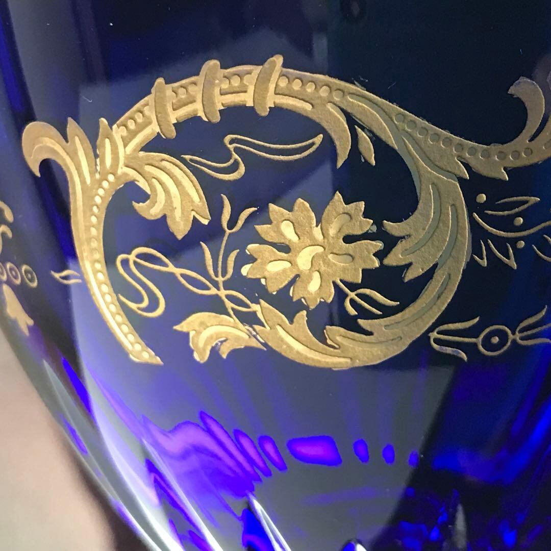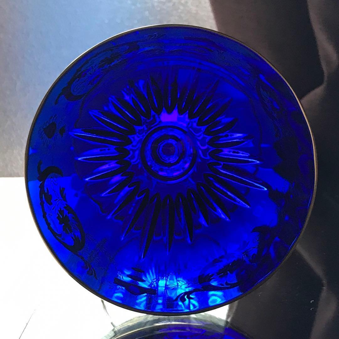 コートヴェニシエンスが施された吹きガラス製の群青色のクリスタルのボウルは、