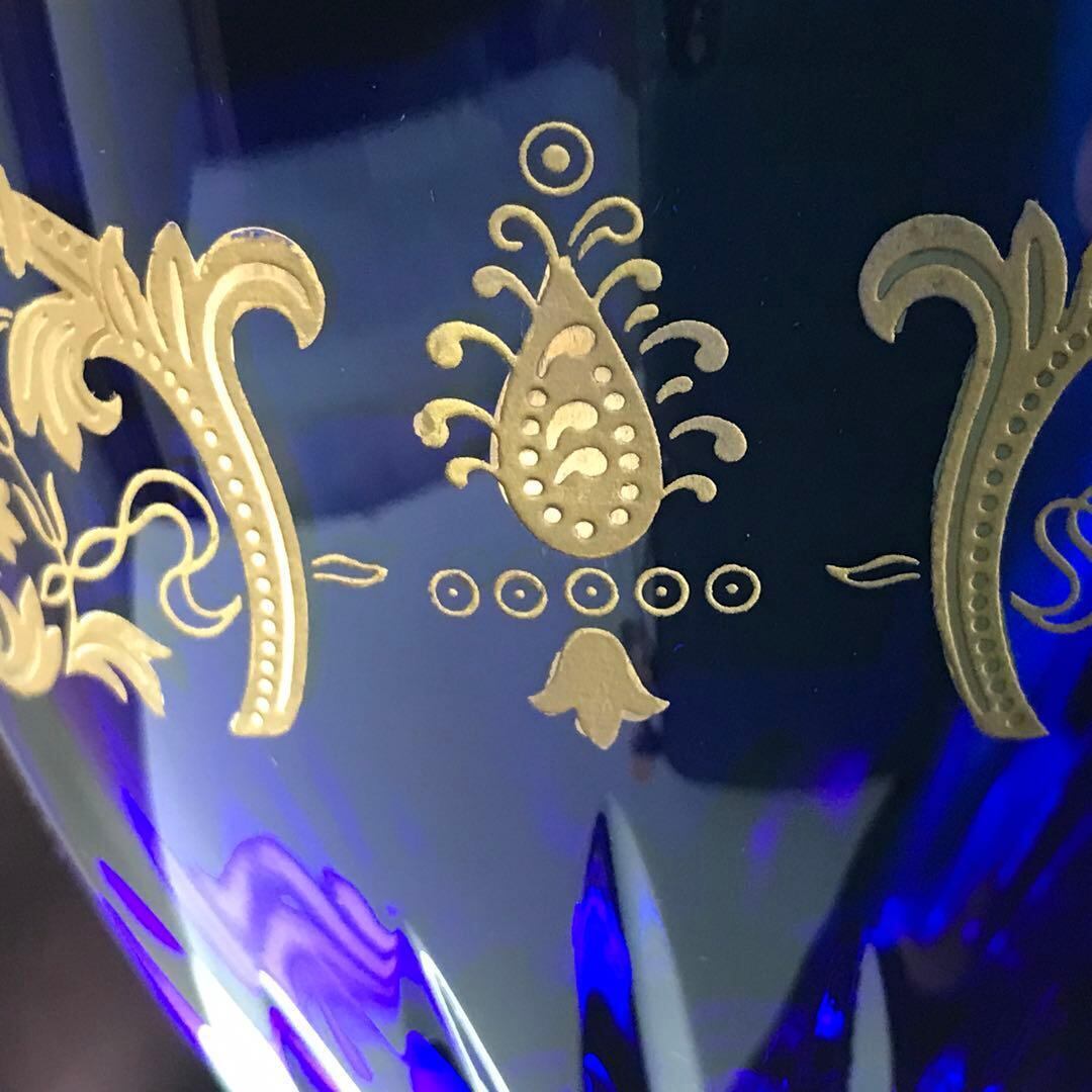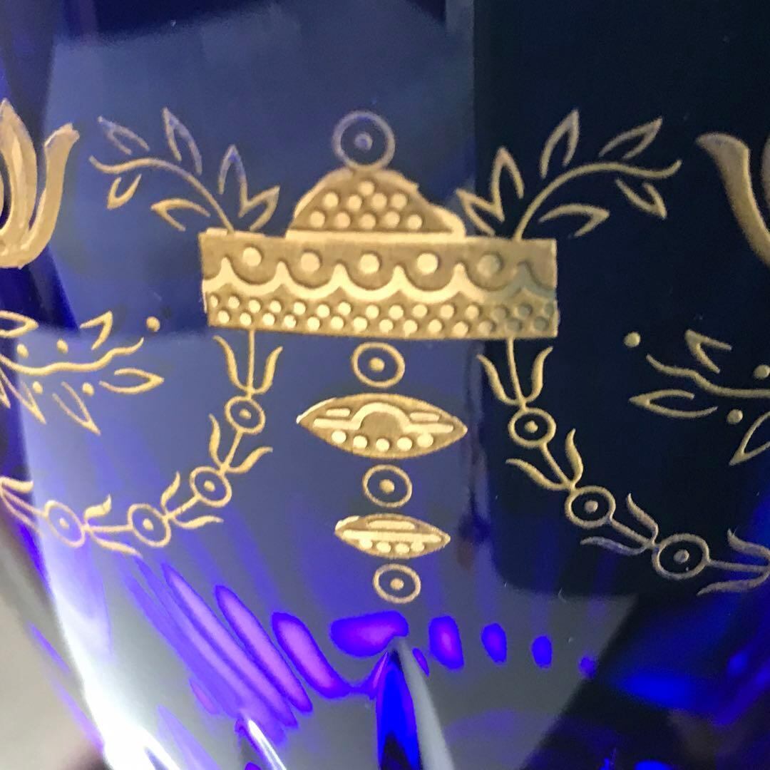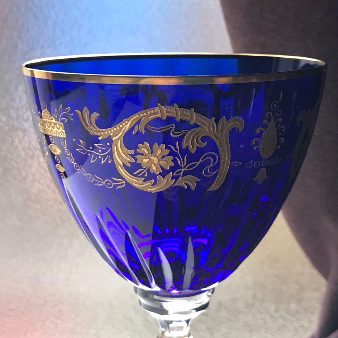 コートヴェニシエンスが施された吹きガラス製の群青色のクリスタルのボウルは、