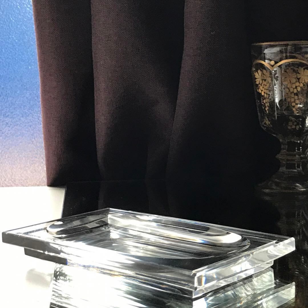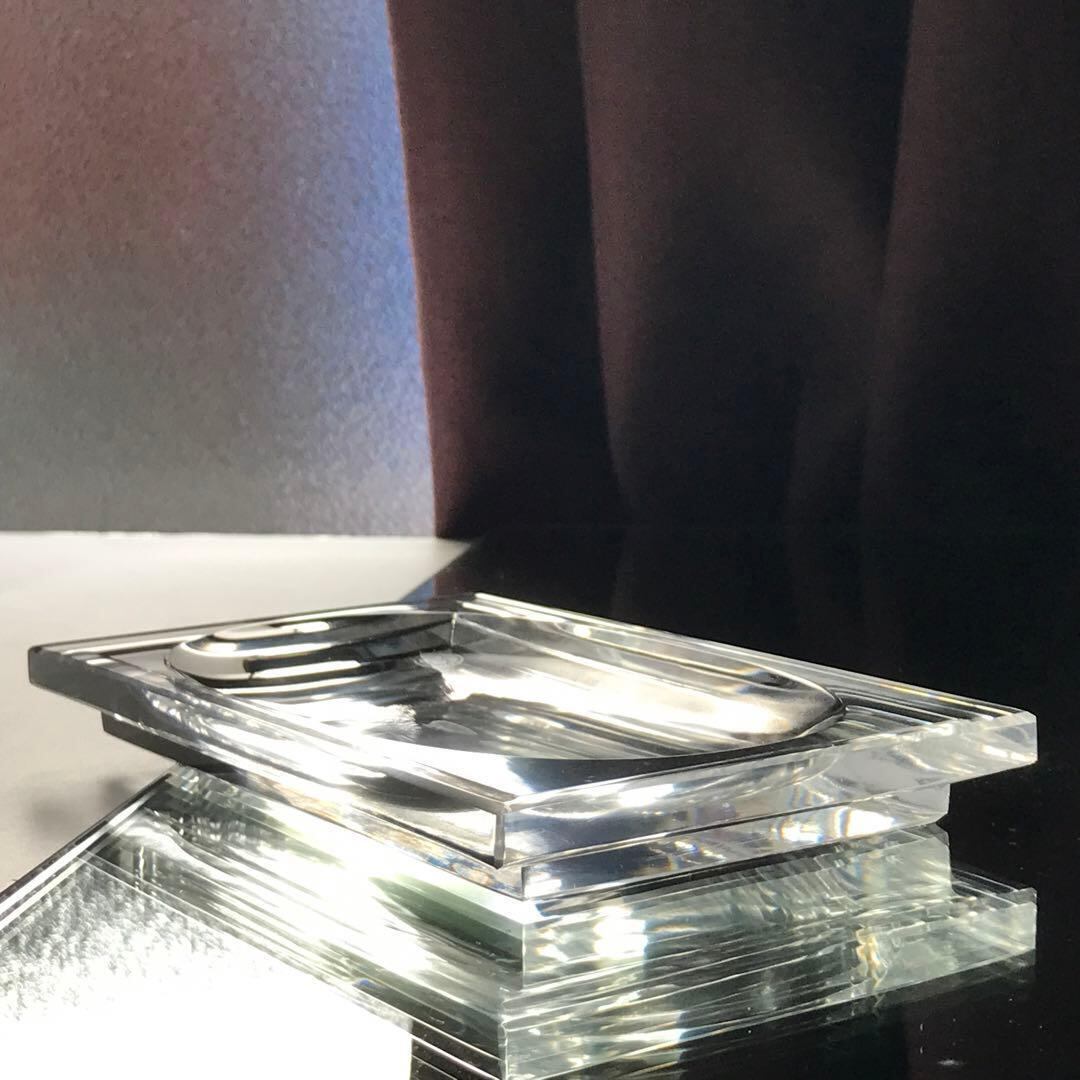 非常に洗練された幾何学的形状で、とてもモダンなクリスタルトレイです。