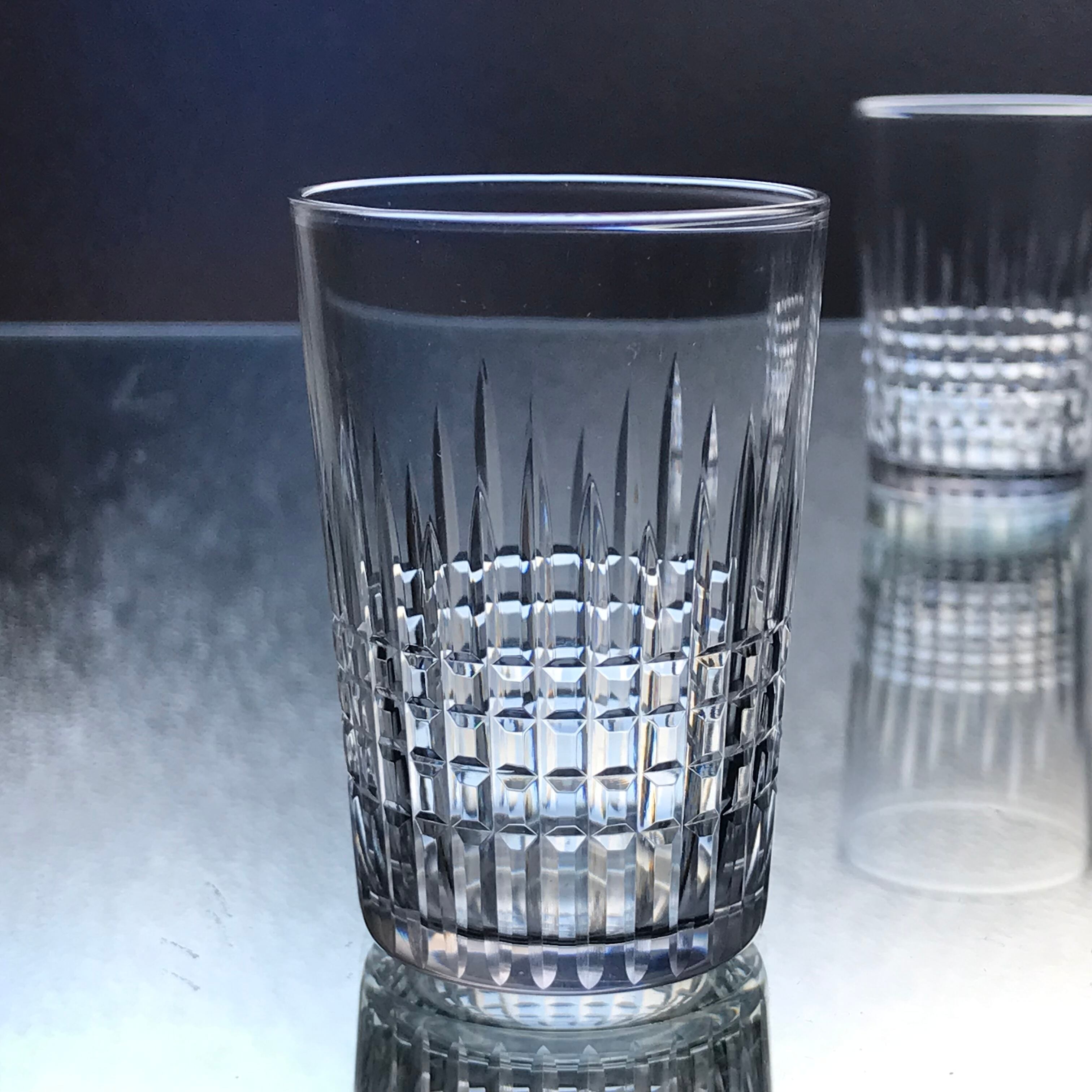 縦横にカットされたグラスは、光を取り入れてとても綺麗に輝きます。