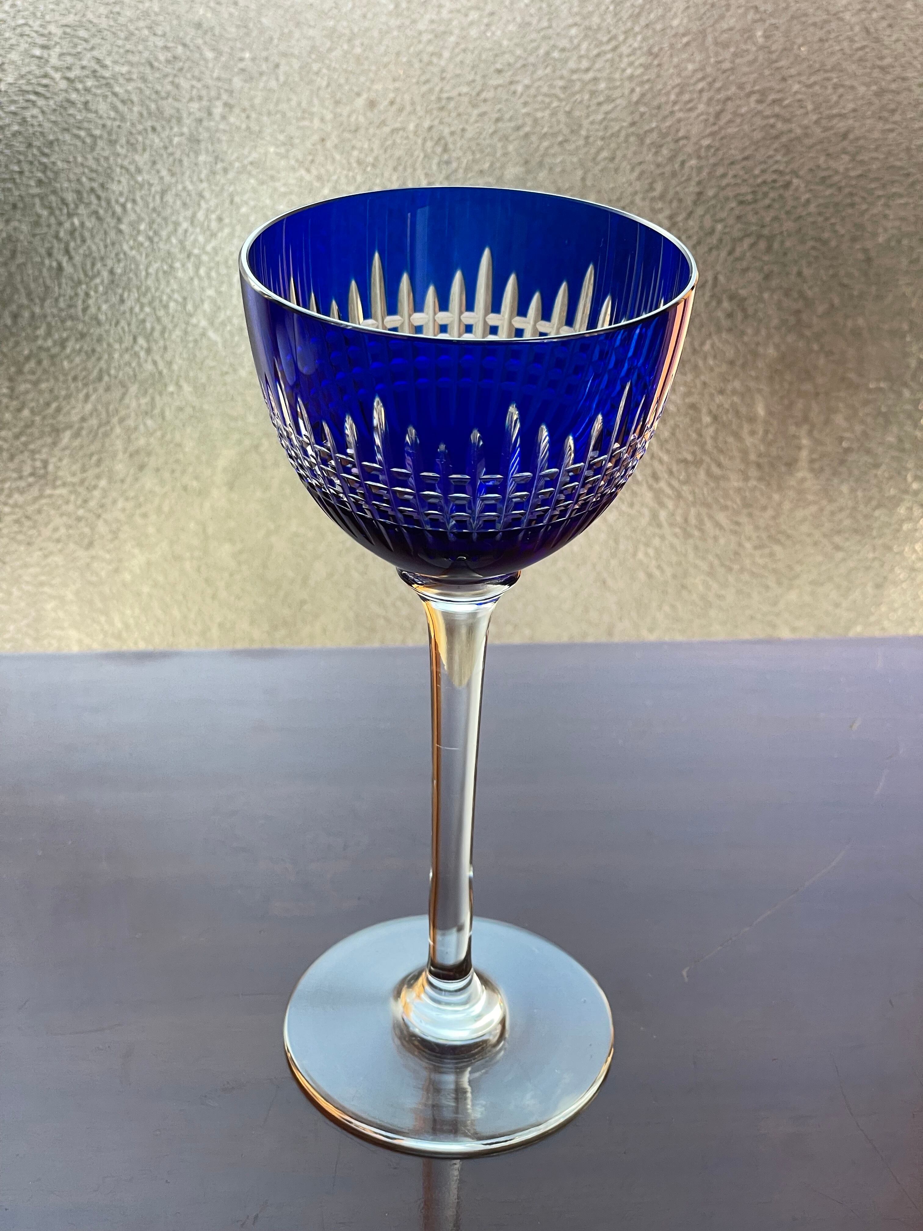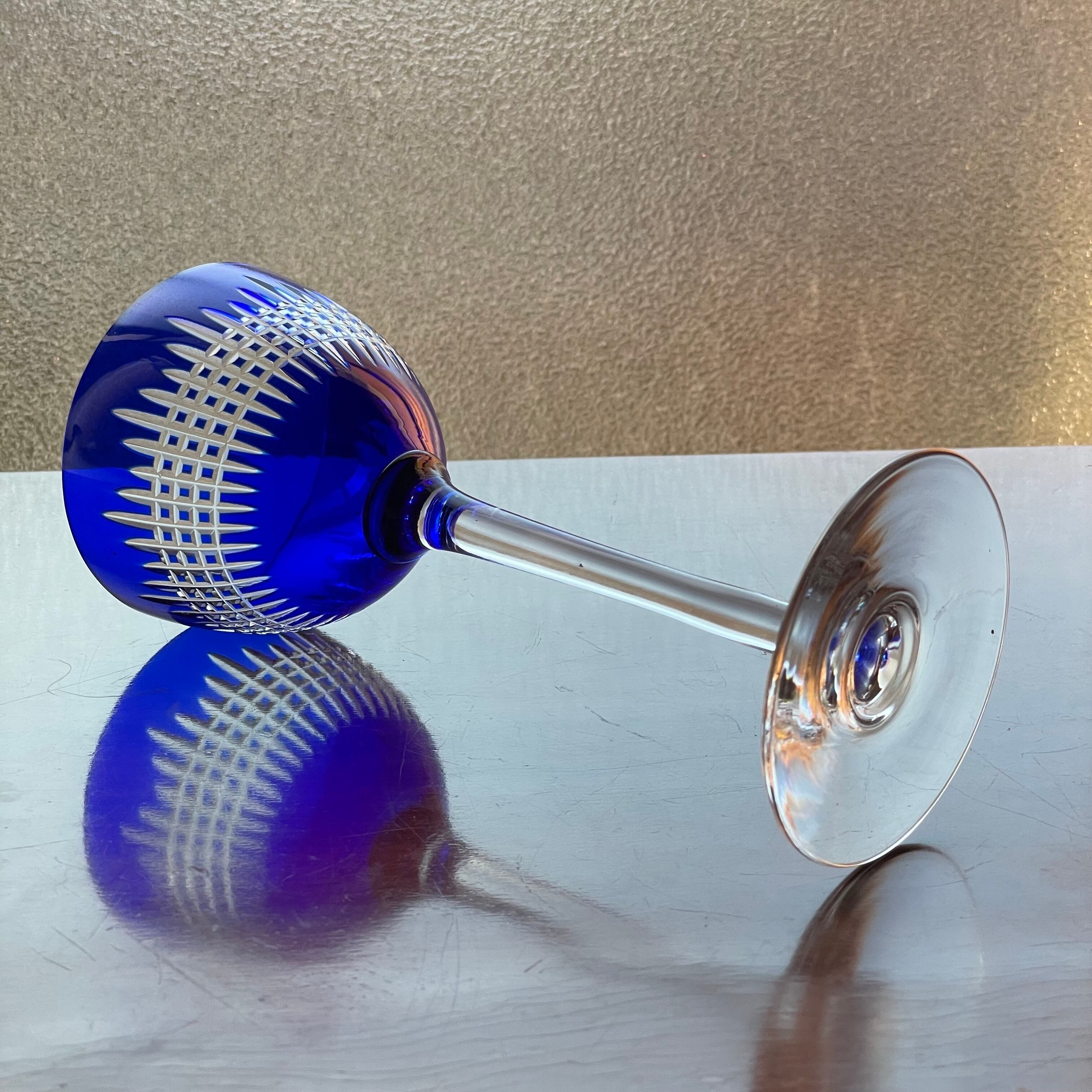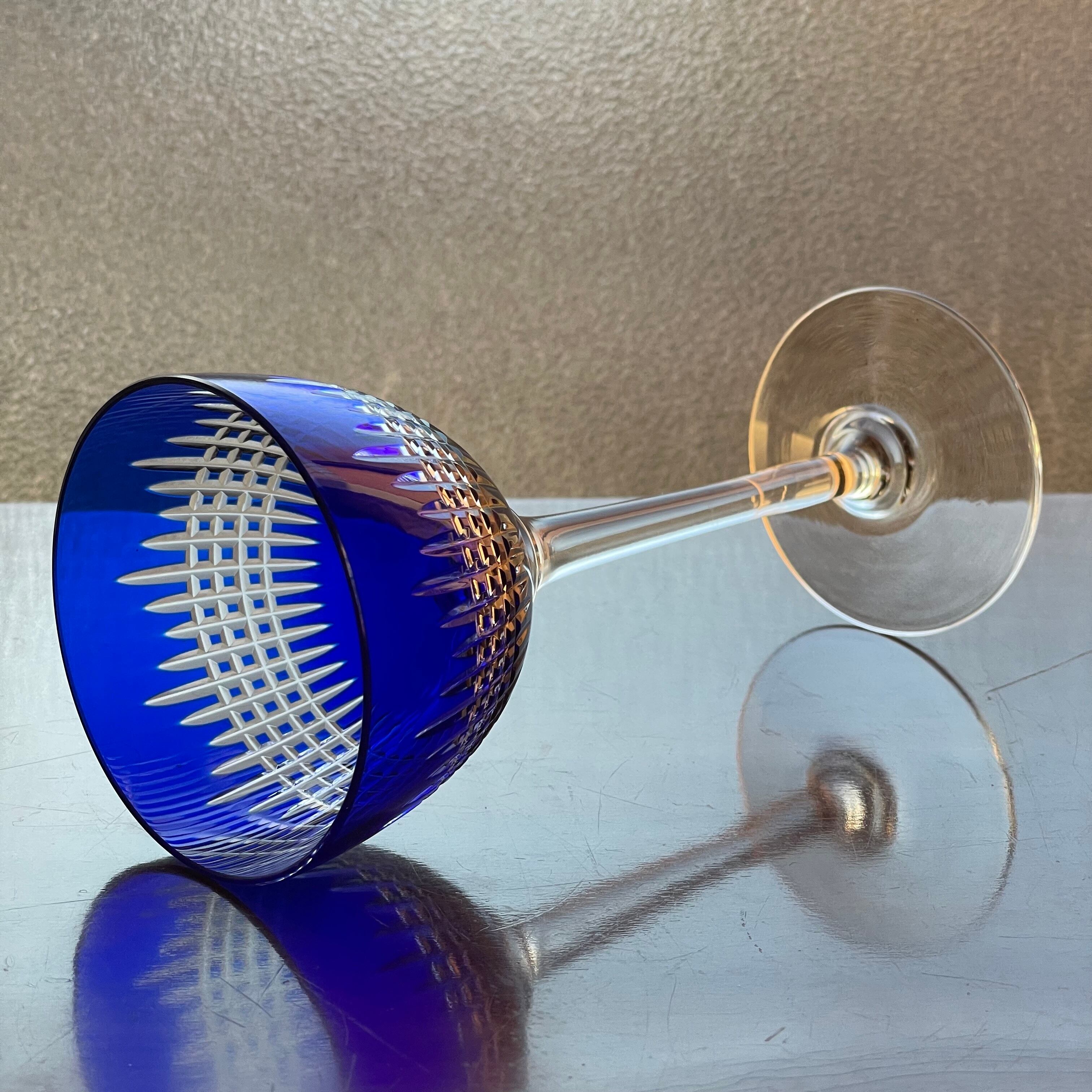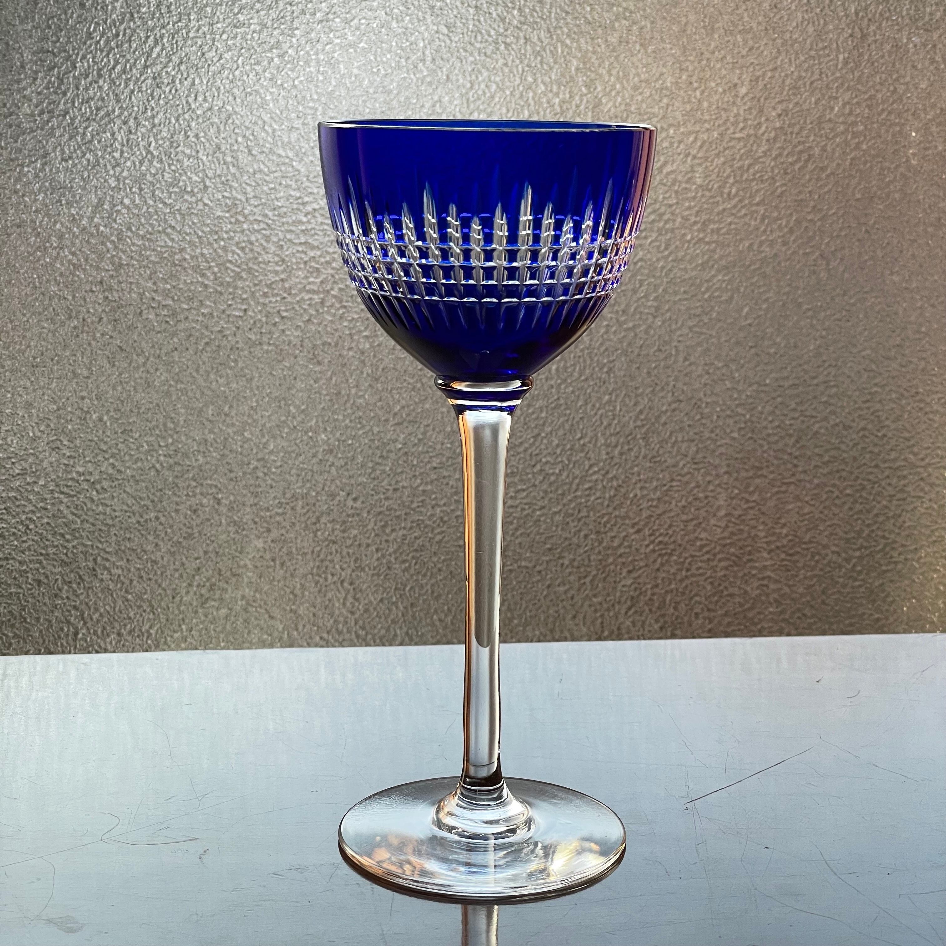 美しいオールドバカラBACCARATナンシーNancy青色被せラインワイングラス アンティーク antique フランス france