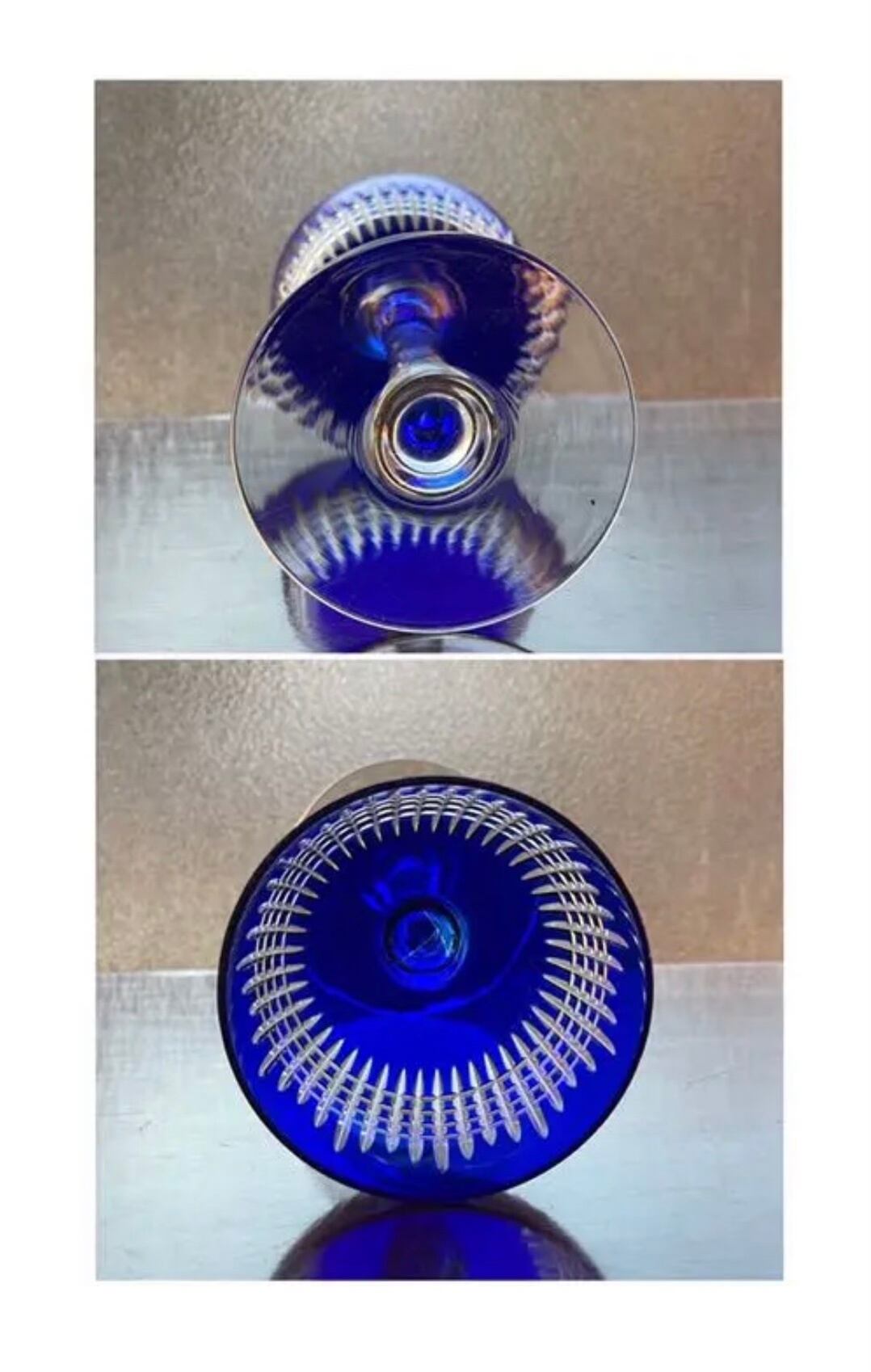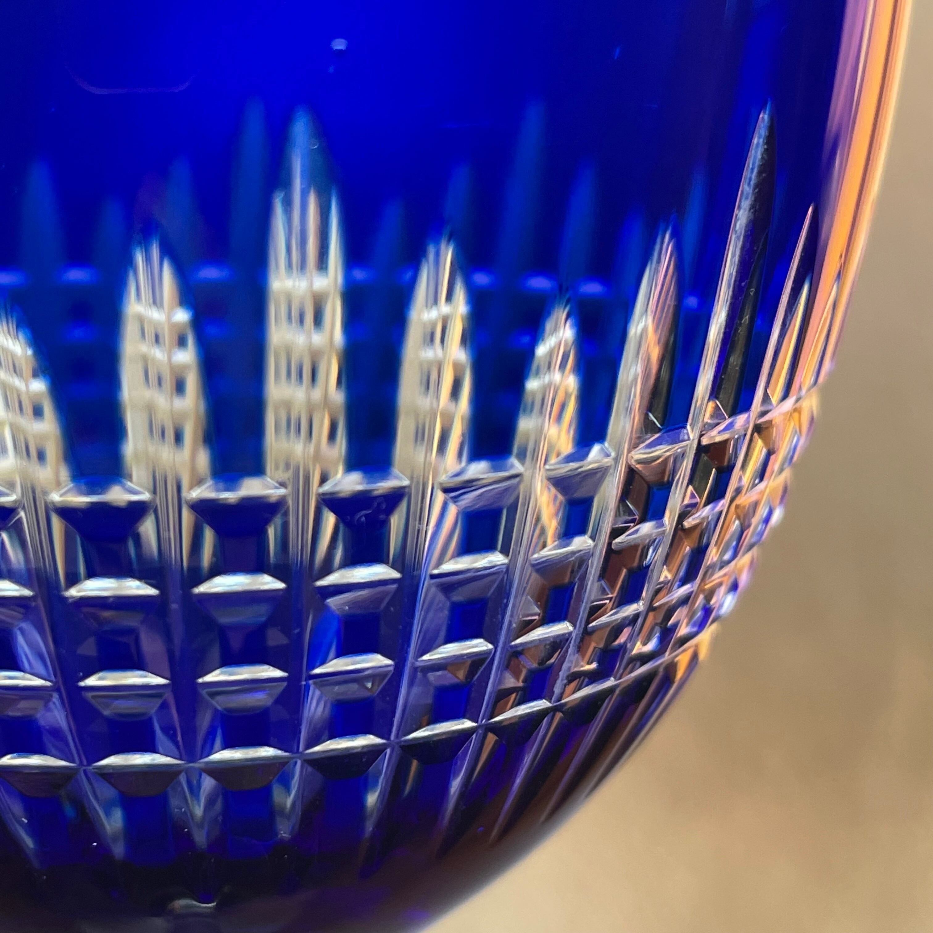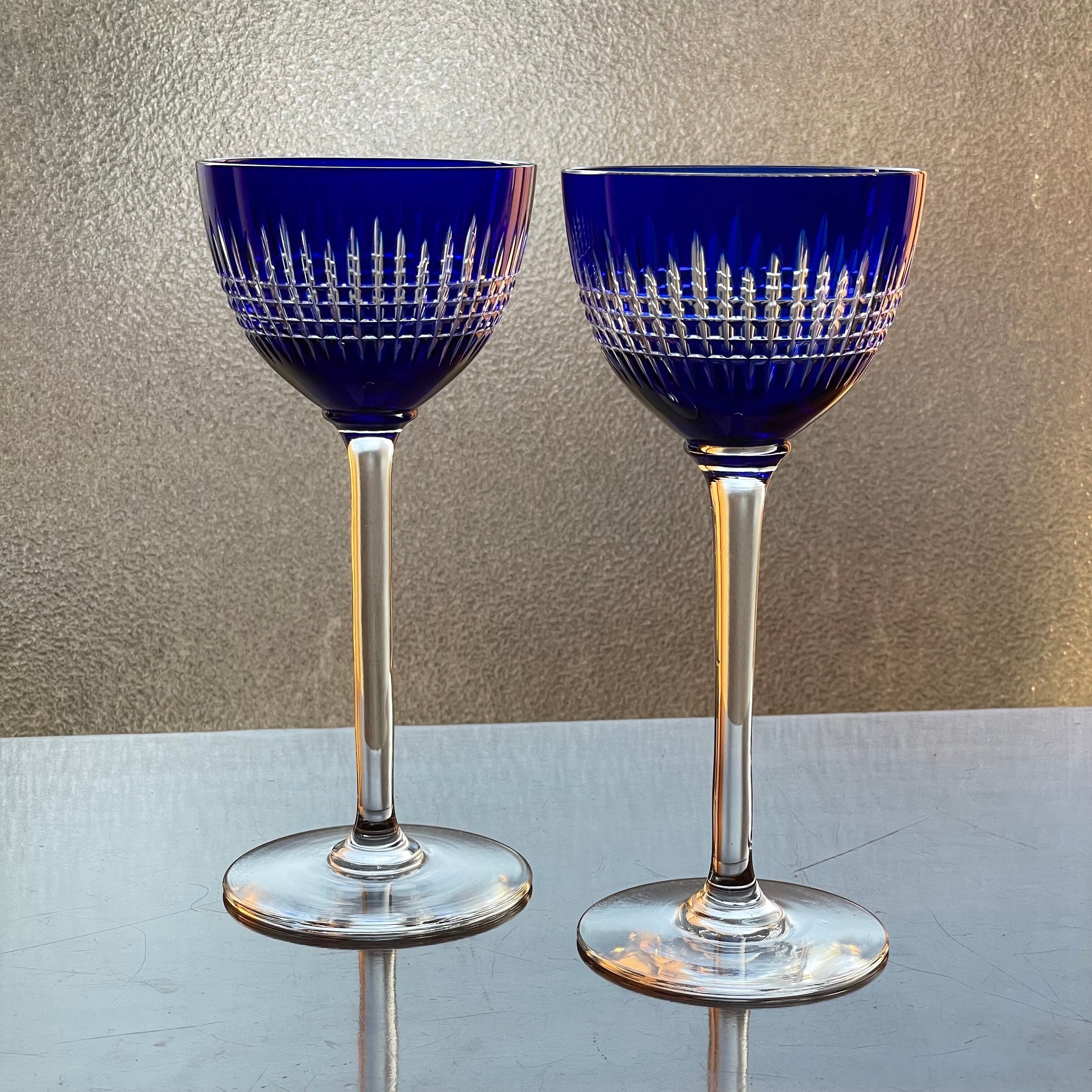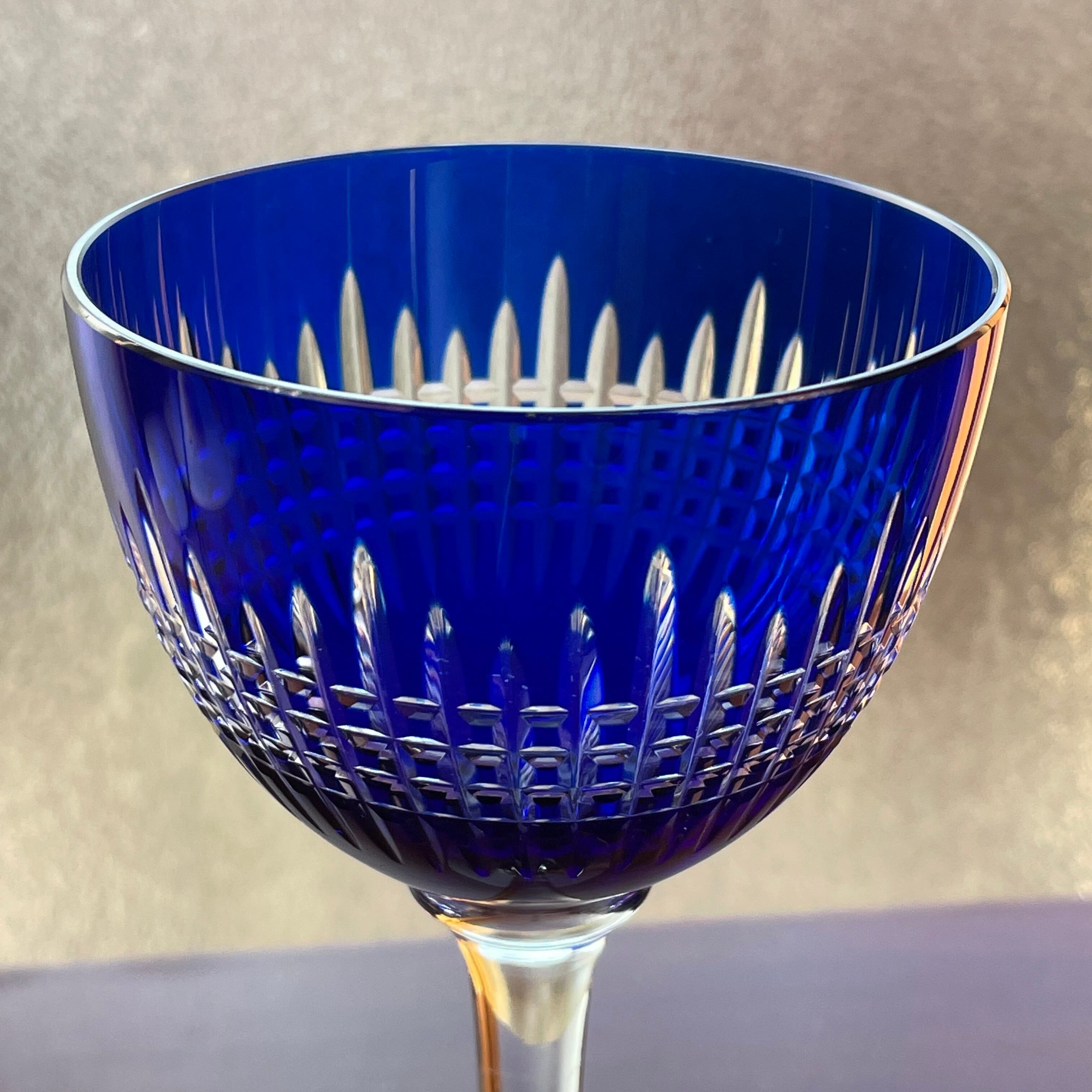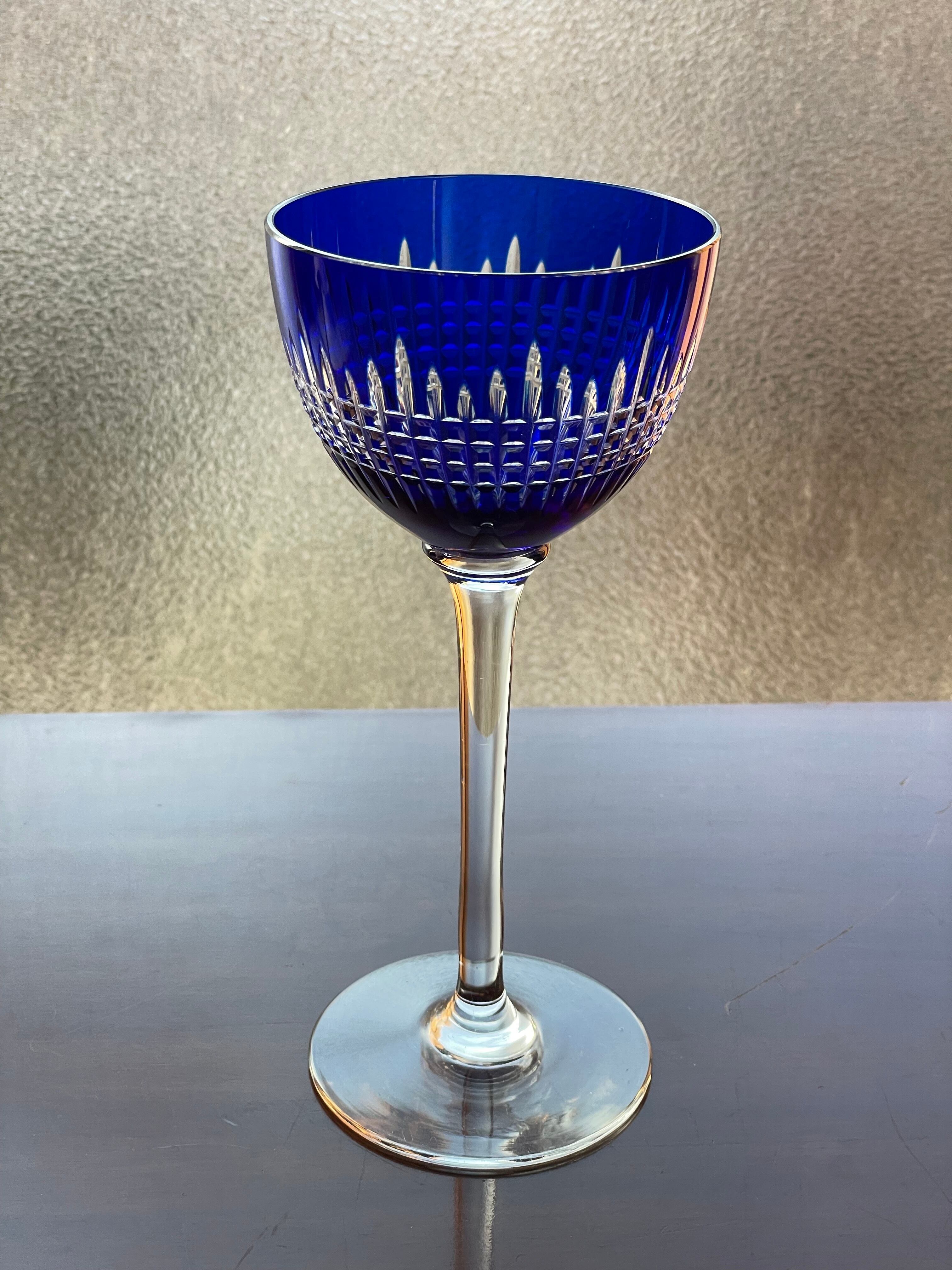 美しいオールドバカラBACCARATナンシーNancy青色被せラインワイングラス アンティーク antique フランス france