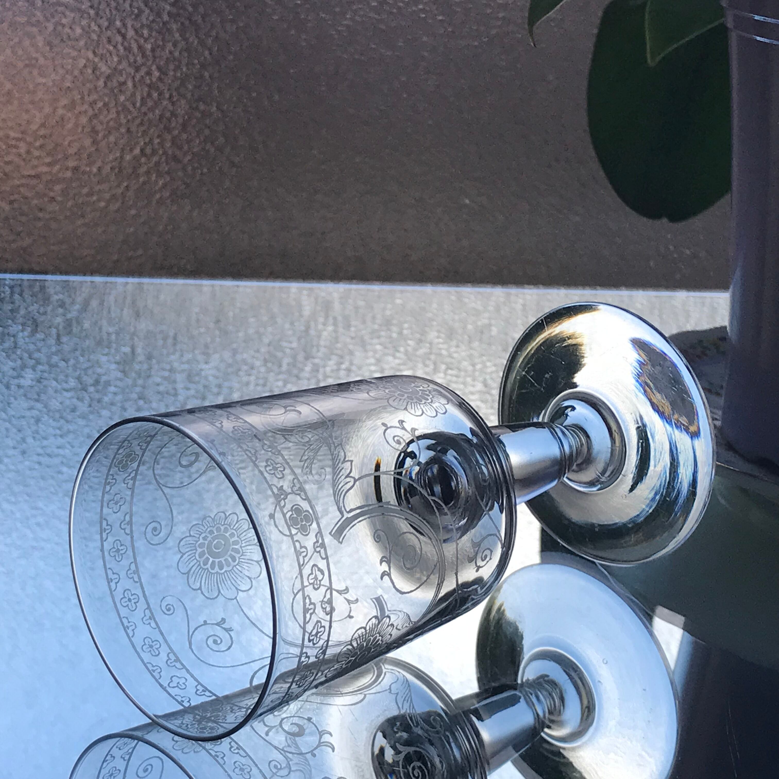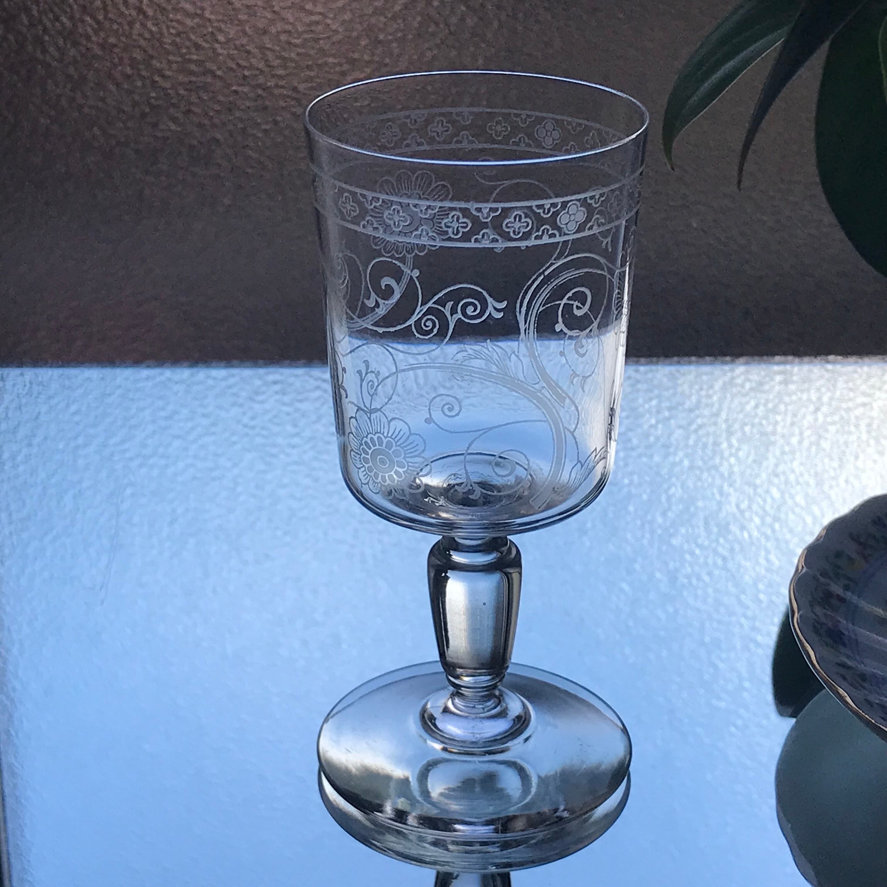 希少なマーガレット彫刻装飾の赤ワイングラスn3932を