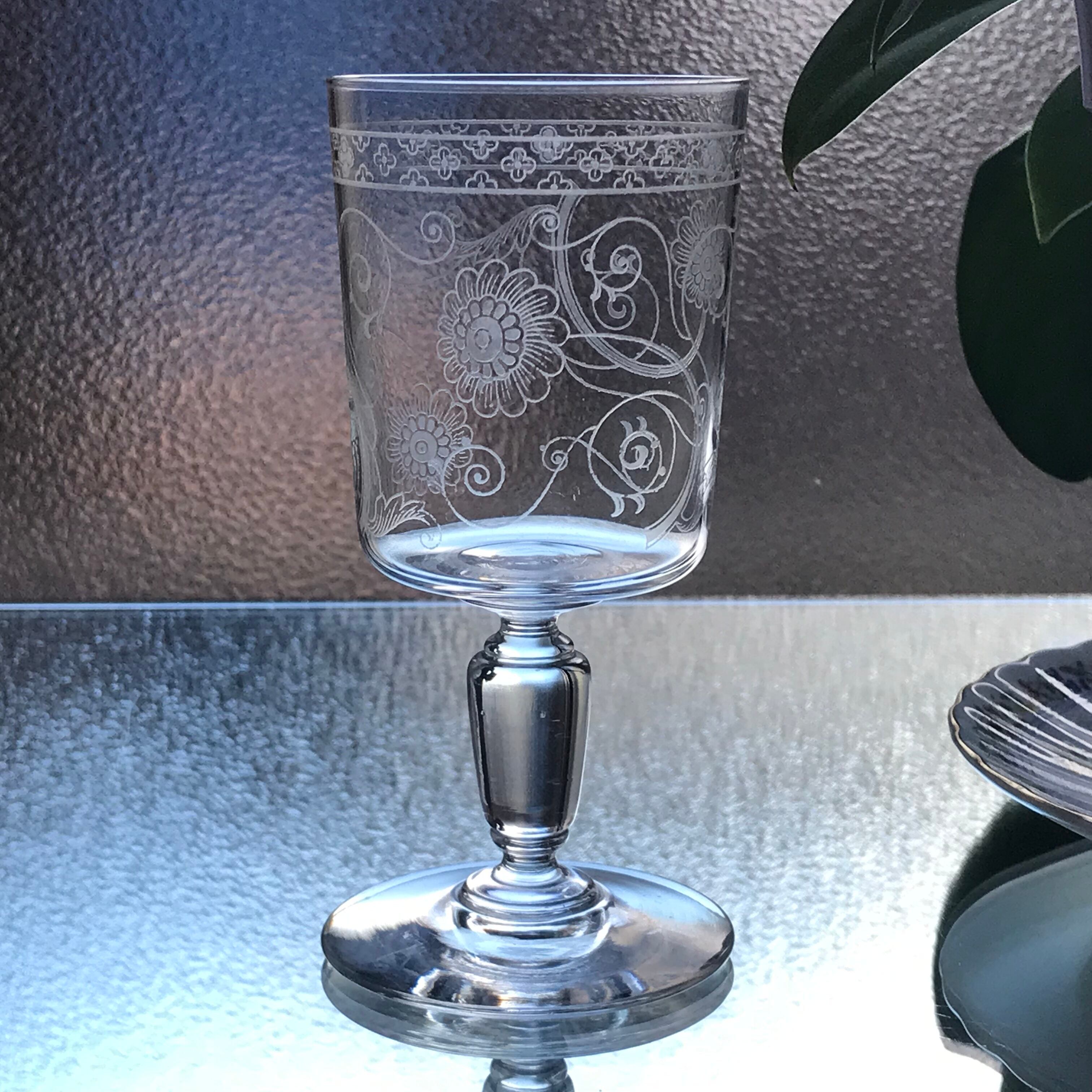可愛い希少オールドバカラBACCARATクリスタルワイングラス マーガレットの花