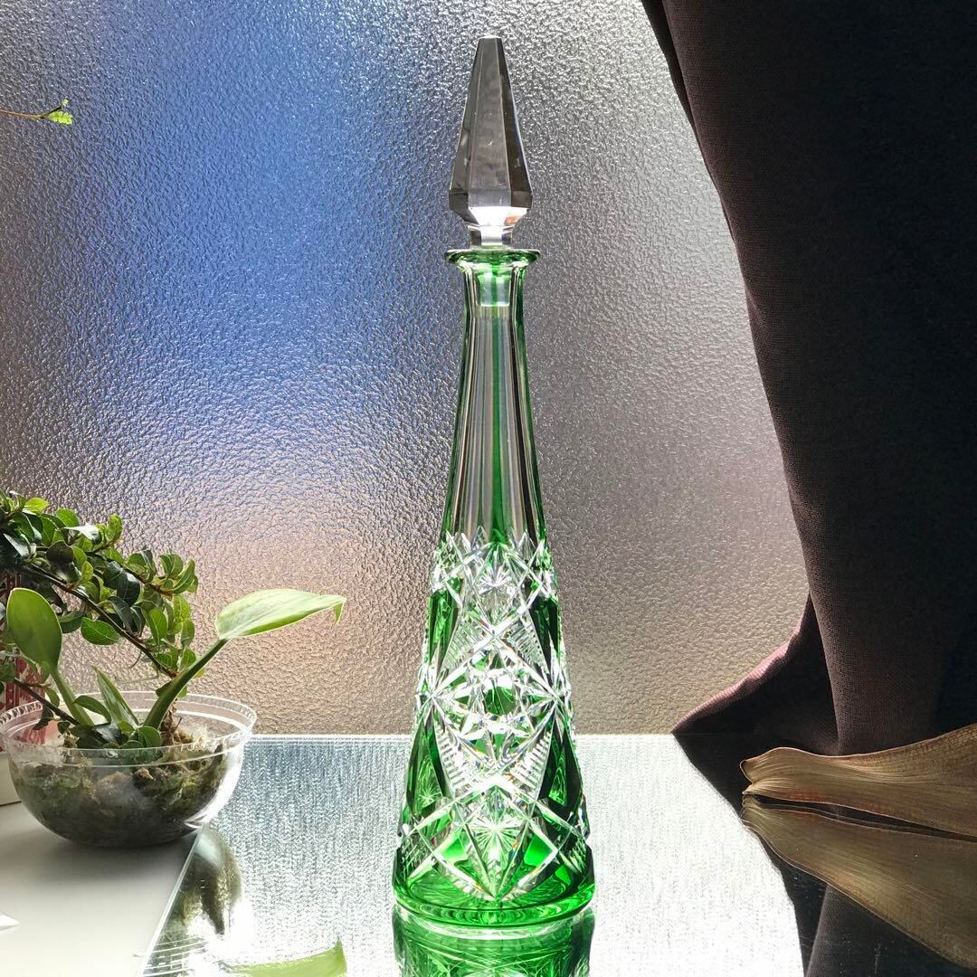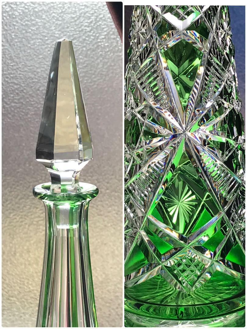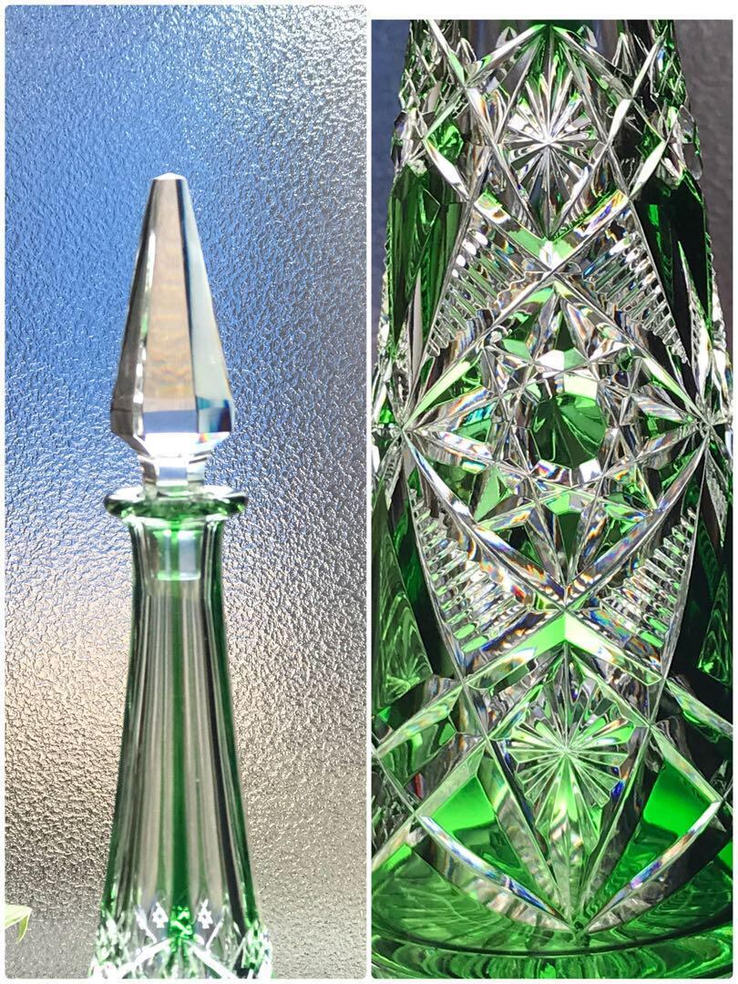 輝く美オールドバカラBACCARAT ラグニーLAGNY緑色被せカラフェ★極希少