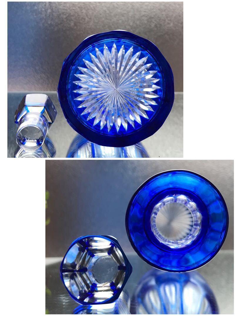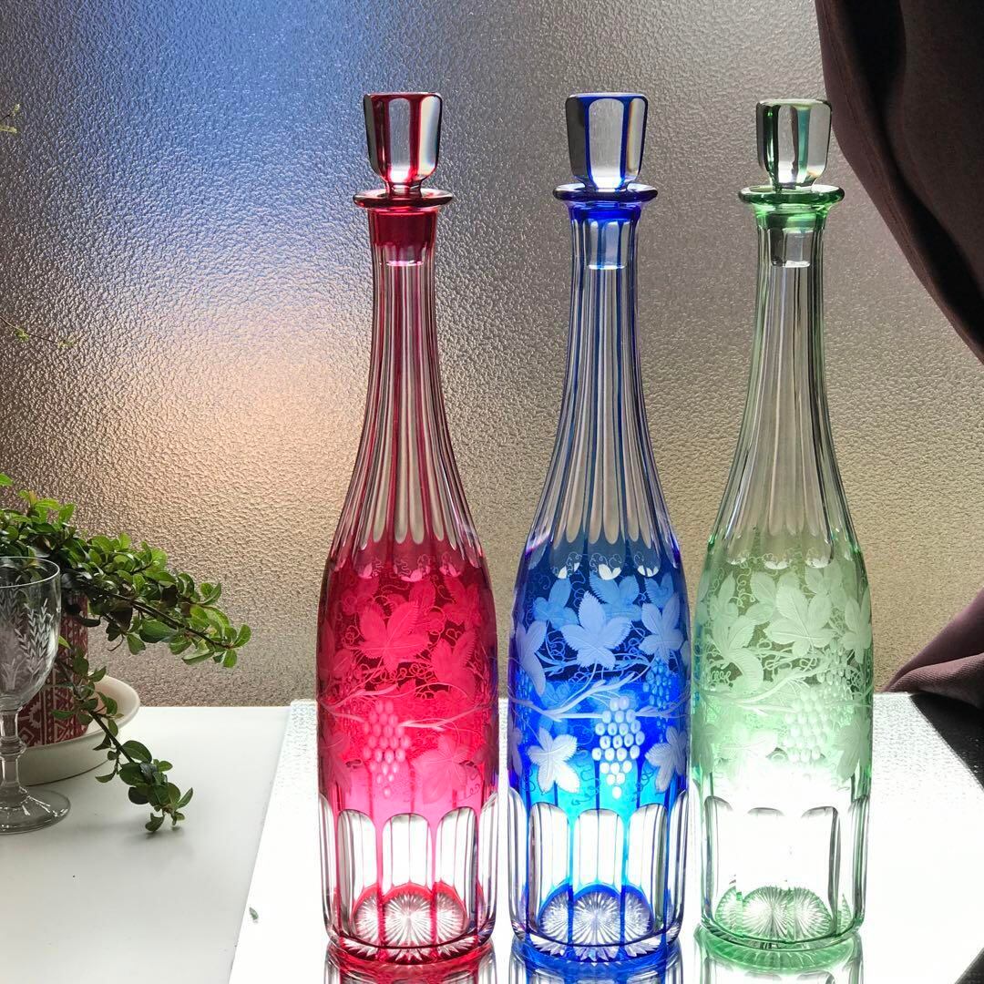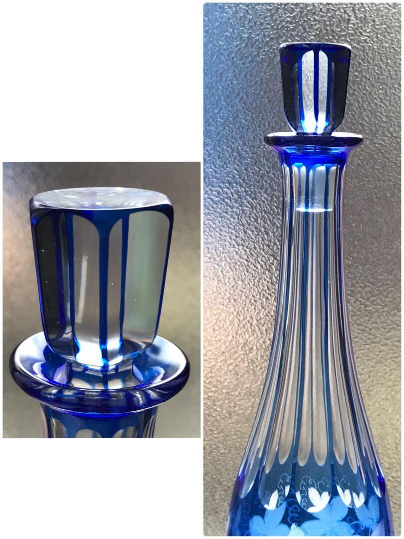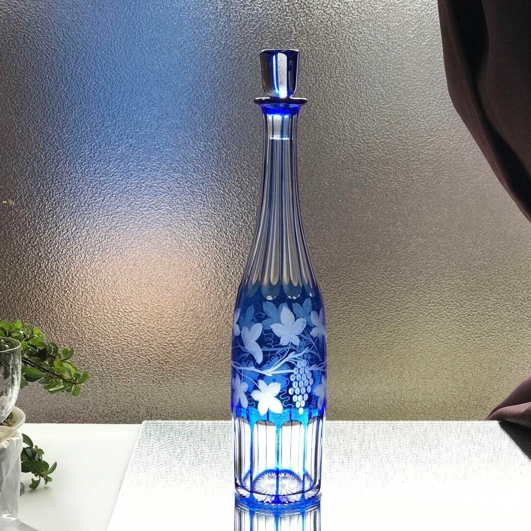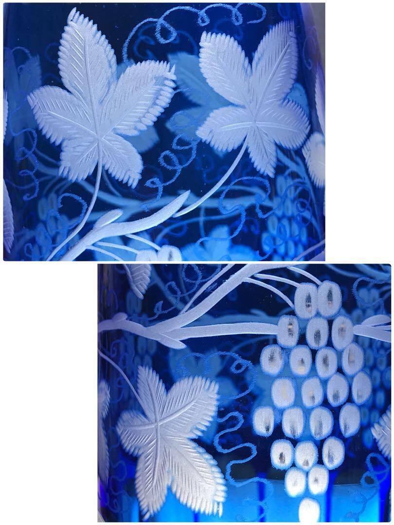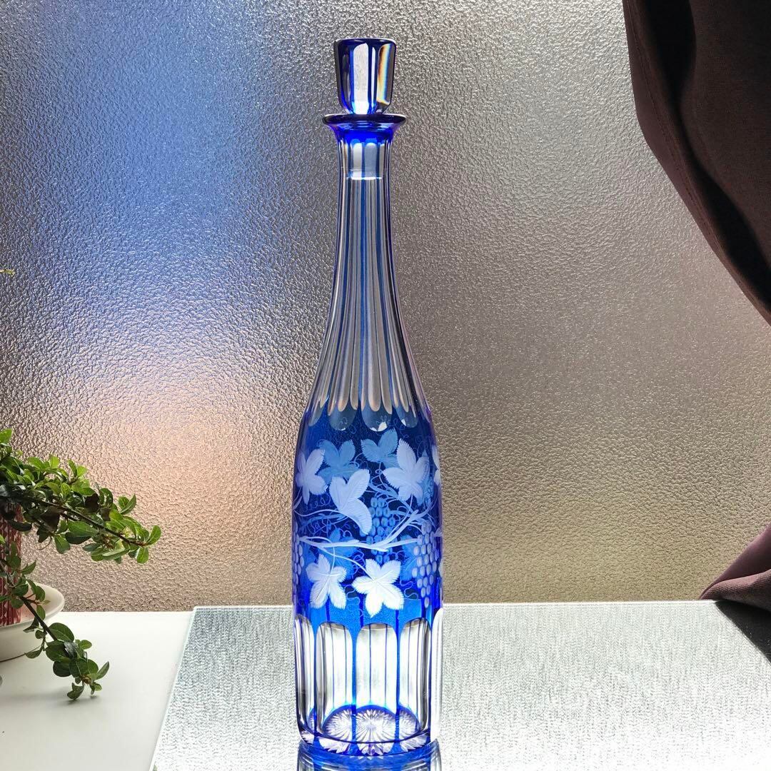 見事に美しいオールドバカラBACCARAT青色被せワイン用カラフェ葡萄文★激レア