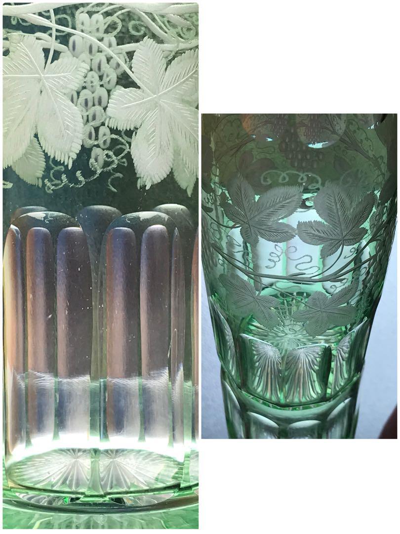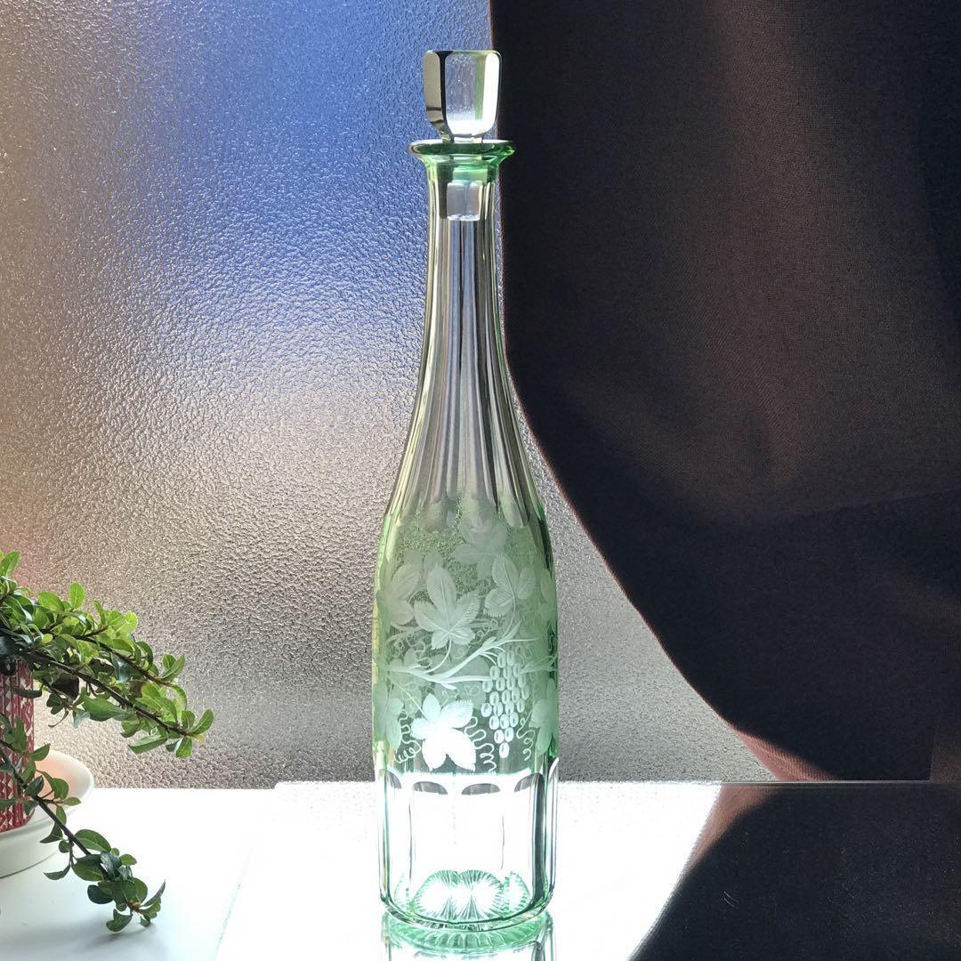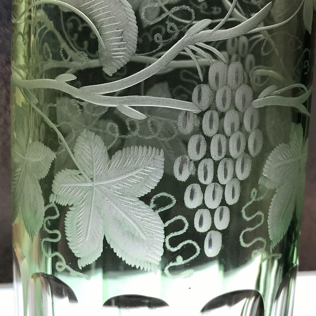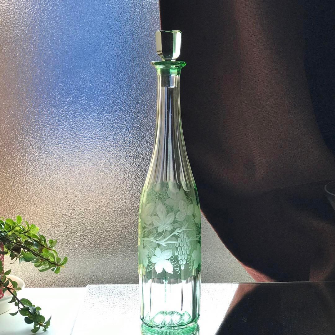 見事に美しいオールドバカラBACCARAT緑色被せワイン用カラフェ葡萄文★激レア