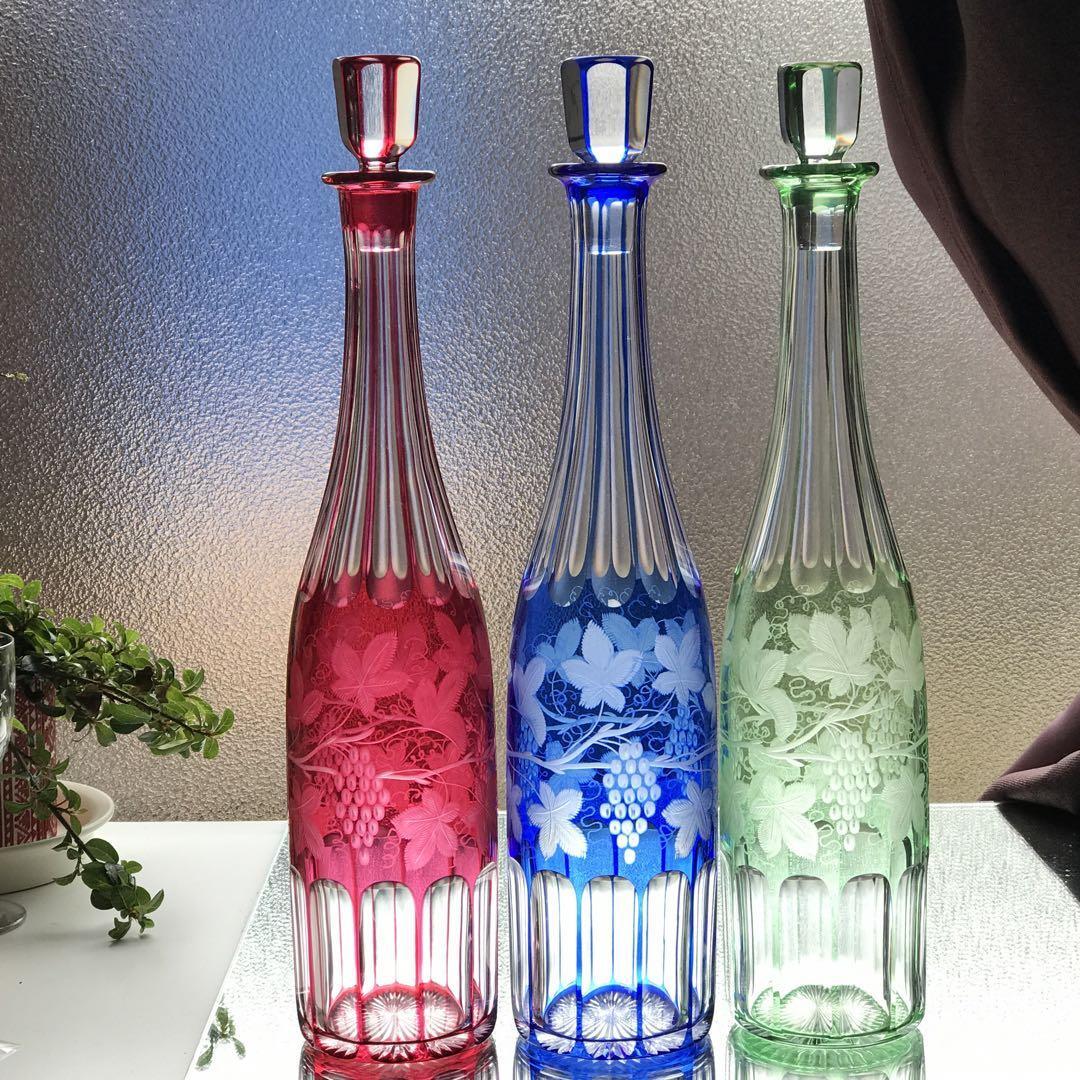 オールドバカラBACCARAT緑色被せワイン用カラフェ葡萄文の