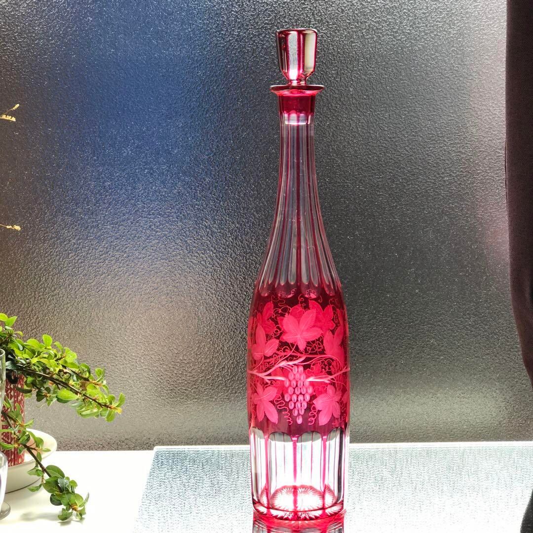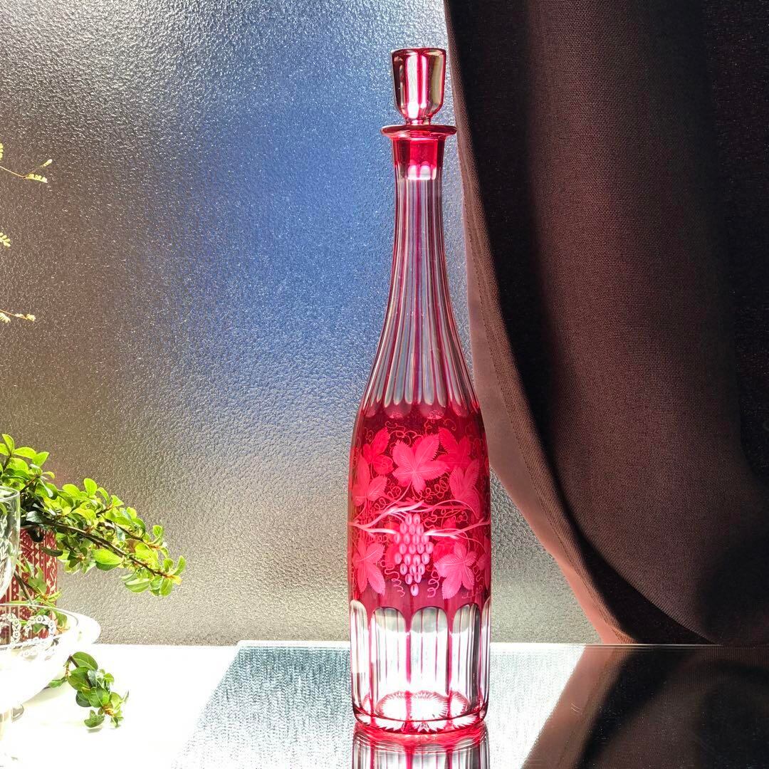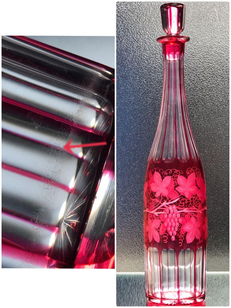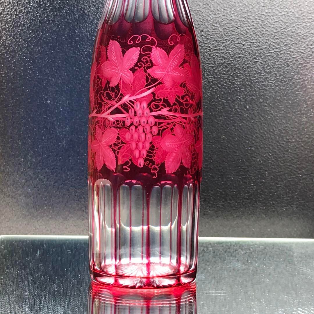 見事に美しいオールドバカラBACCARAT赤色被せワイン用カラフェ葡萄文★激レア