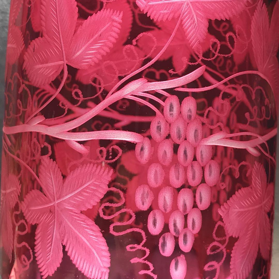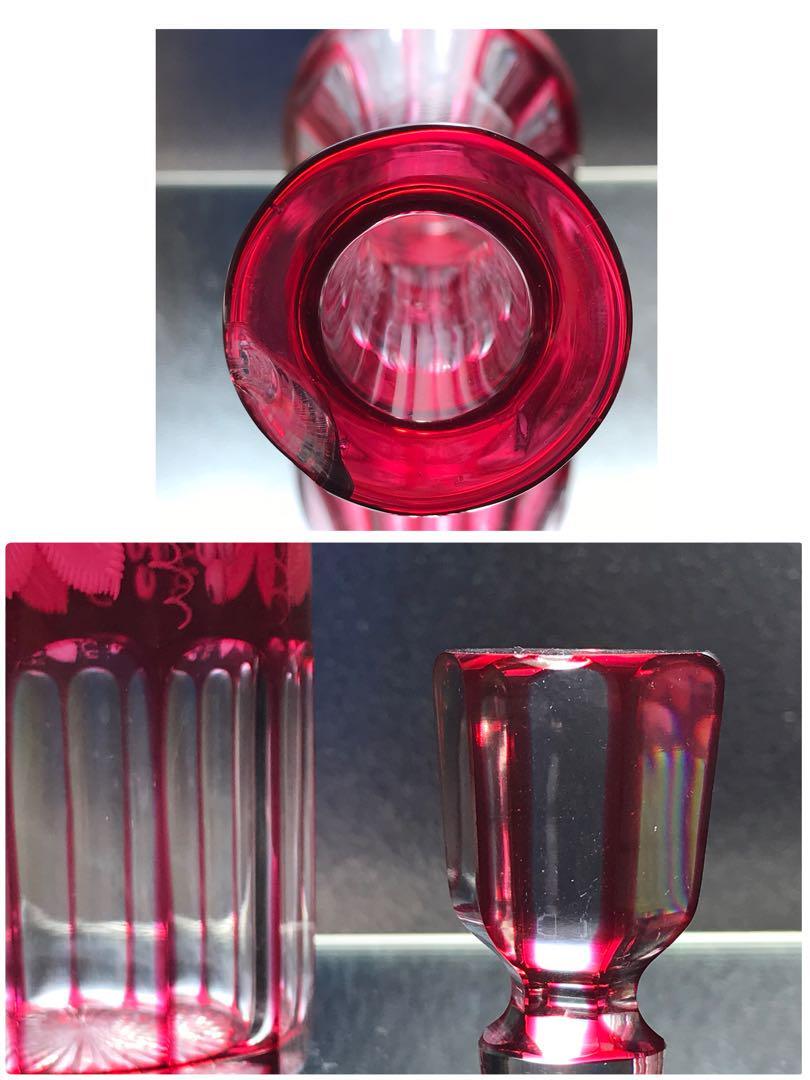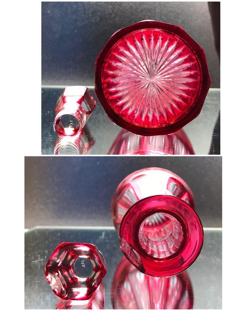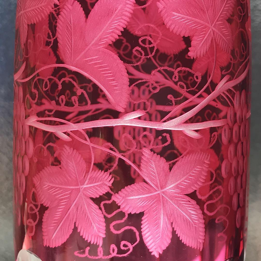 見事に美しいオールドバカラBACCARAT赤色被せワイン用カラフェ葡萄文★激レア