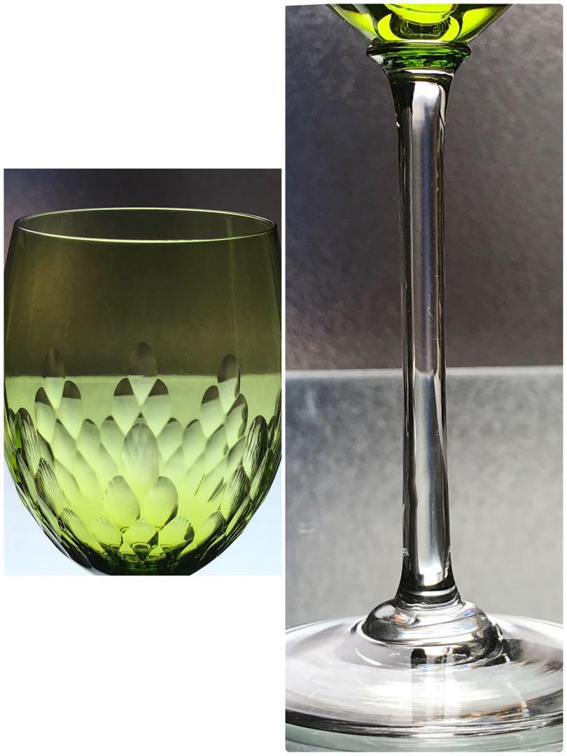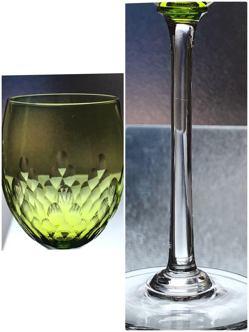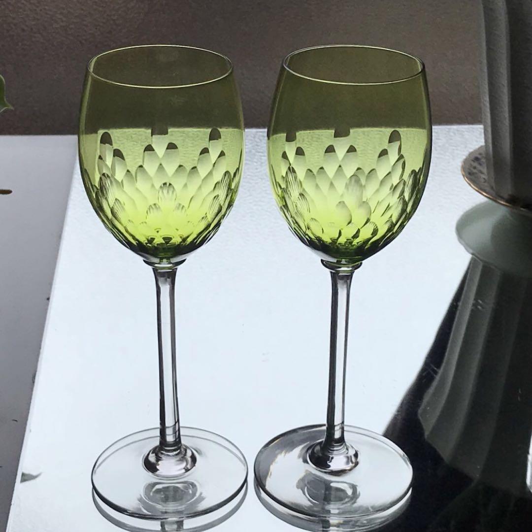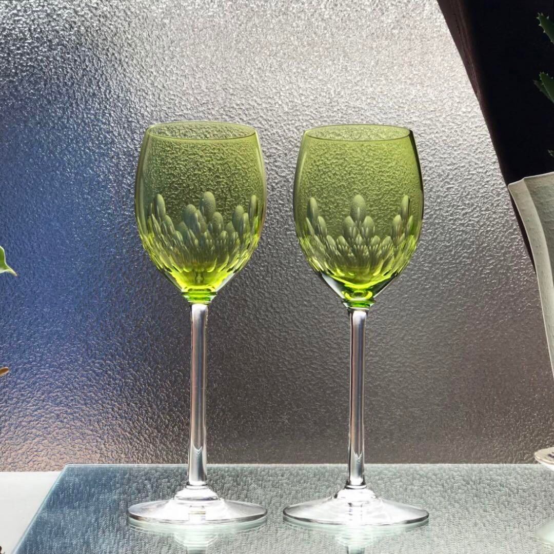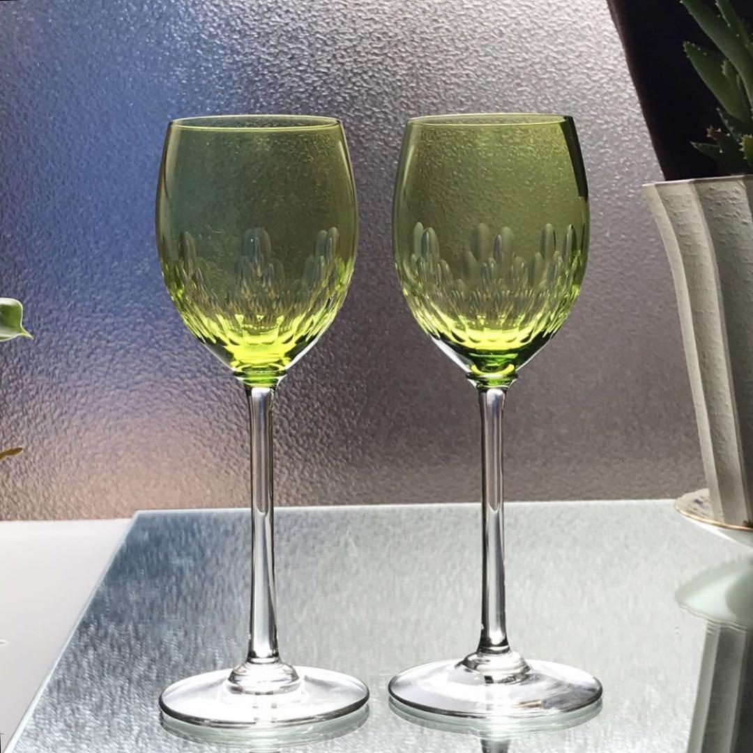 オールドバカラBACCARATリシュリューRICHELIEUグリーンワイングラスペアの