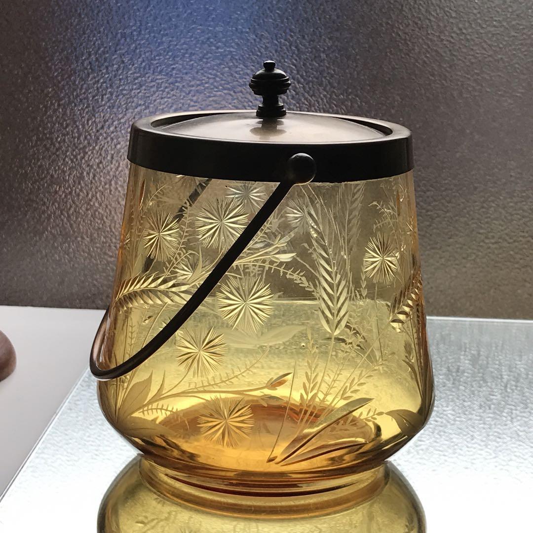 とても素敵オールドサンルイSt Louis アンバービスケットジャー★クリスタル