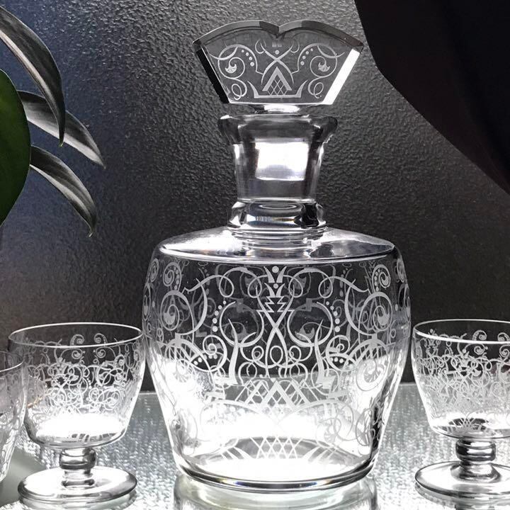 口吹きクリスタルグラスに典型的なアールデコ様式の