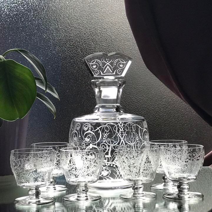 ほとんど見かけることのないミティリニのワイングラス6個とカラフェのセットです。