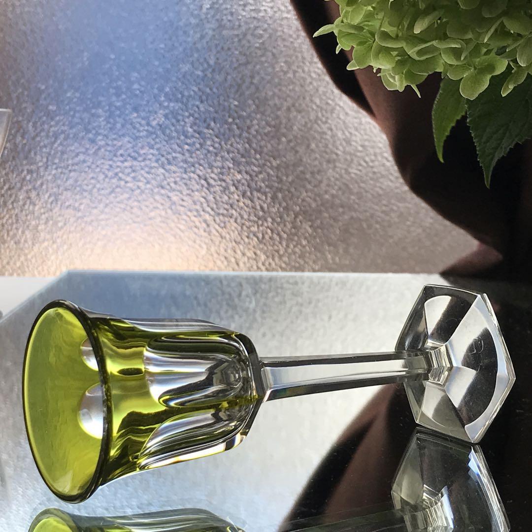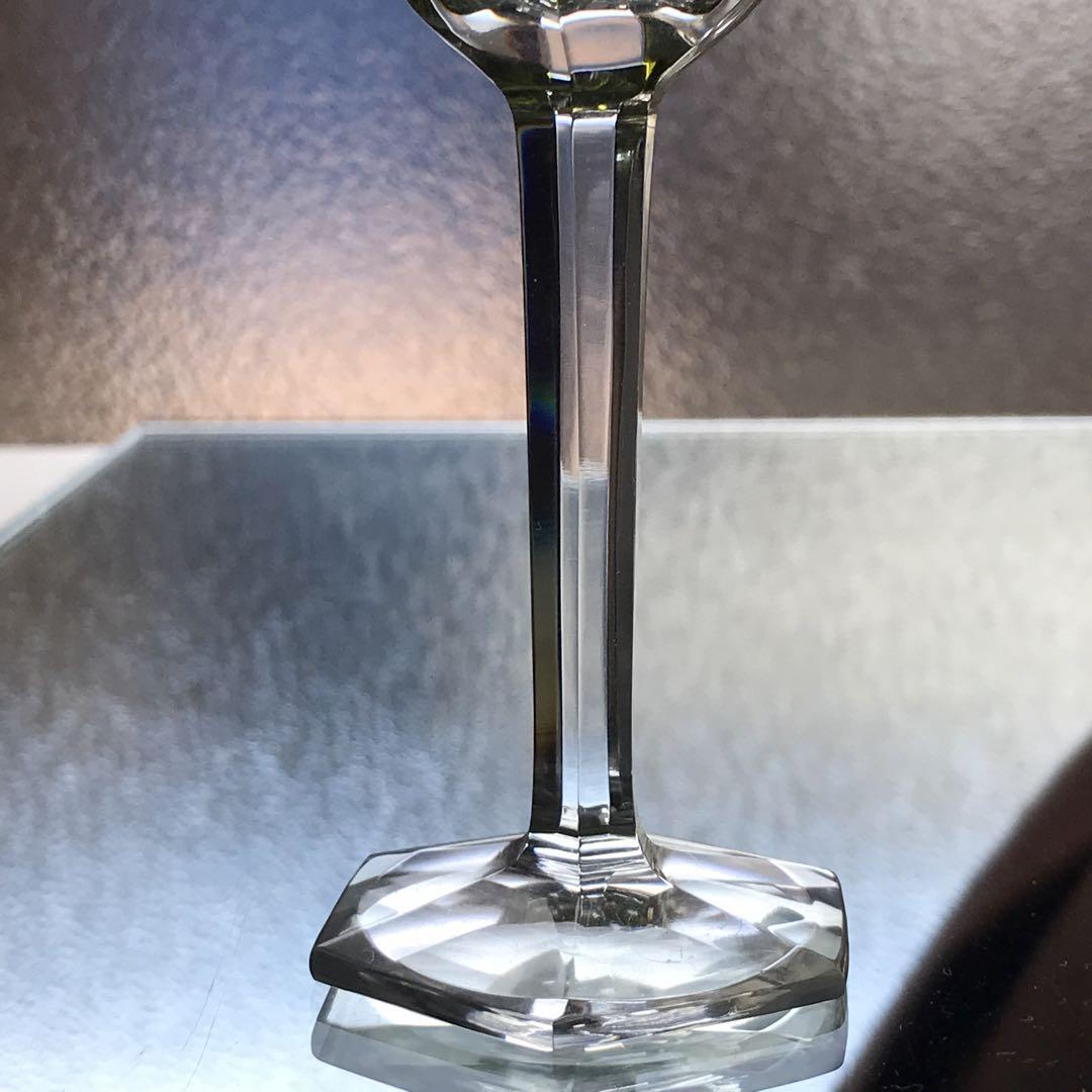 クリスタルガラスの上にモスグリーンのクリスタルガラスを被せ