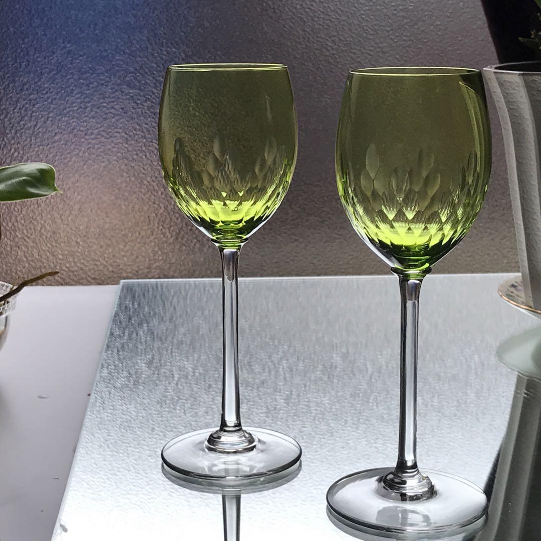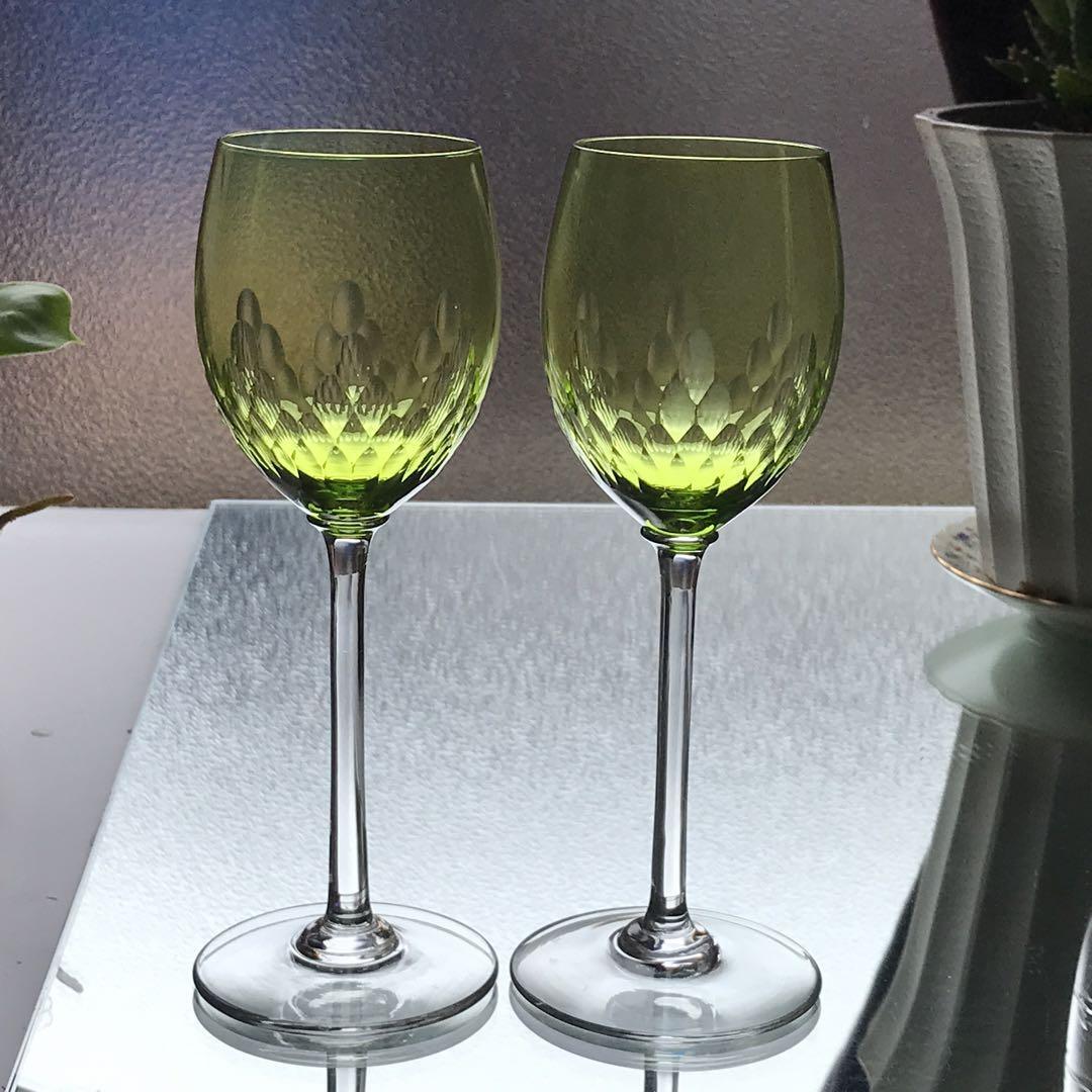 オールドバカラBACCARATリシュリューRICHELIEUグリーンワイングラスペアの