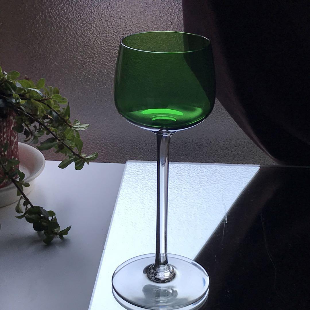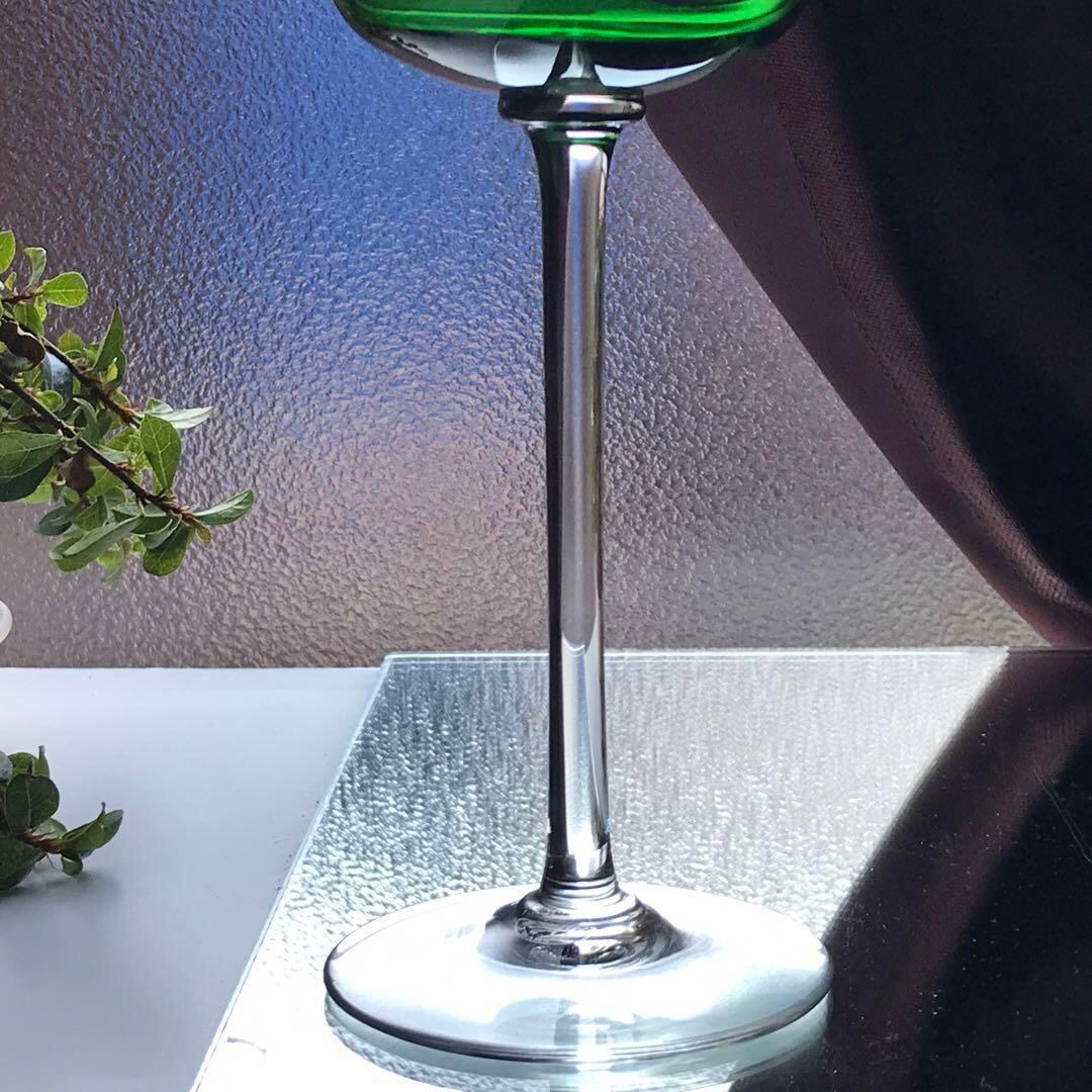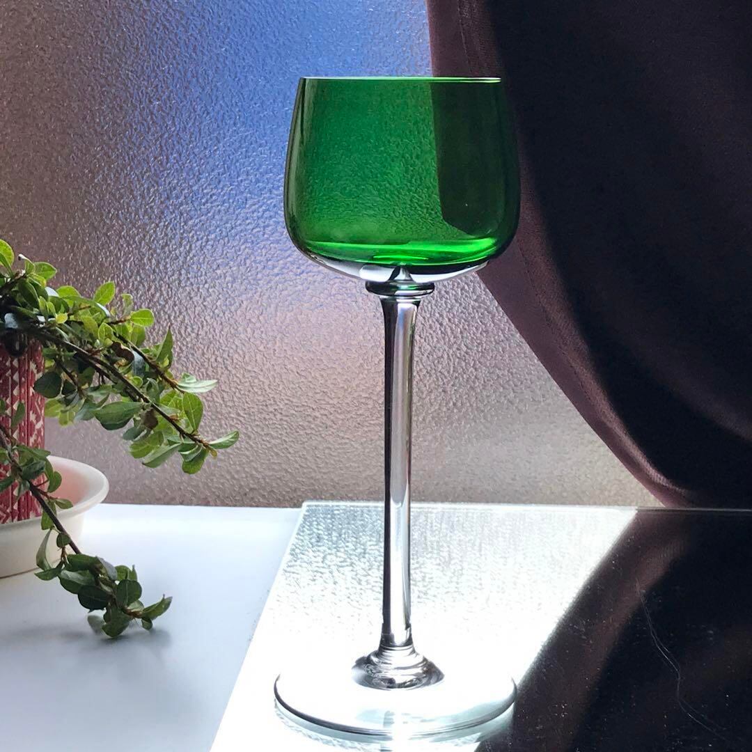 綺麗な緑色のエレガントなワイングラスです。