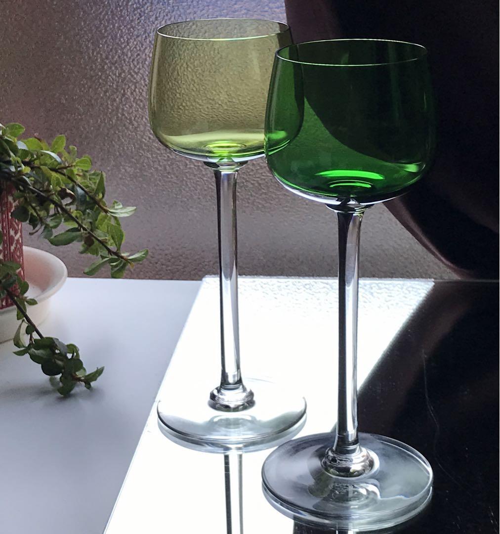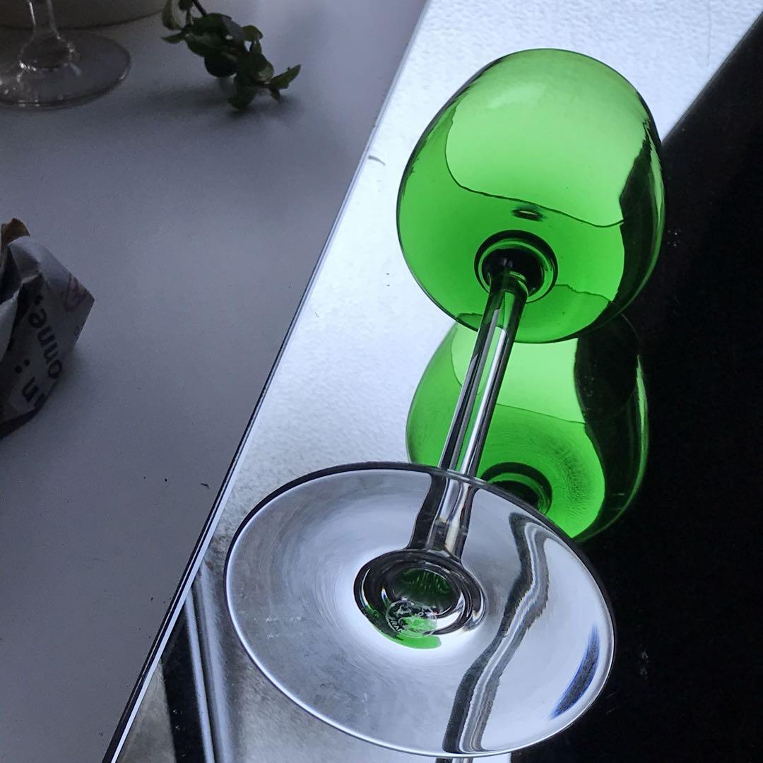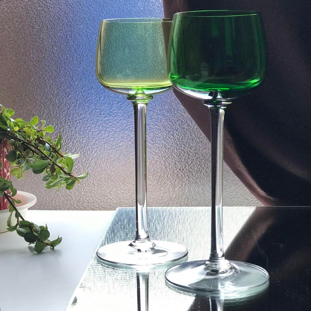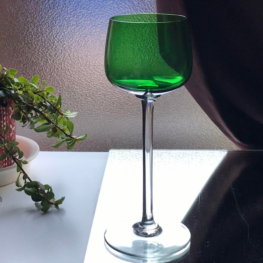 綺麗な緑色のエレガントなワイングラスです。