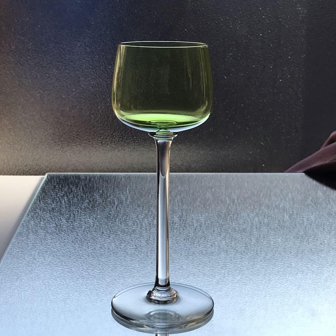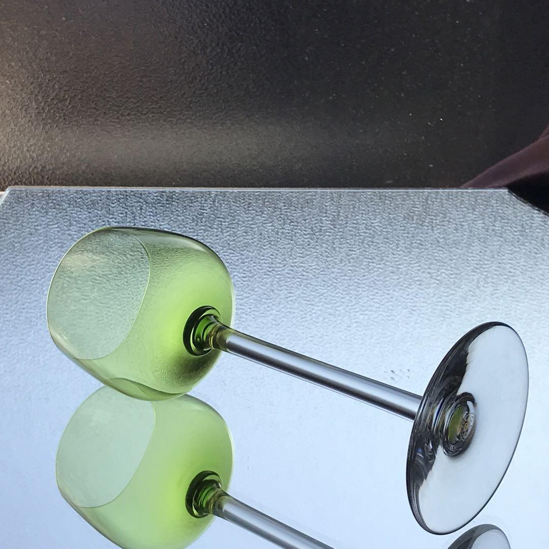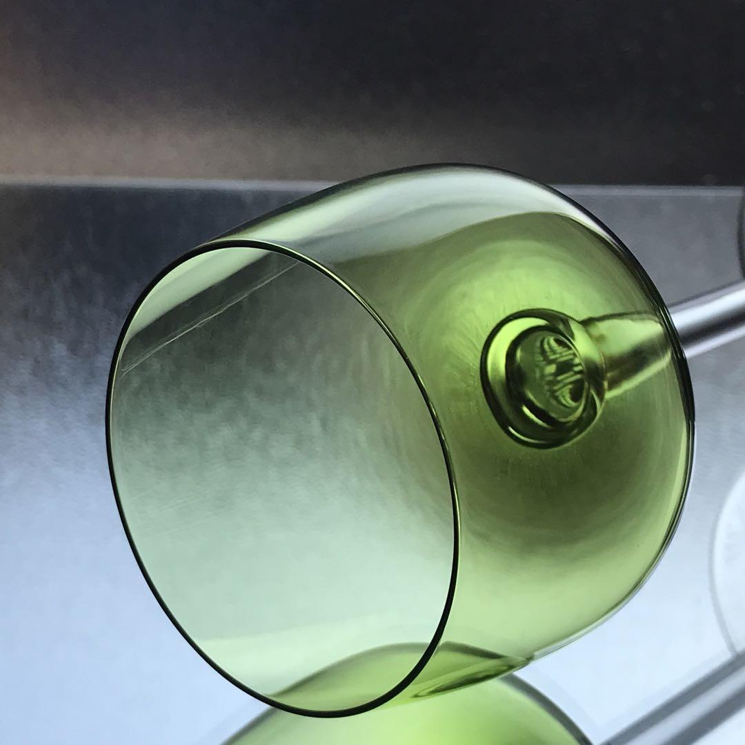 綺麗に透き通った淡緑色のエレガントなワイングラスです。