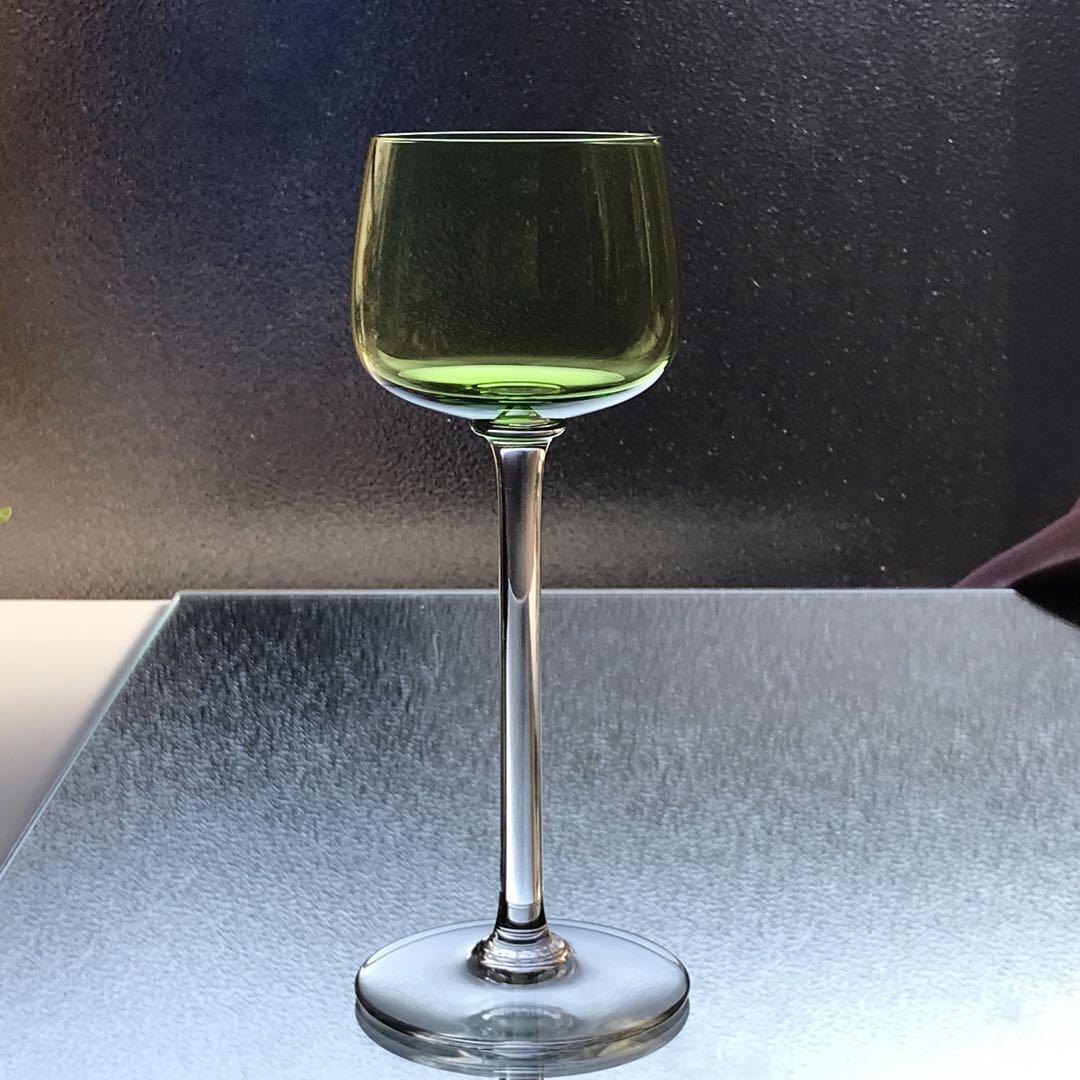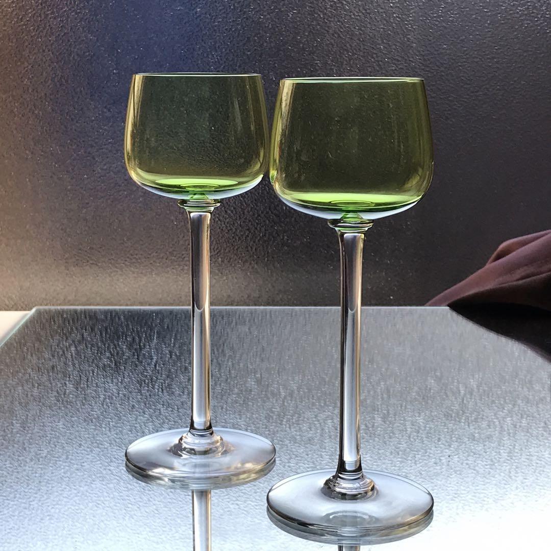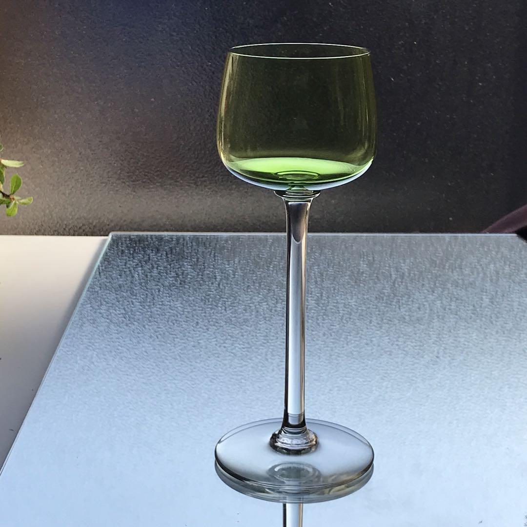 綺麗に透き通った淡緑色のエレガントなワイングラスです。