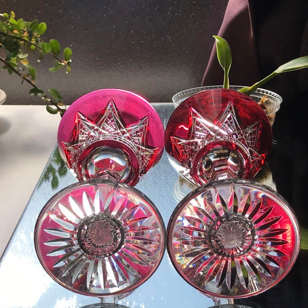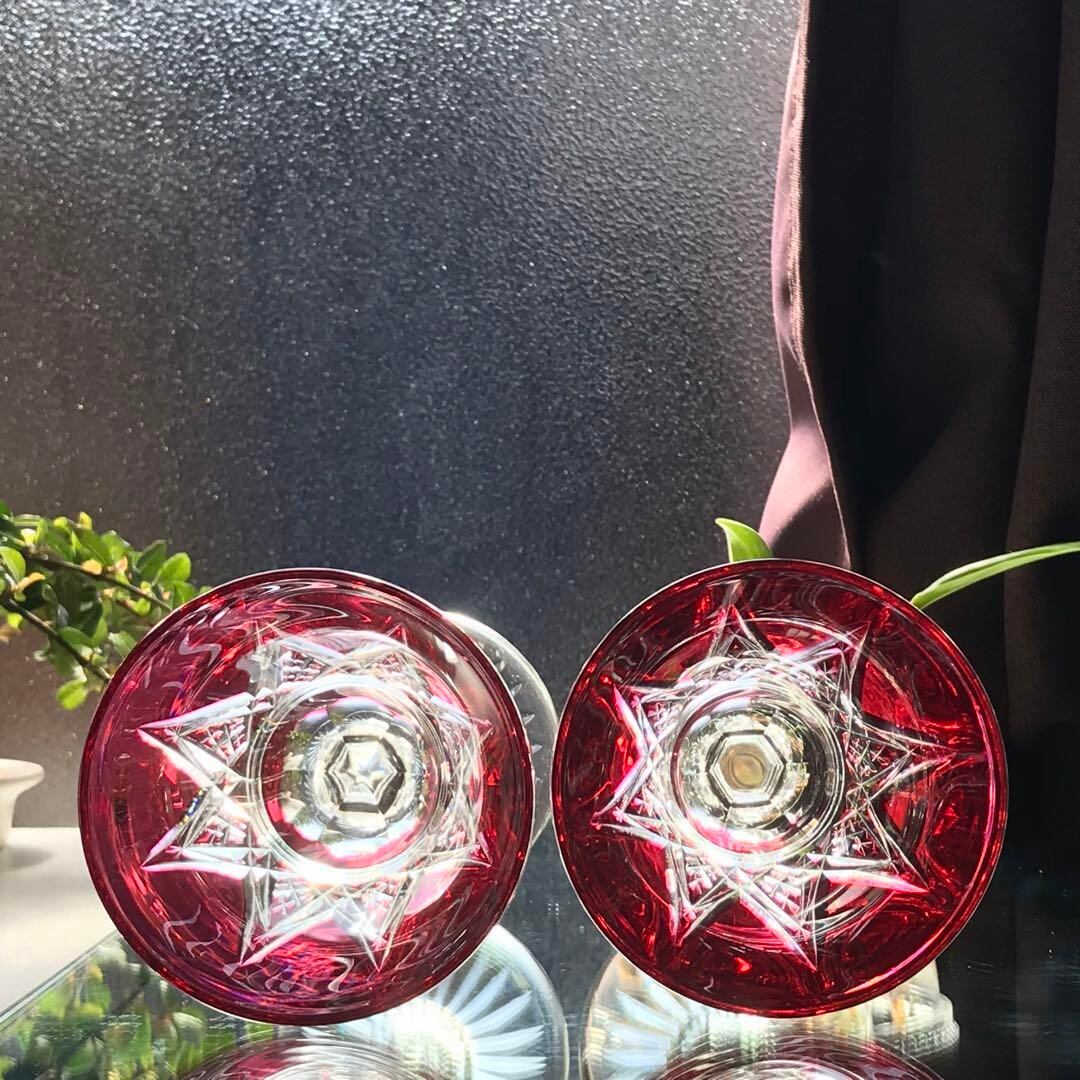 透明なクリスタルガラスの上から赤いクリスタルガラスを被せて