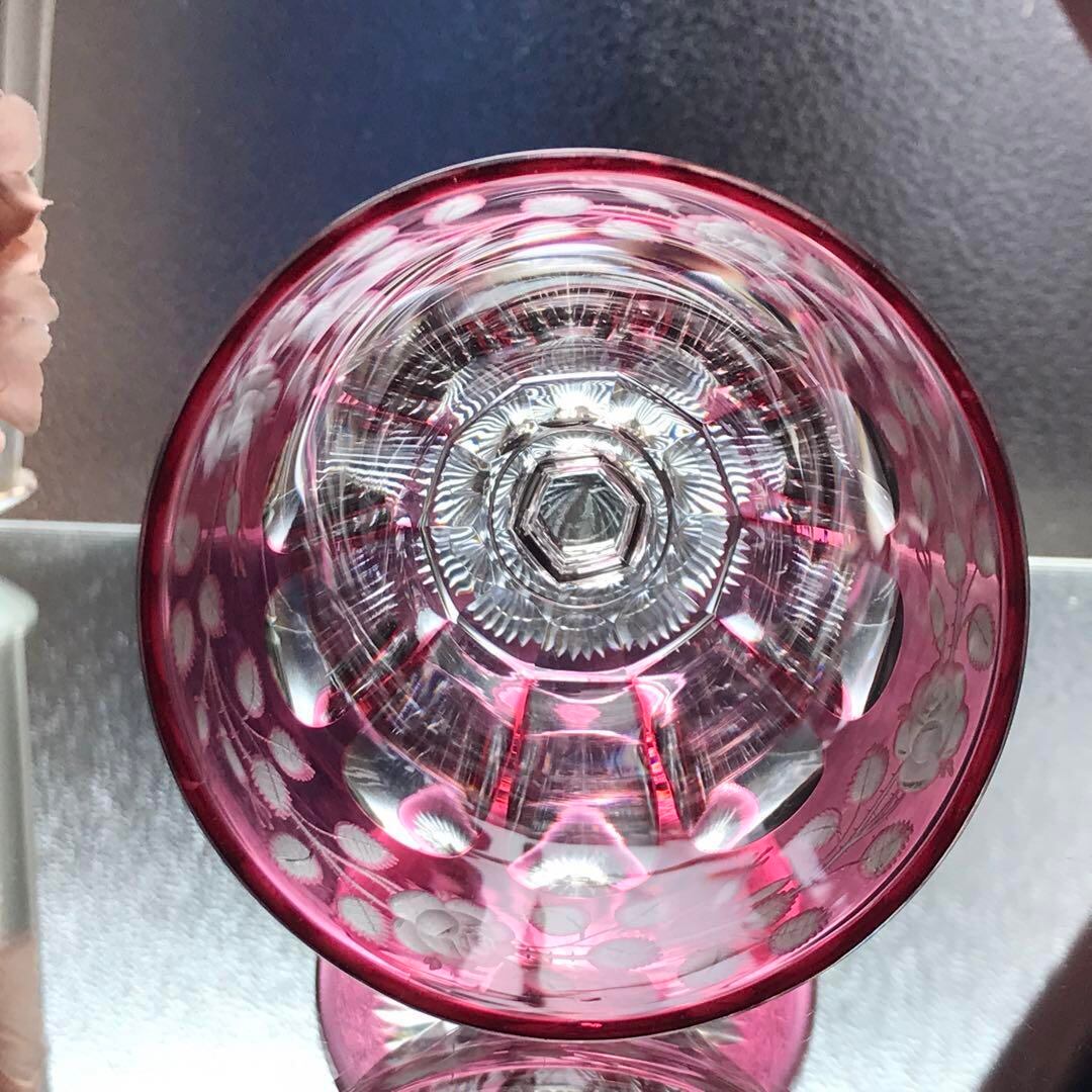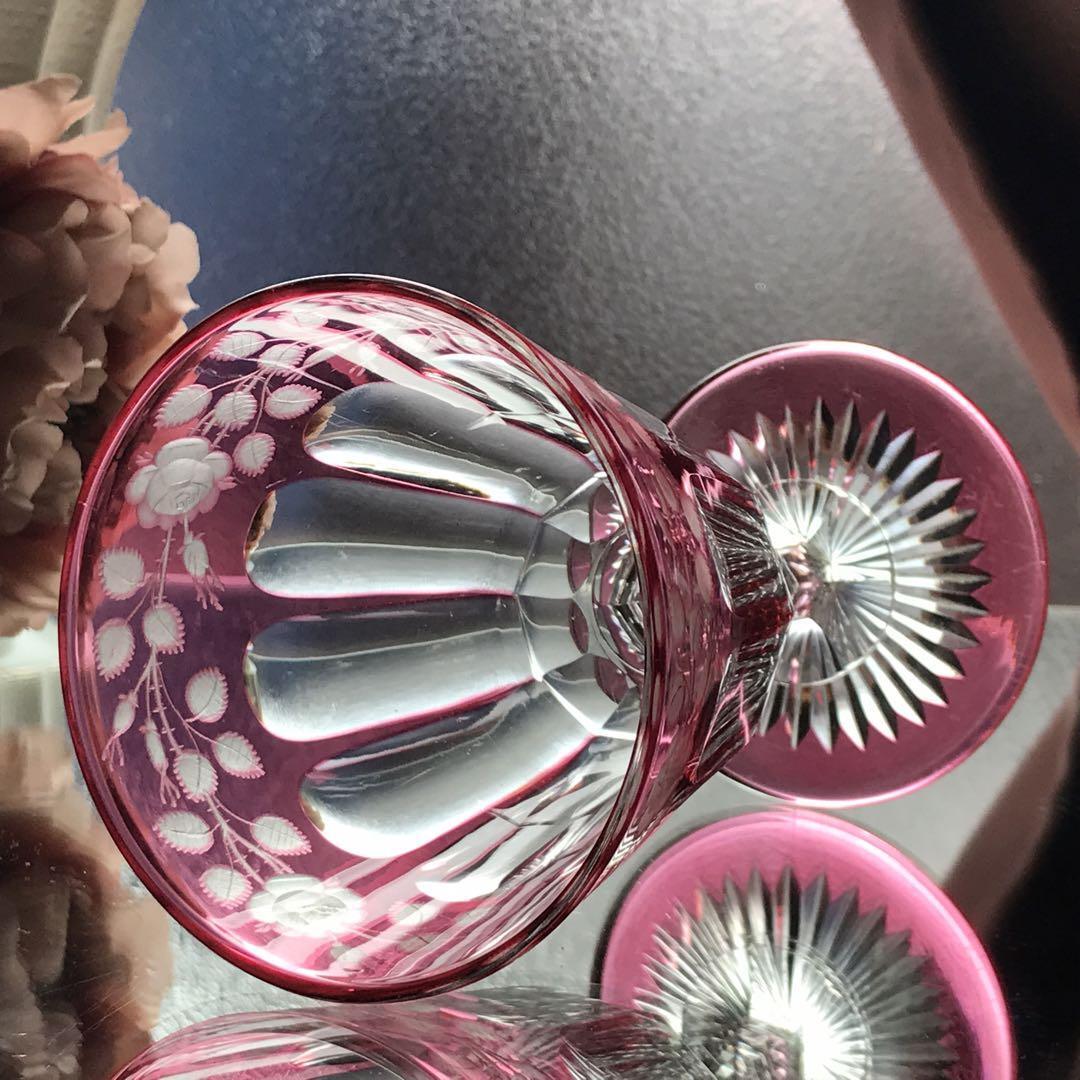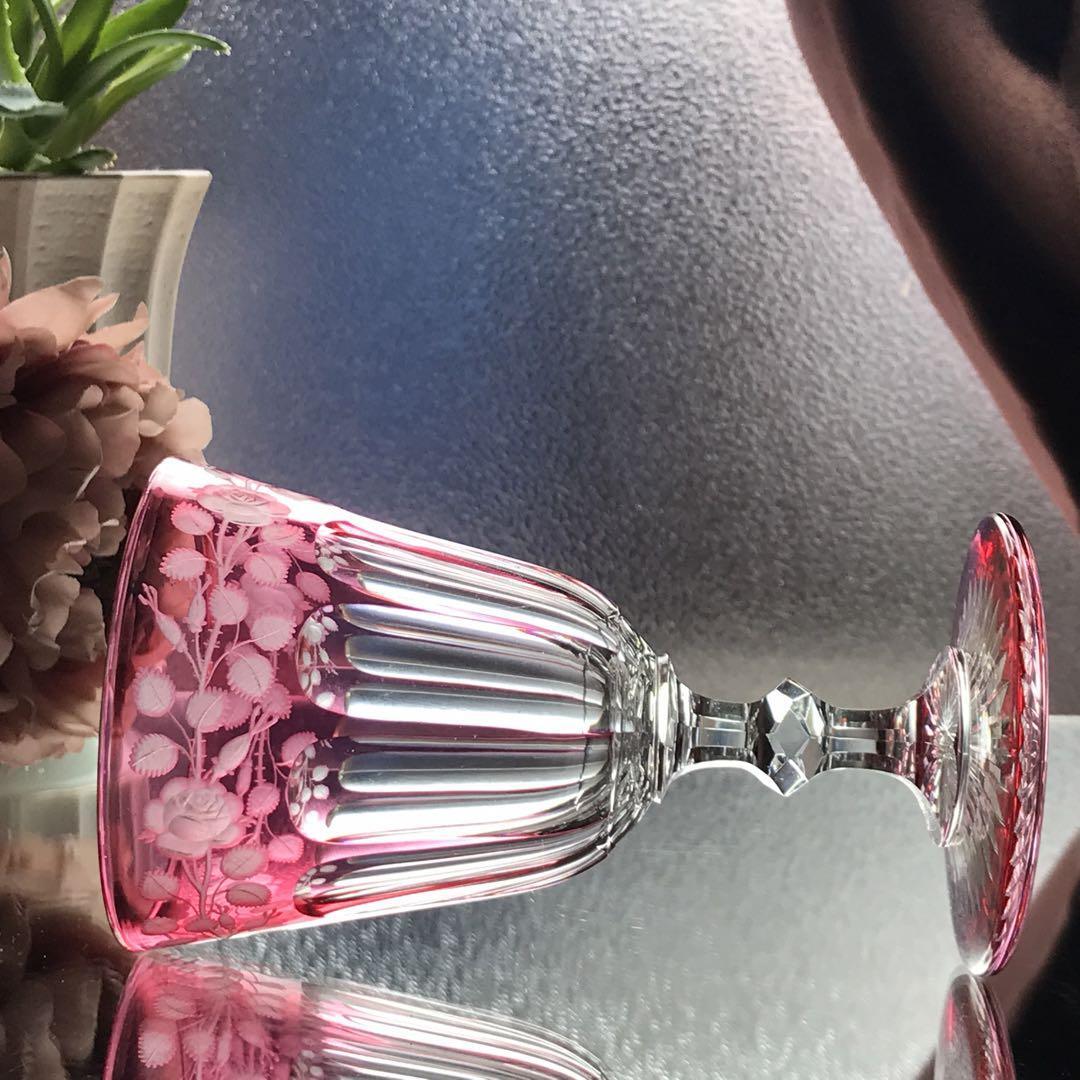 オールドバカラBACCARATピンク被せ水用、ワイン用グラスの