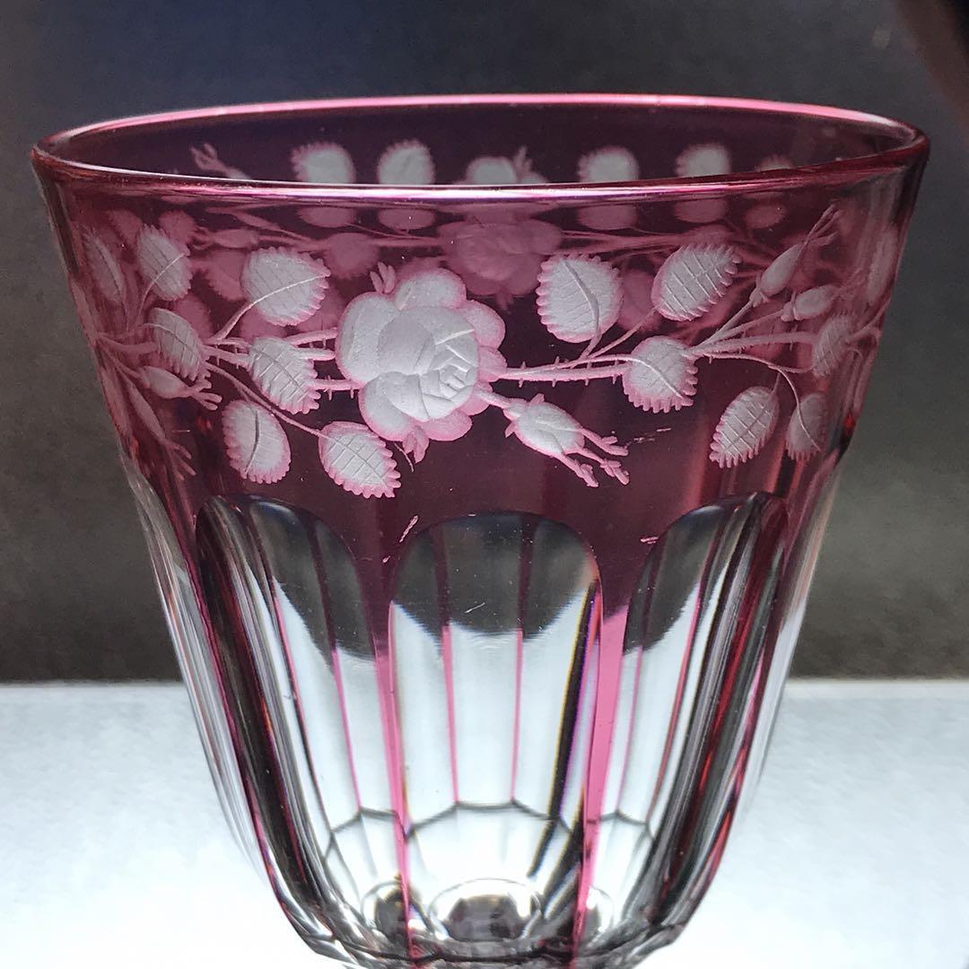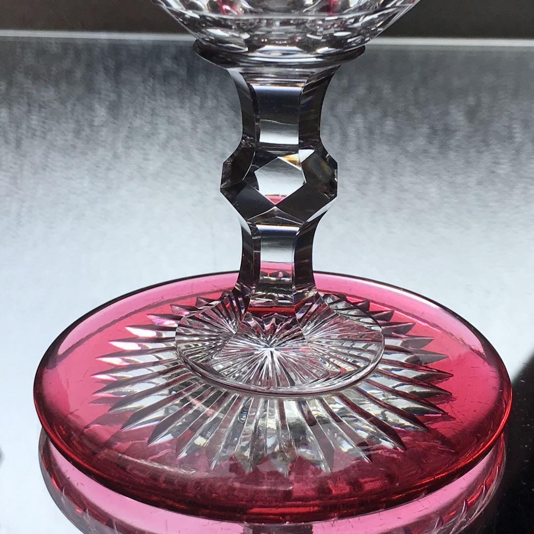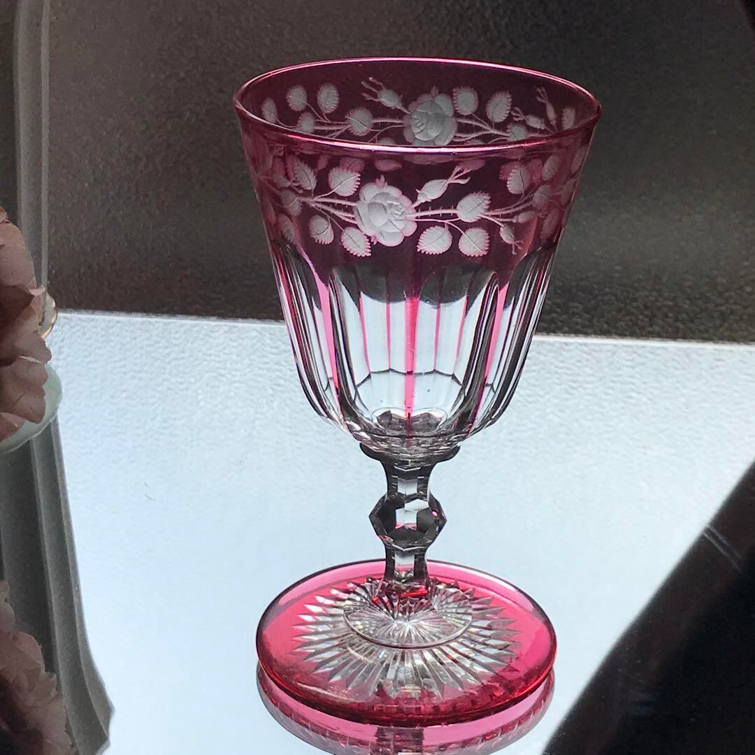 極希少オールドバカラBACCARAT★ピンク被せ水用、ワイン用クリスタルグラス★