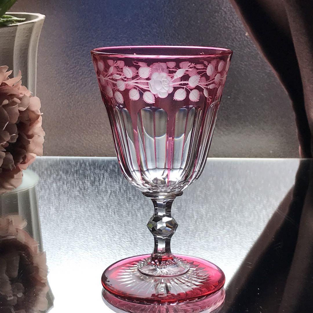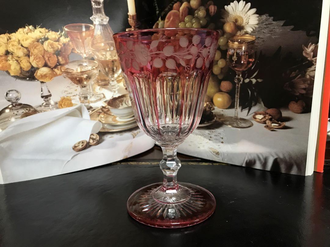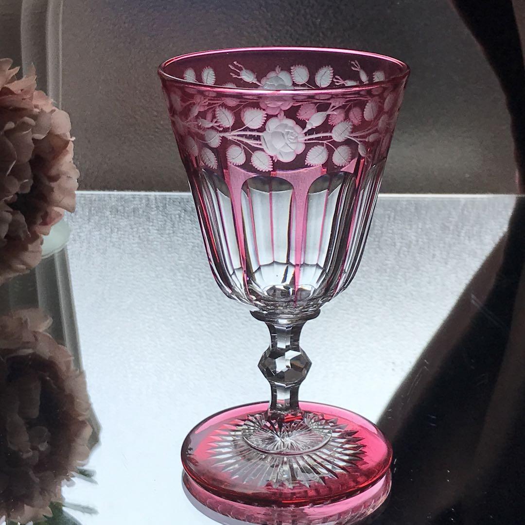 極希少オールドバカラBACCARAT★ピンク被せ水用、ワイン用クリスタルグラス★