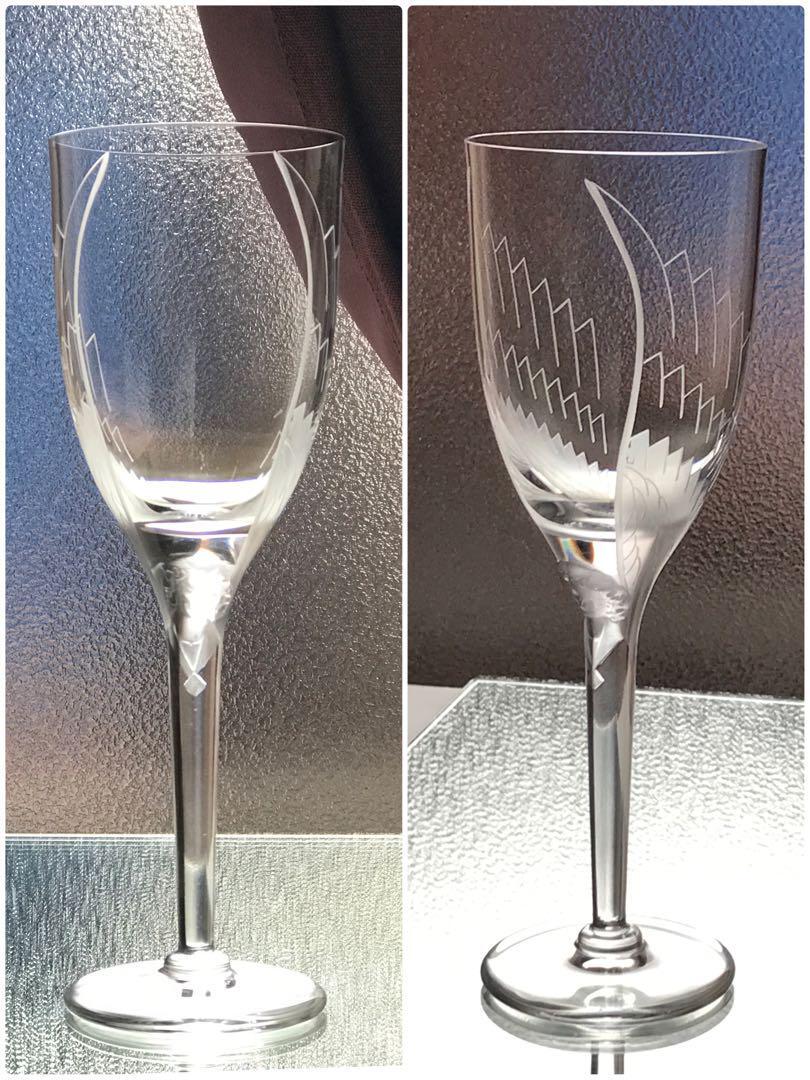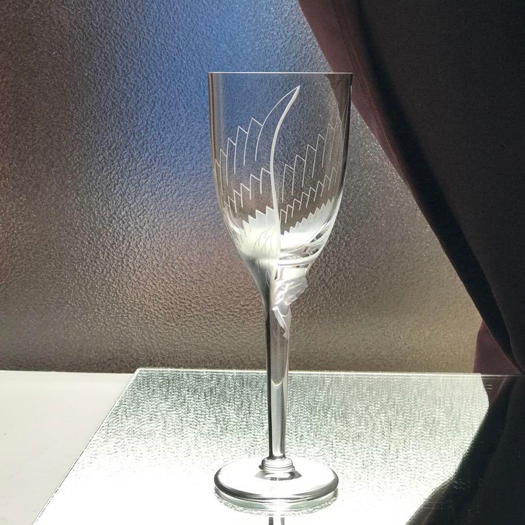 グラスにあるサテン仕上げで作られた天使は大きく美しい羽を広げ今にも羽ばたこうとしています。