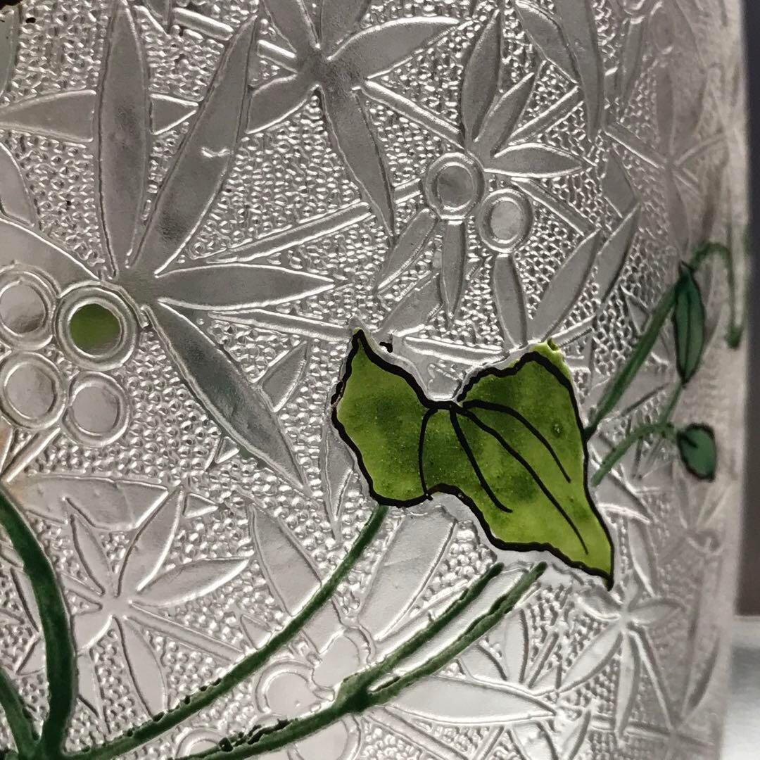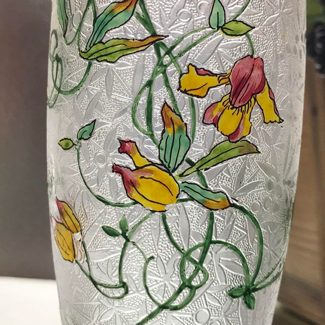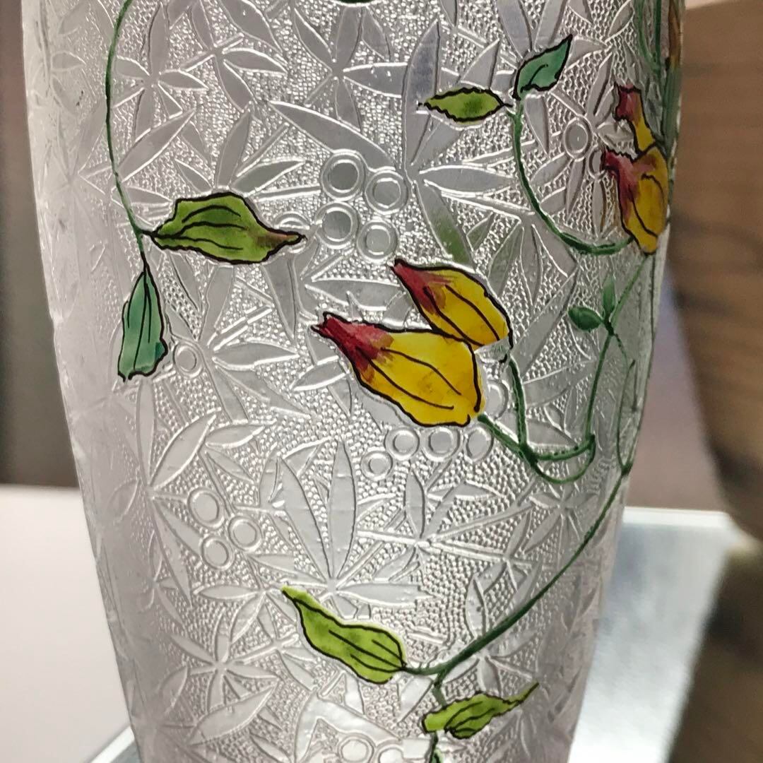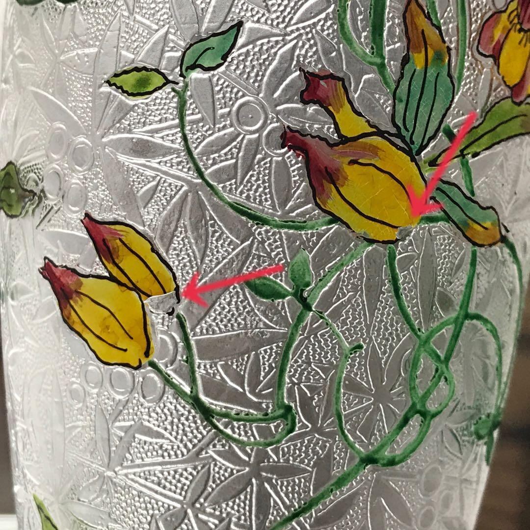 花瓶の真ん中にはエナメル彩で蔓に絡まる花や葉がこれまた豪華で丁寧に