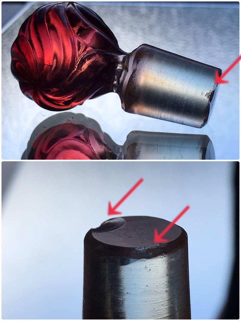 蓋をすれば見えませんが、栓の縁に欠けがございます。(P.9上真横からの写真、