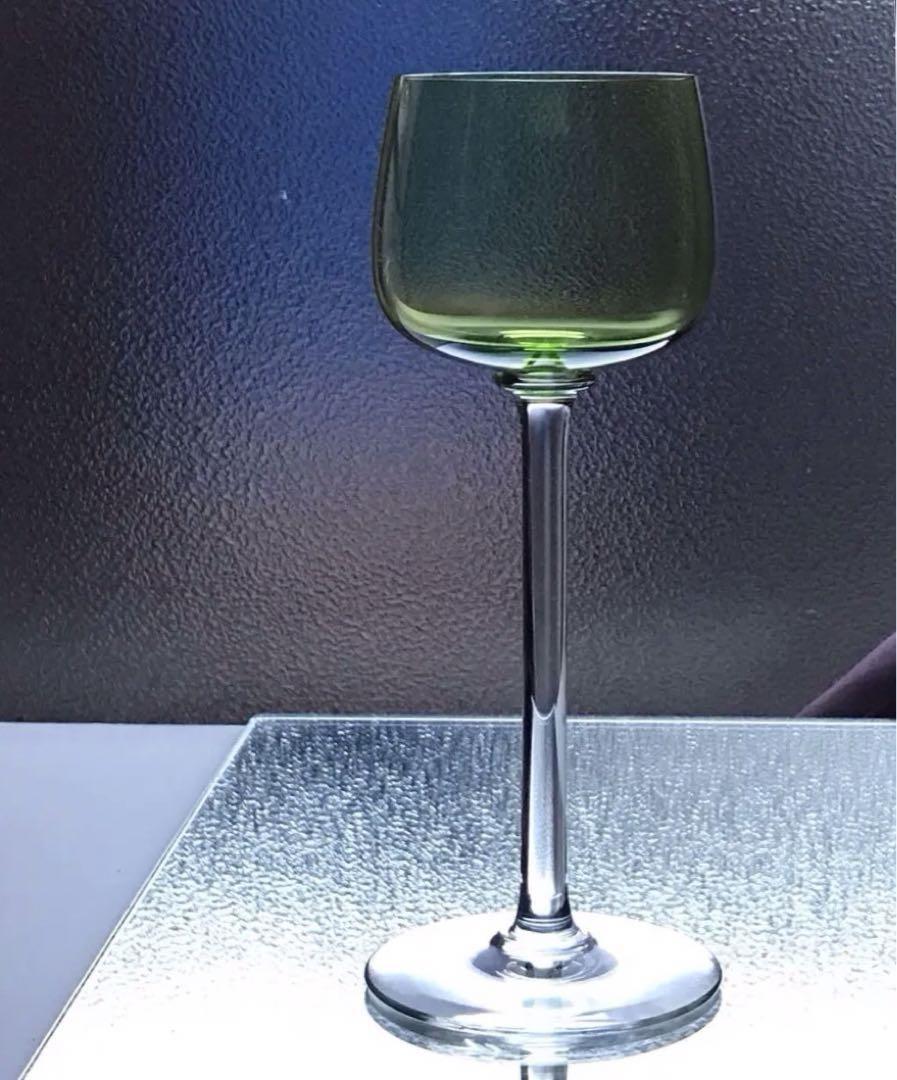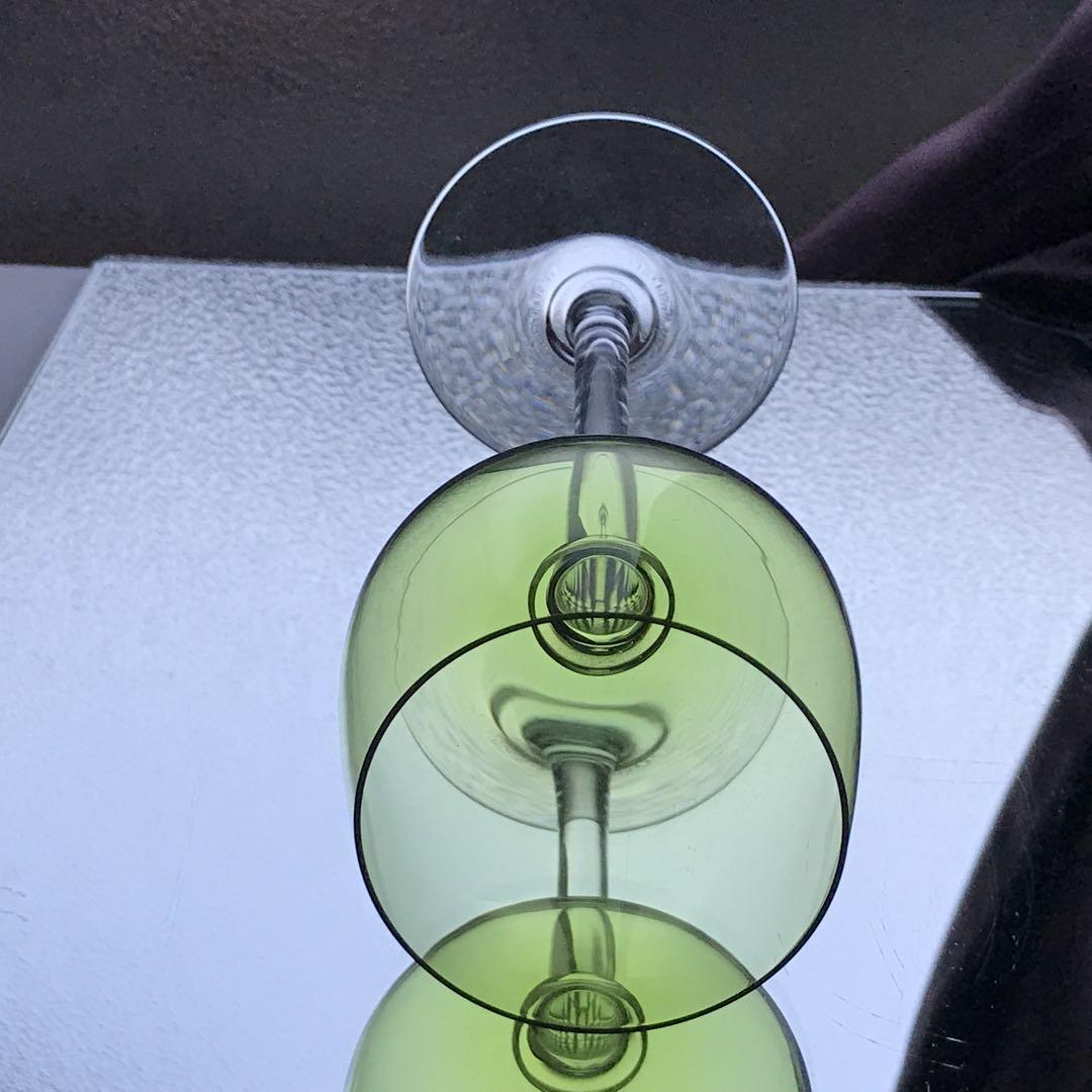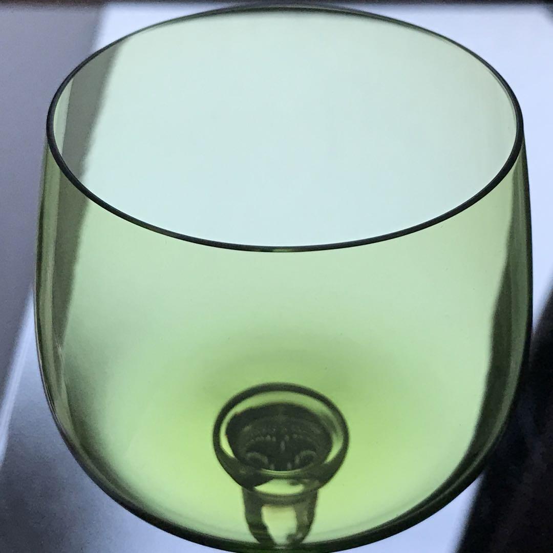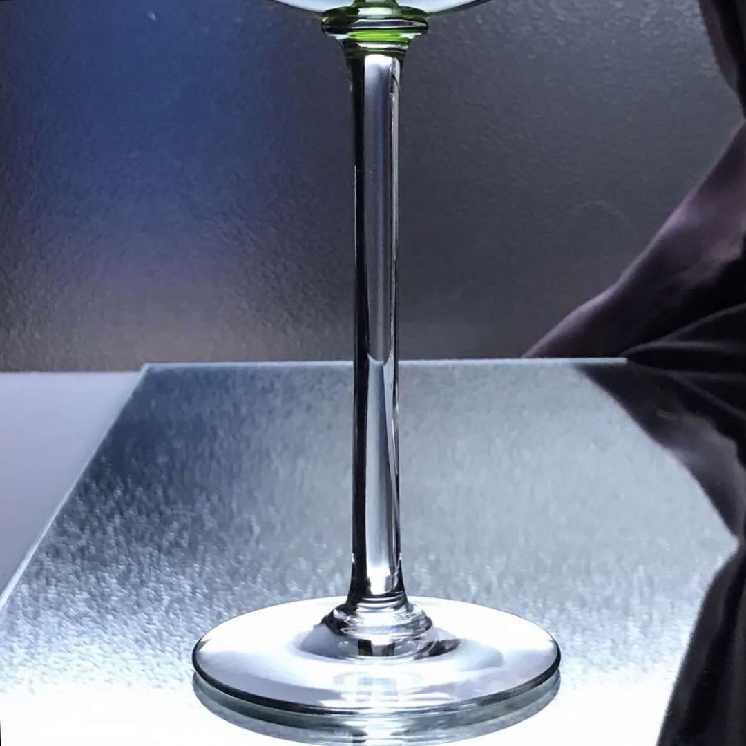 綺麗に透き通った淡緑色のエレガントなワイングラスです。
