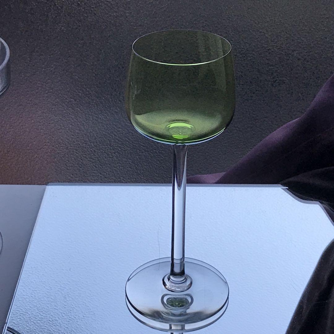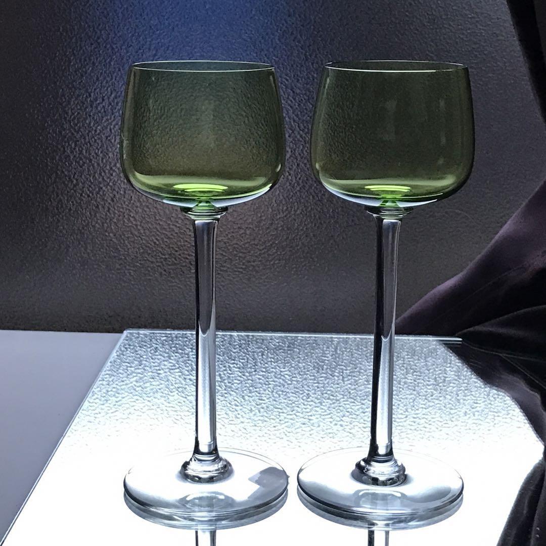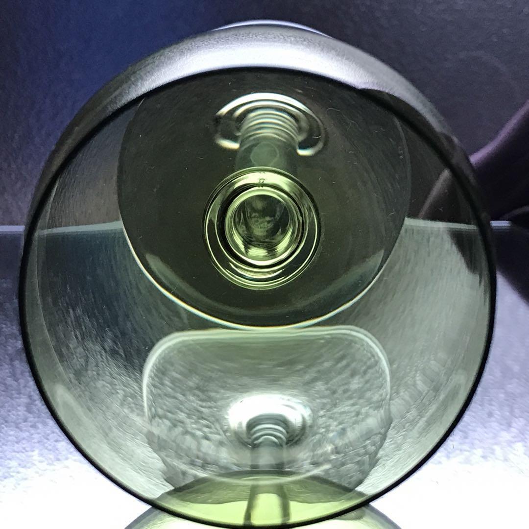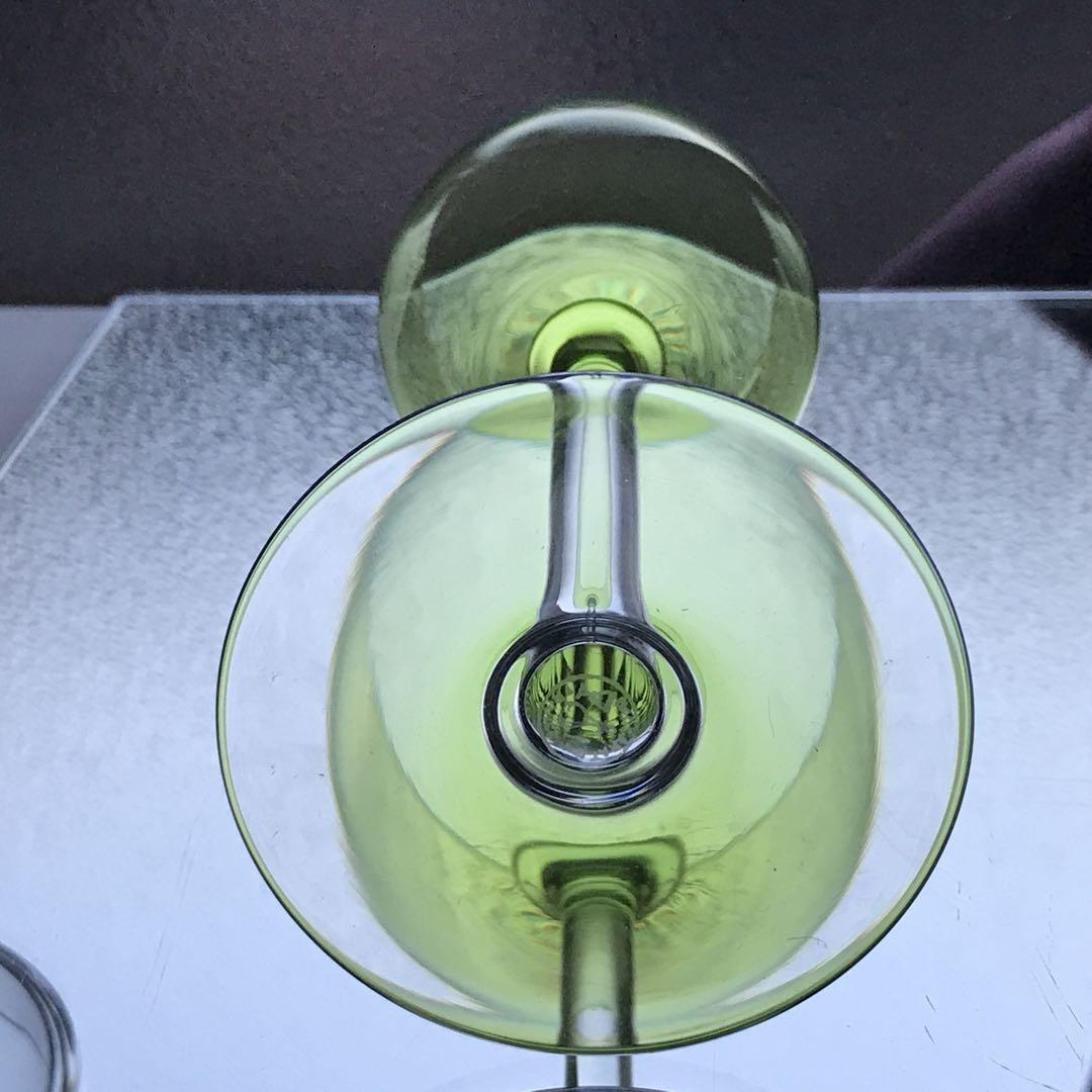 綺麗に透き通った淡緑色のエレガントなワイングラスです。